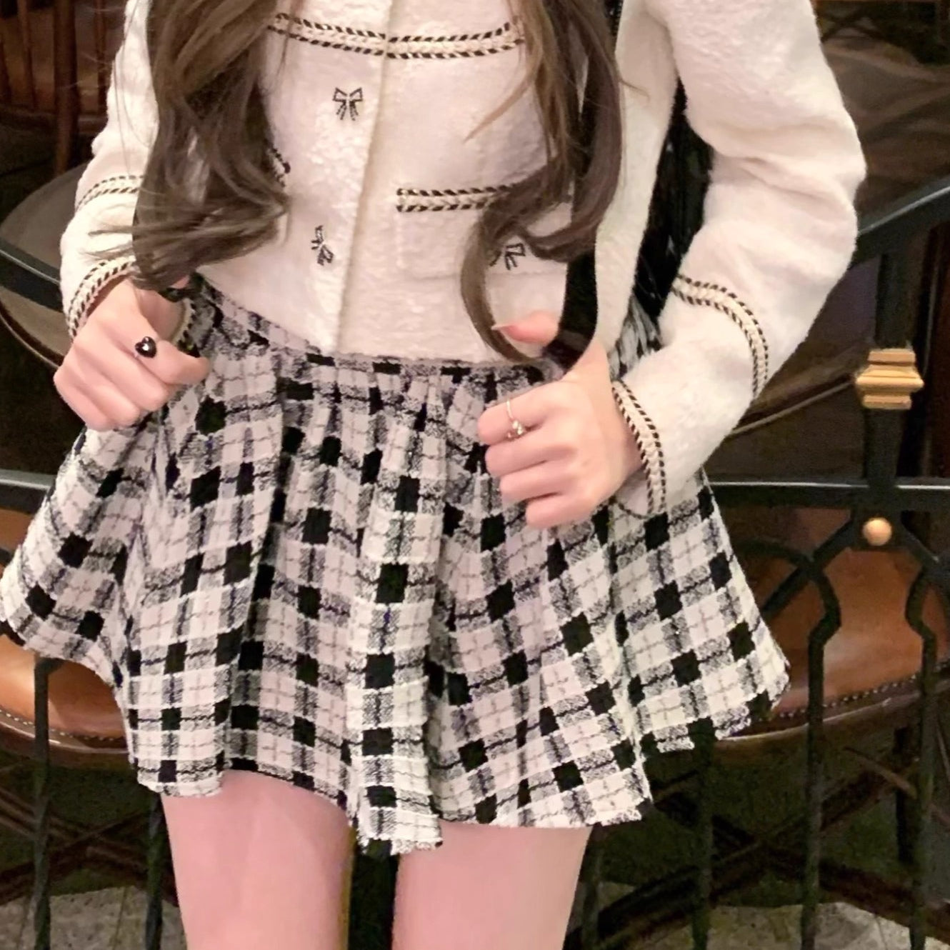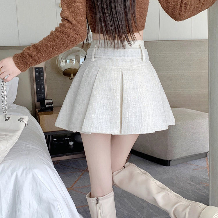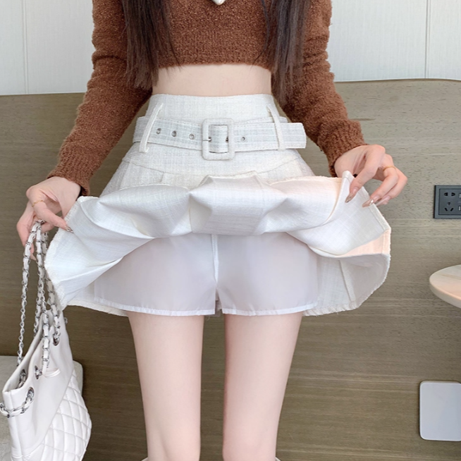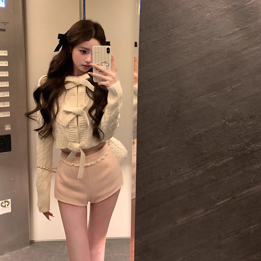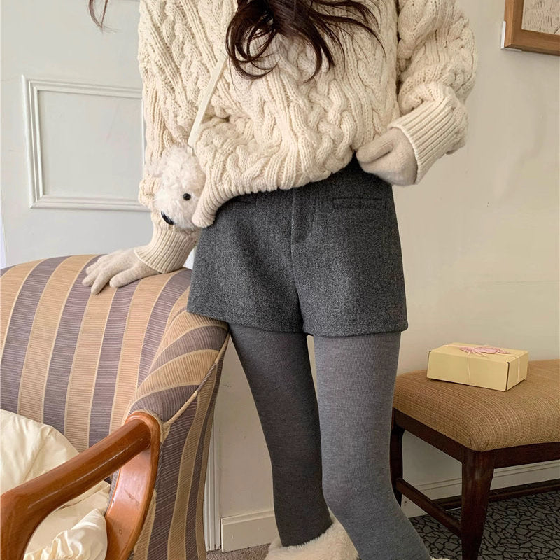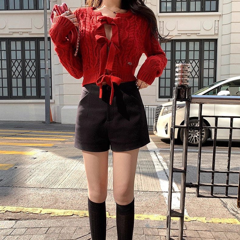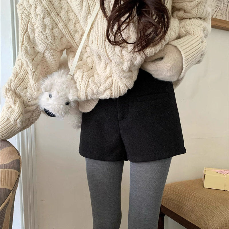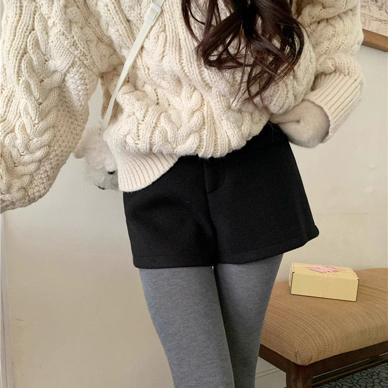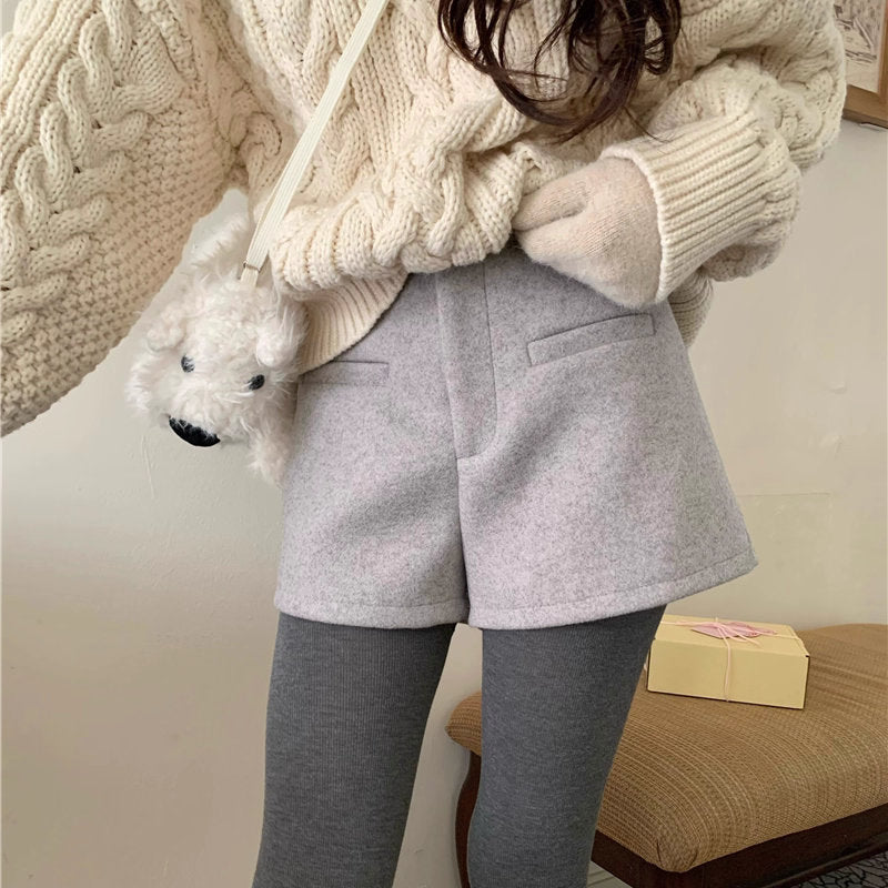 午前10時のカフェでカプチーノを飲む日のウールショートパンツ_R0404