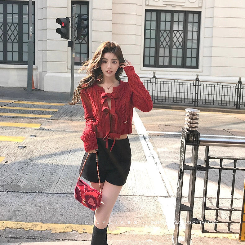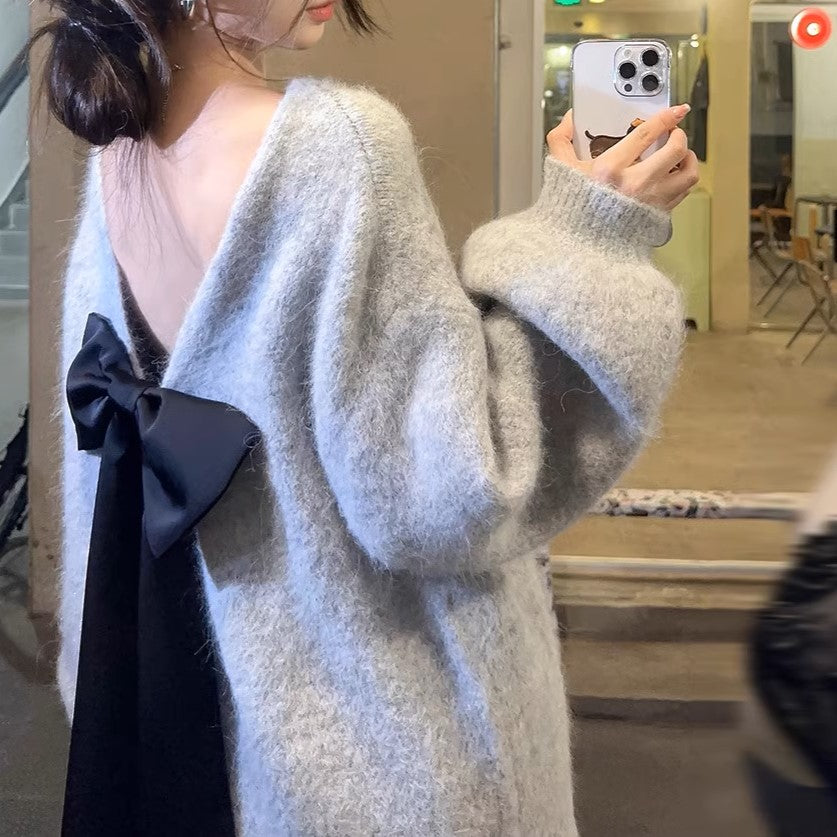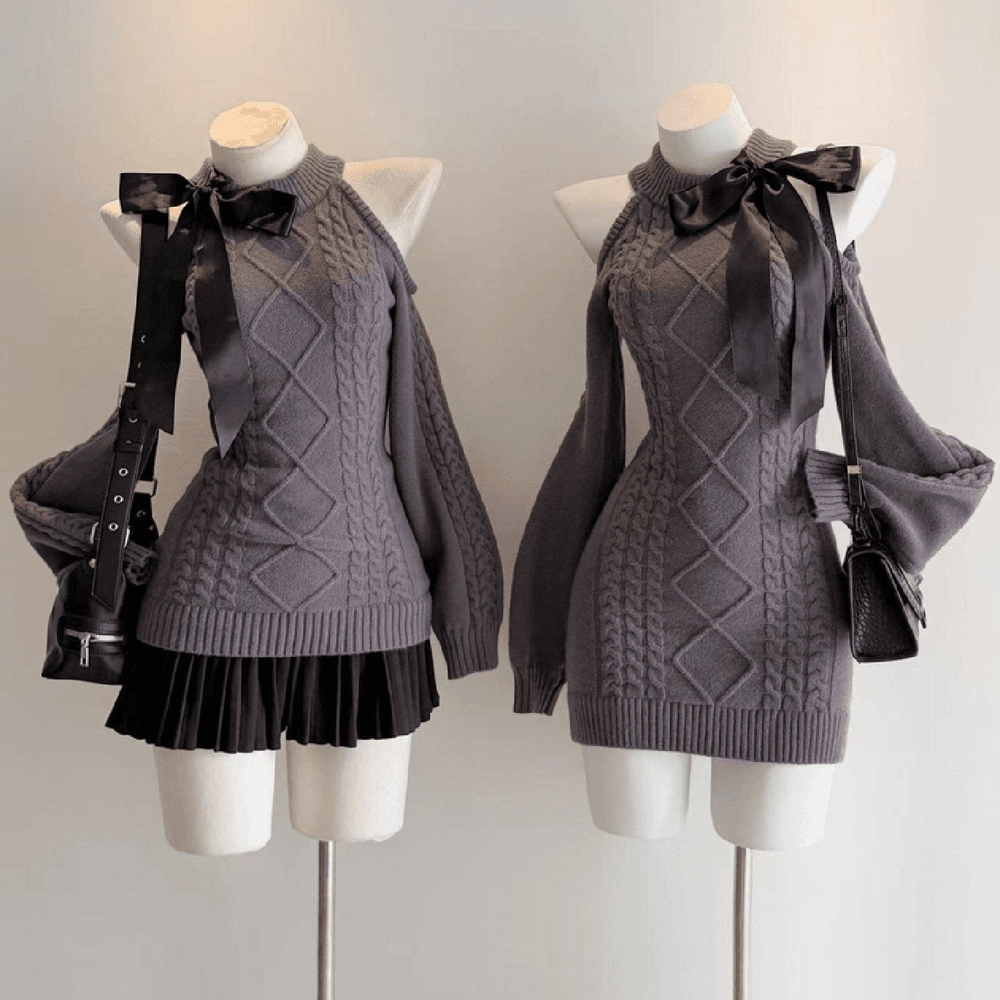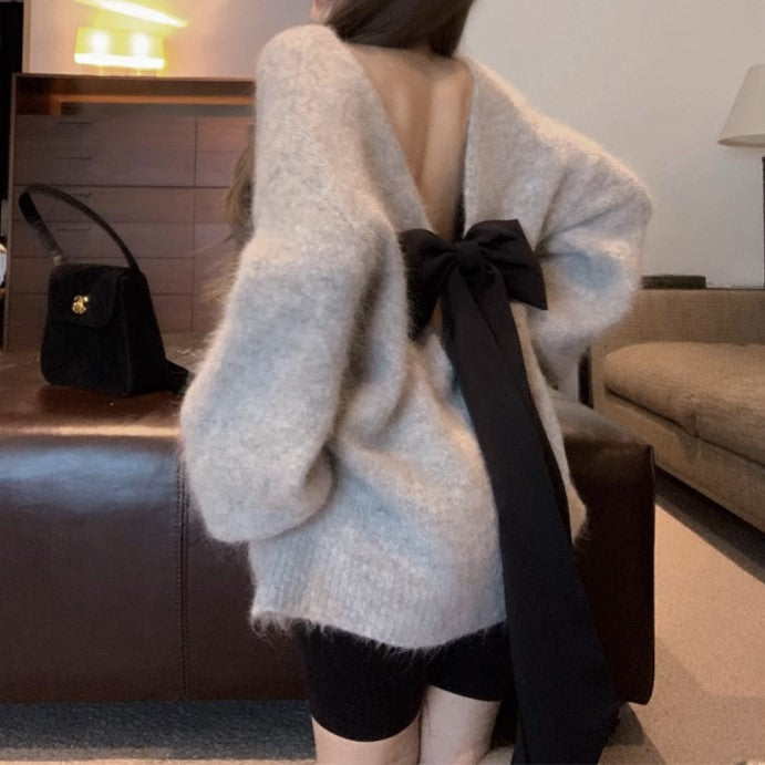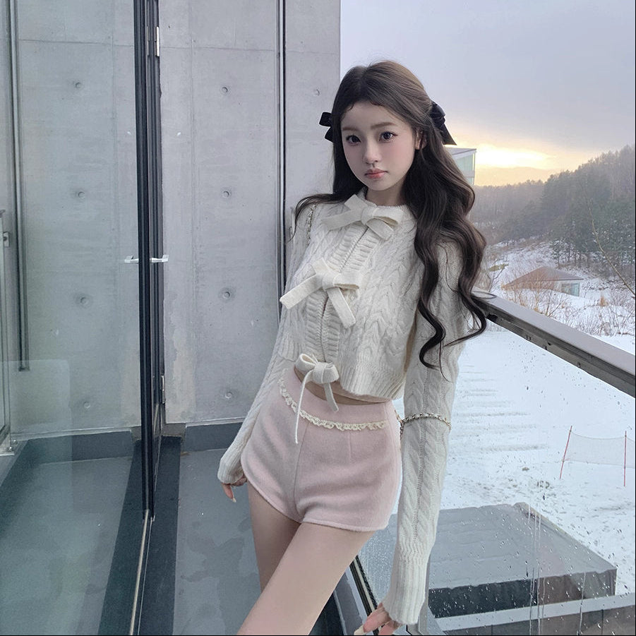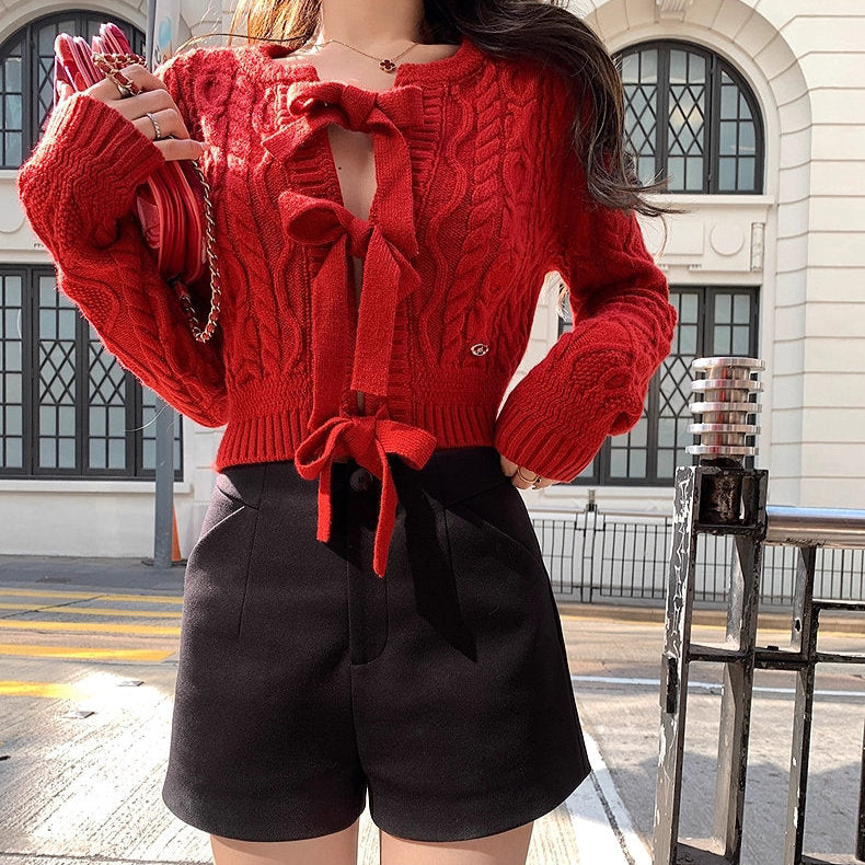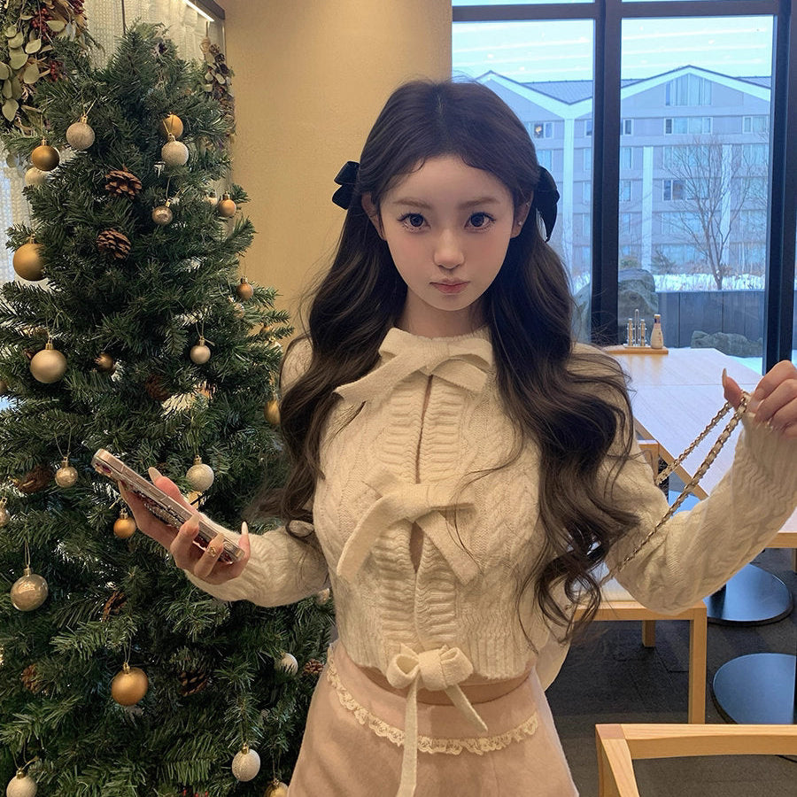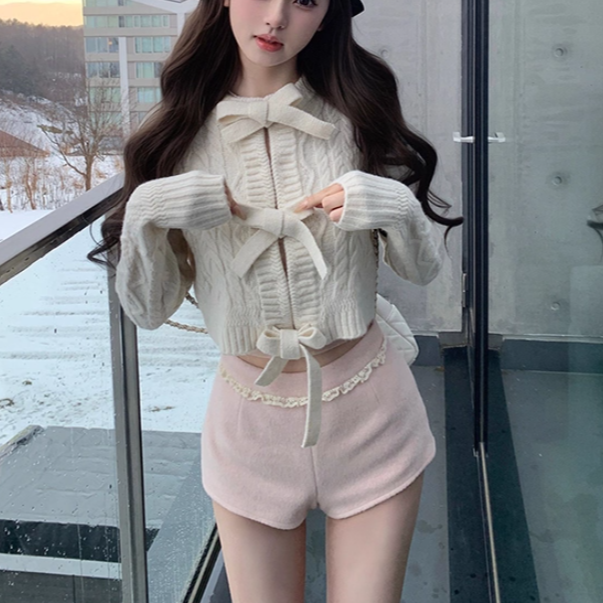 お気に入りのカフェでホットチョコを飲む日のリボンケープニット_R0376