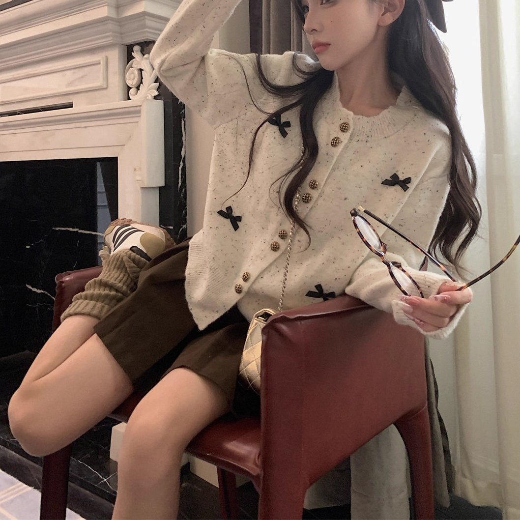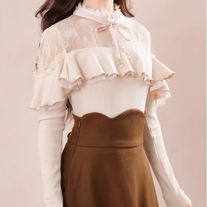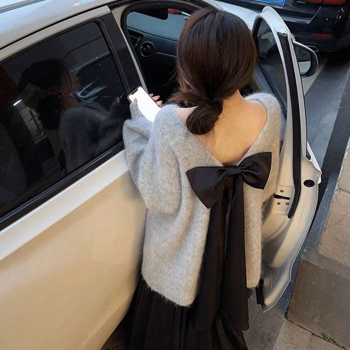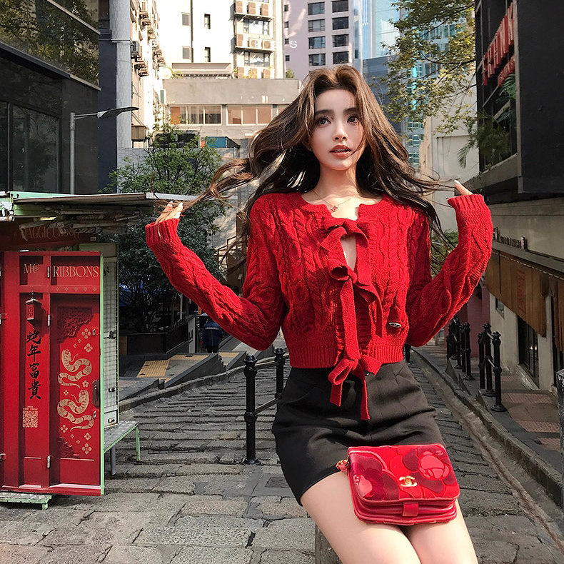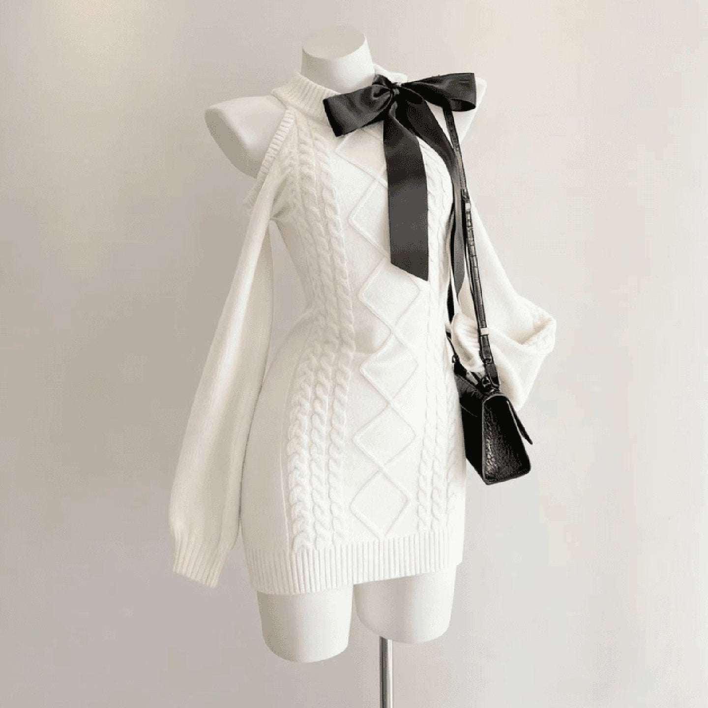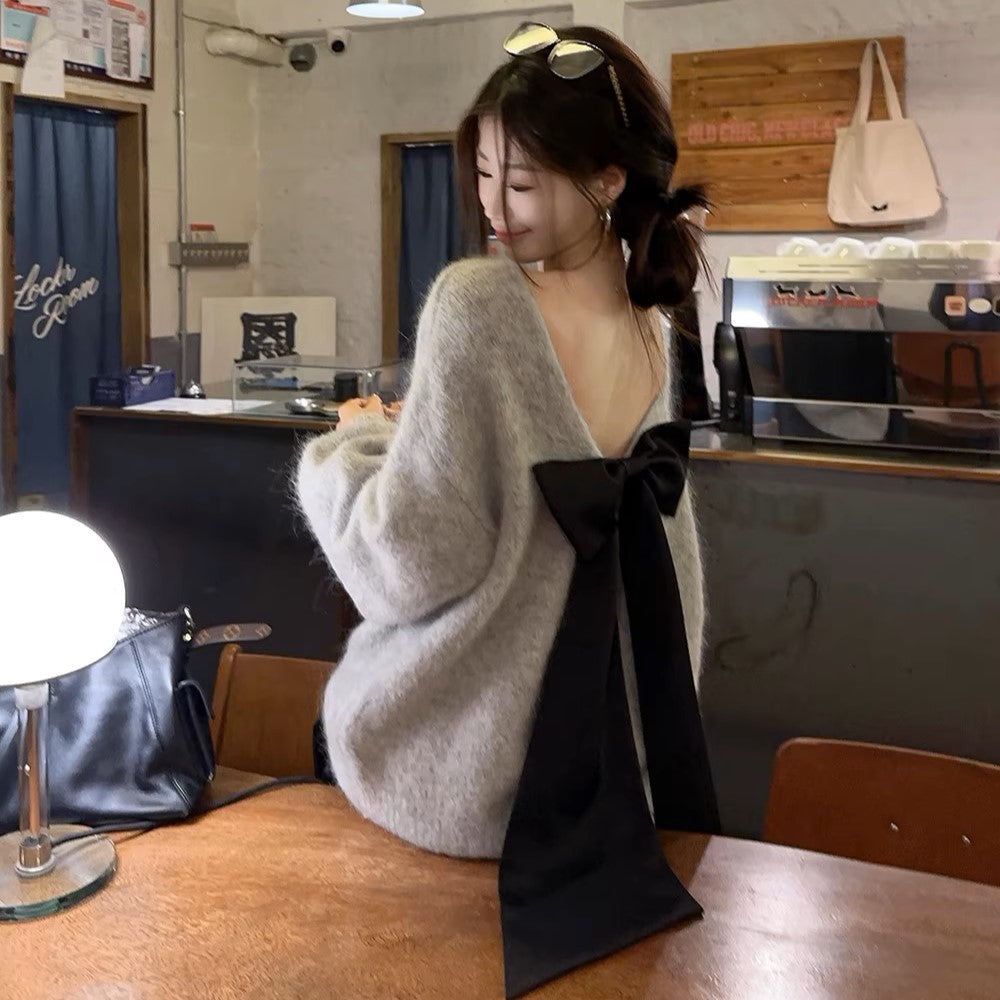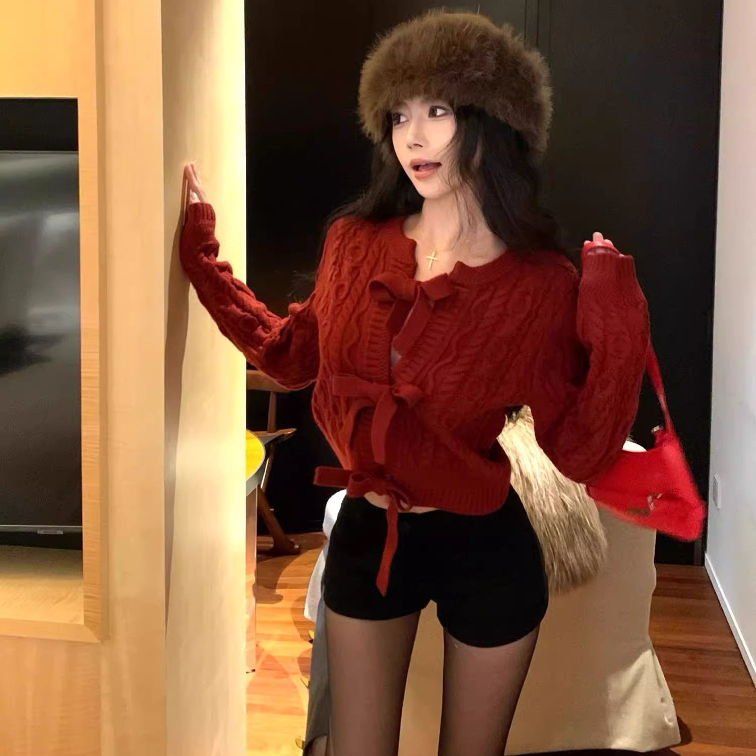 お気に入りのカフェでホットチョコを飲む日のリボンケープニット_R0376