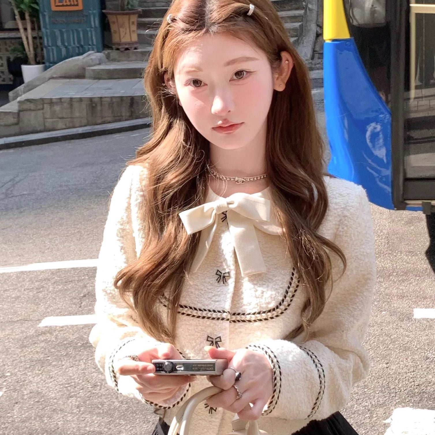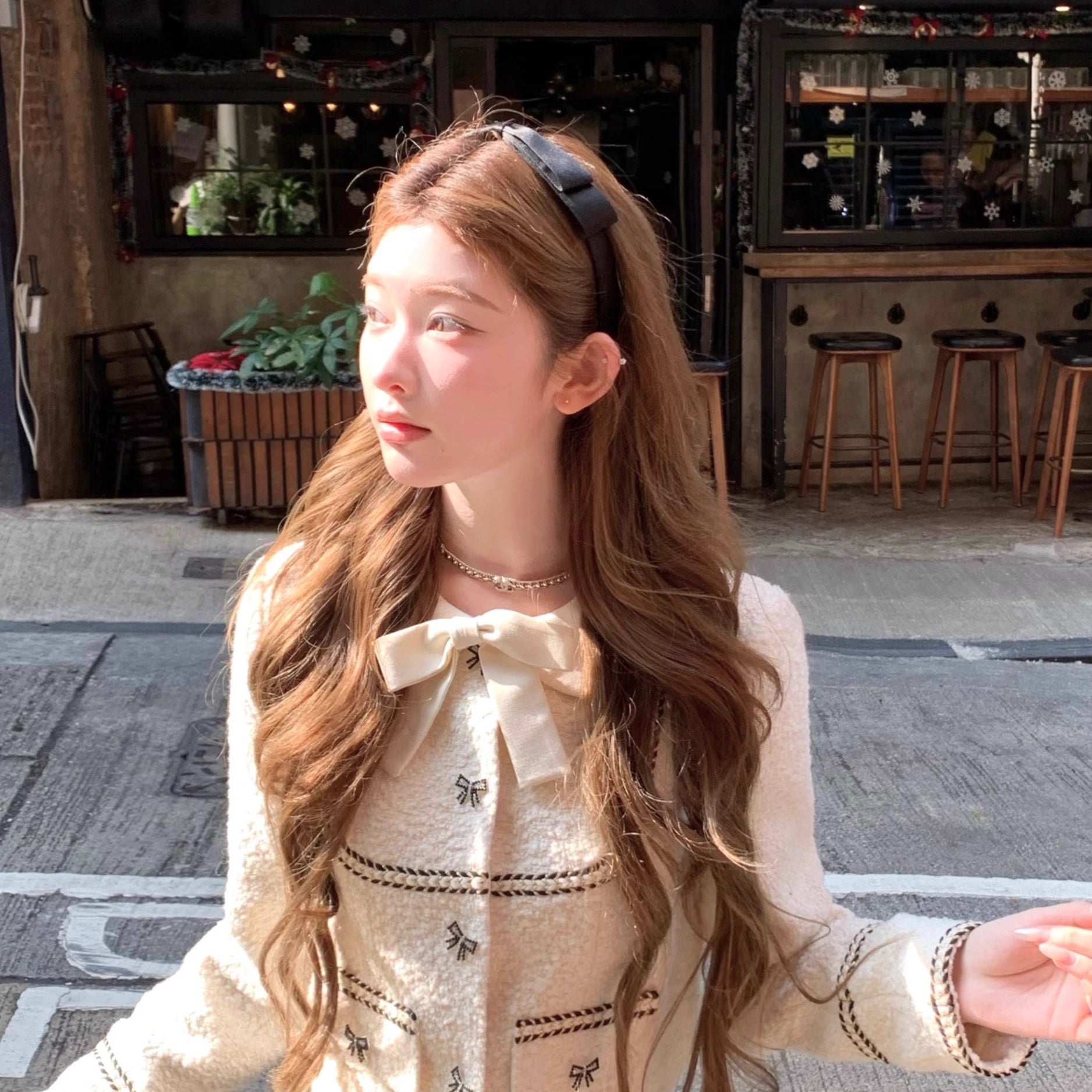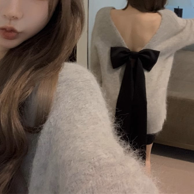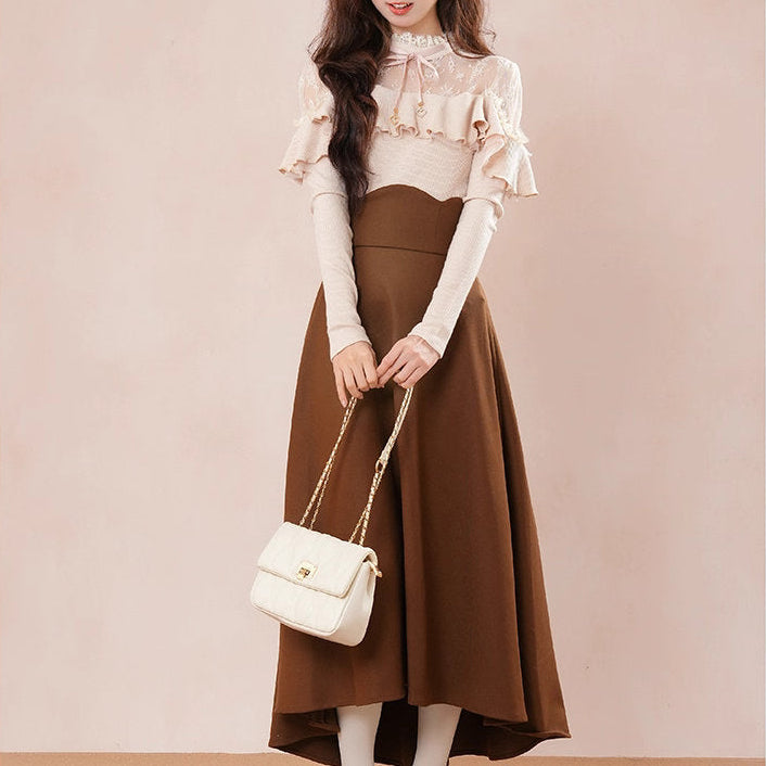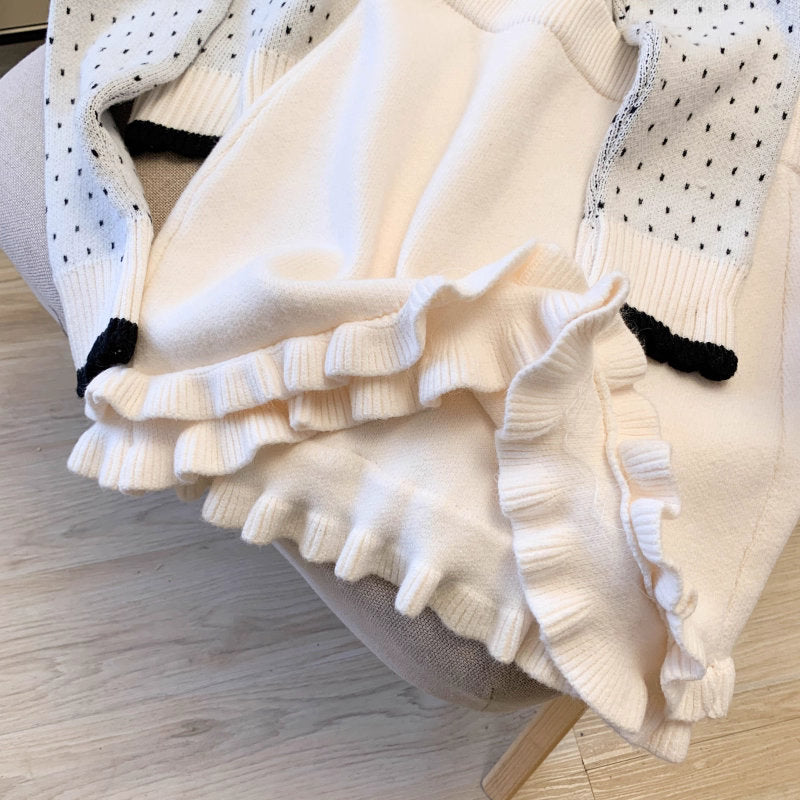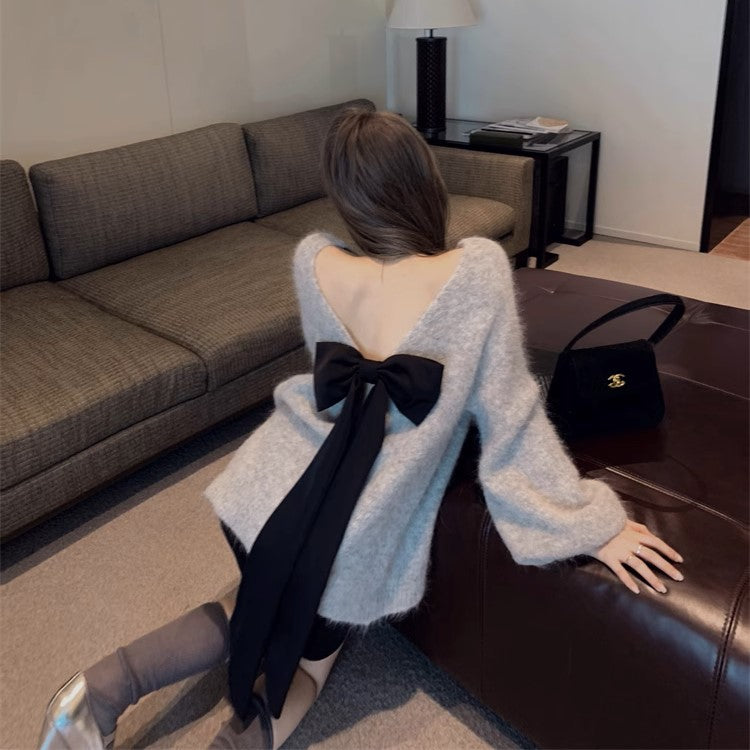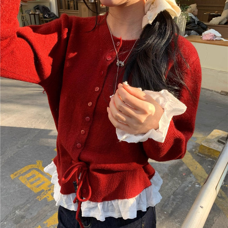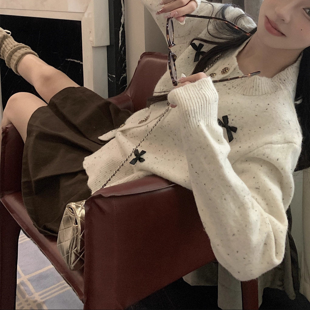 お気に入りのカフェでホットチョコを飲む日のリボンケープニット_R0376