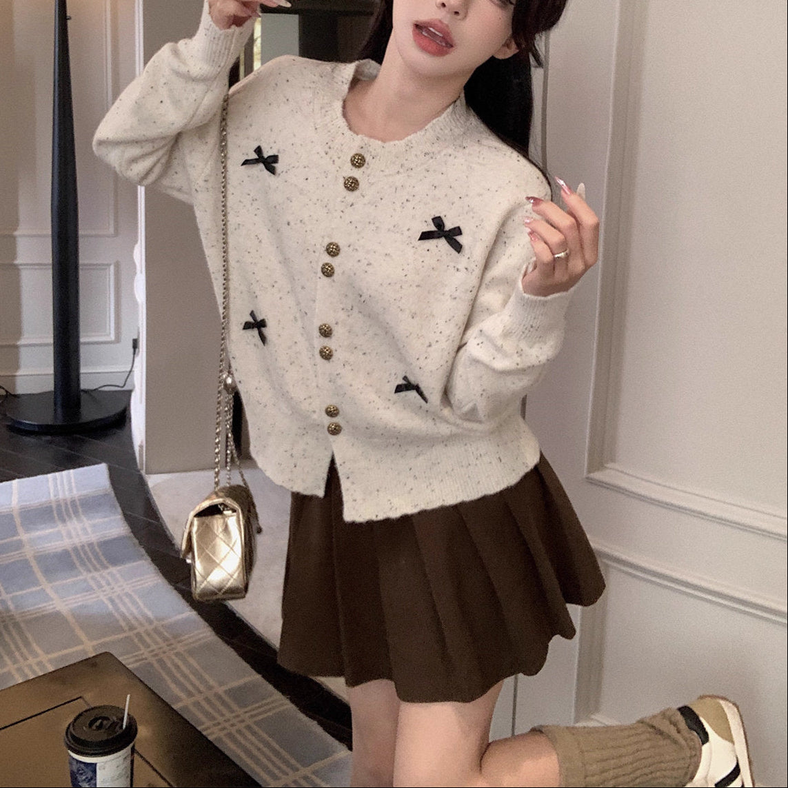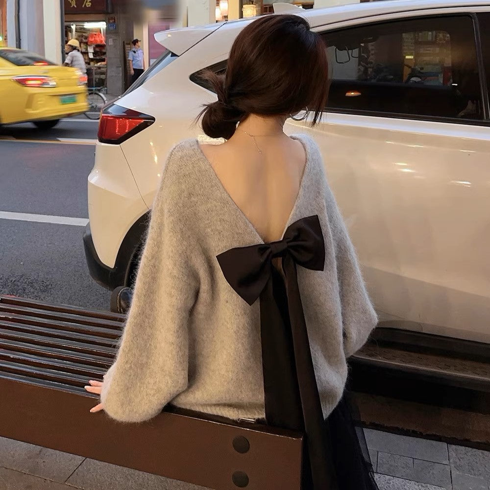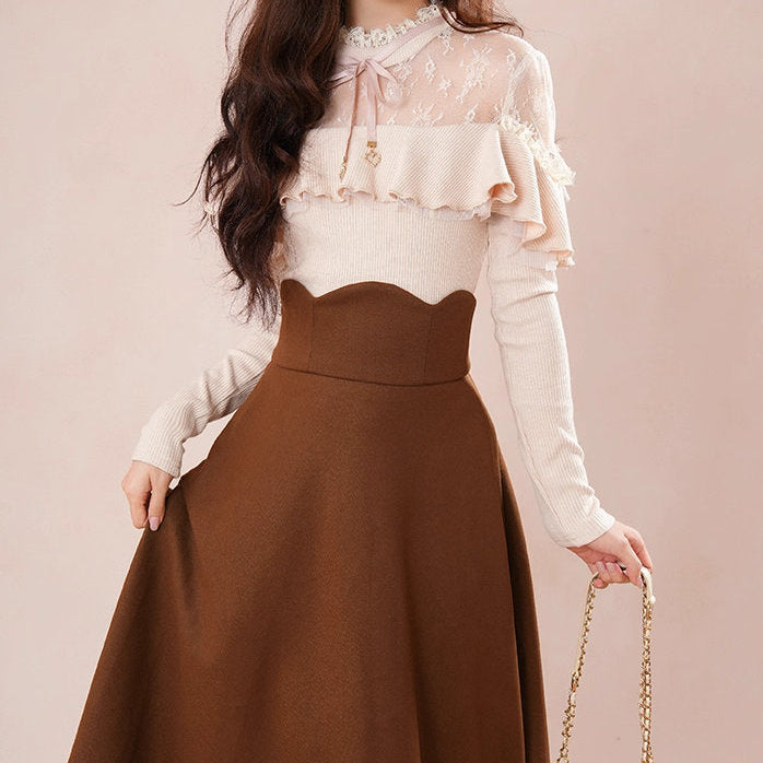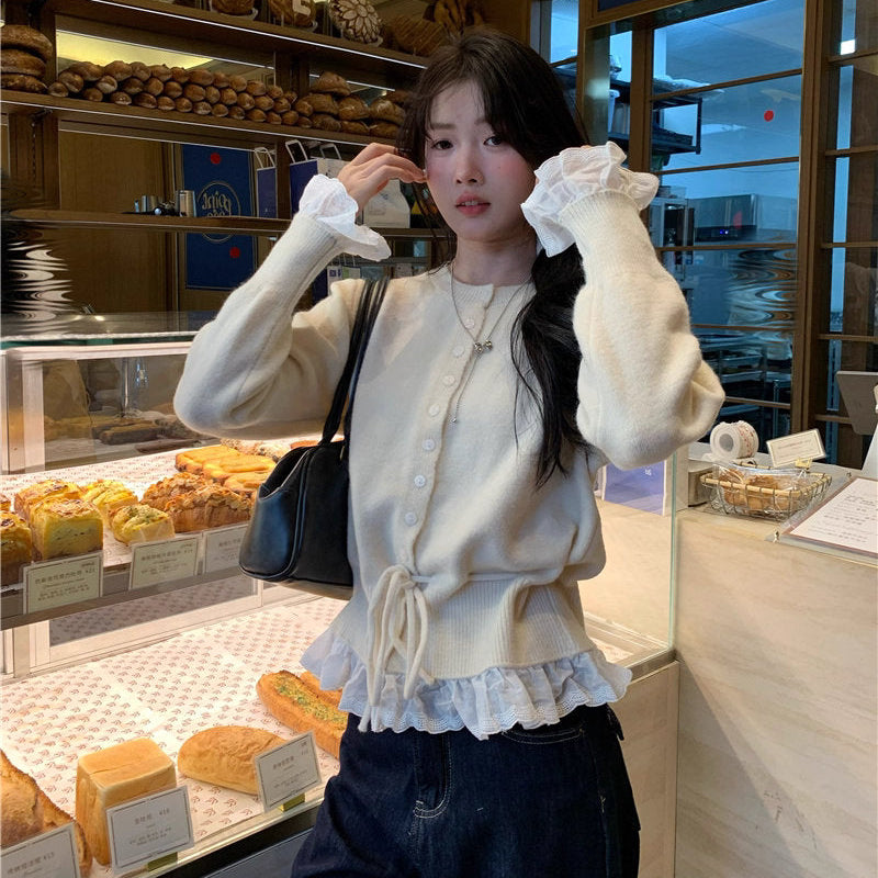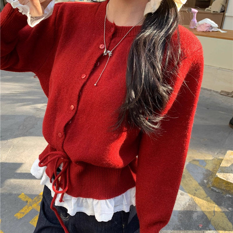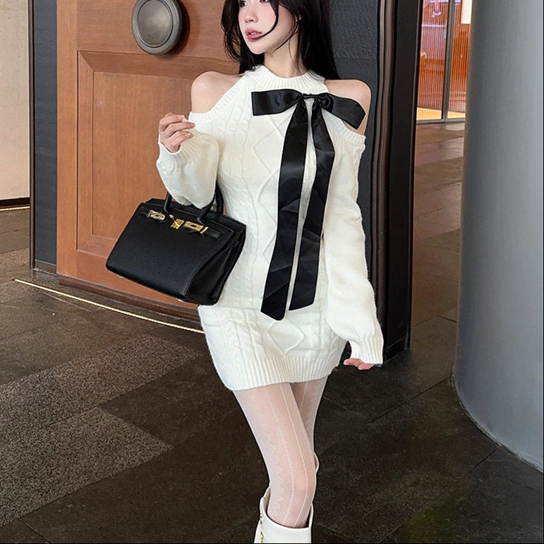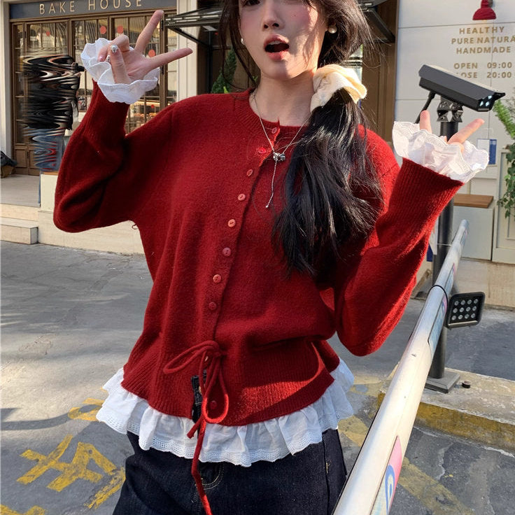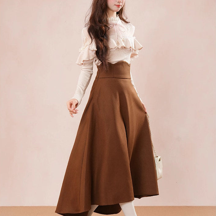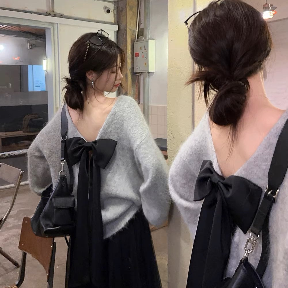お気に入りのカフェでホットチョコを飲む日のリボンケープニット_R0376