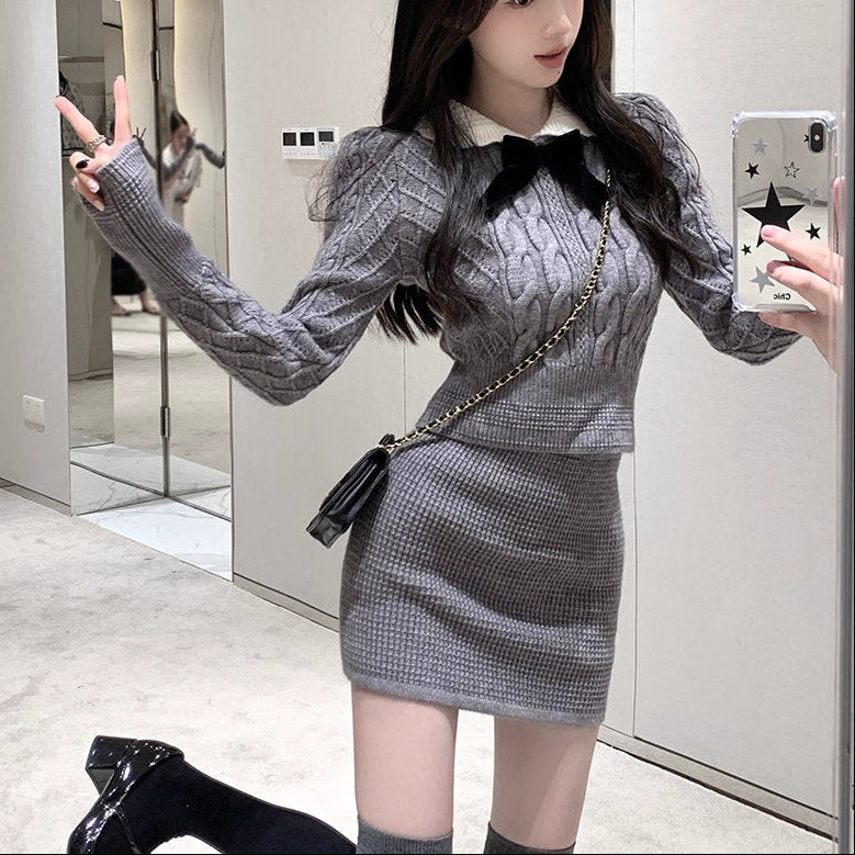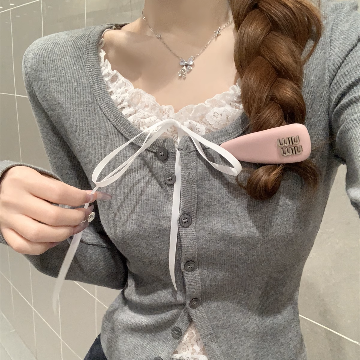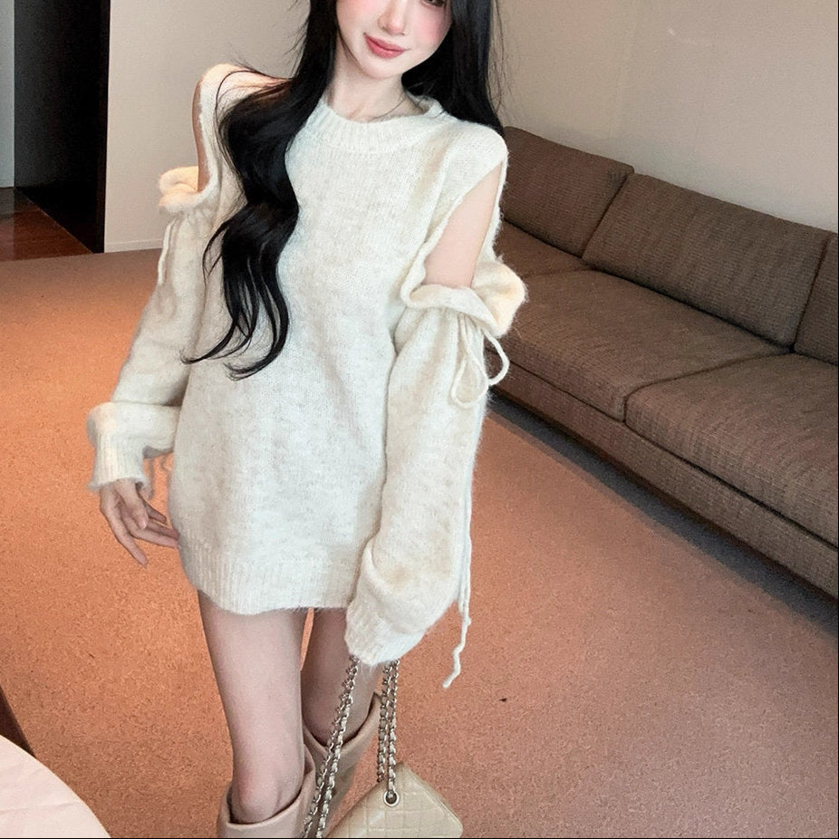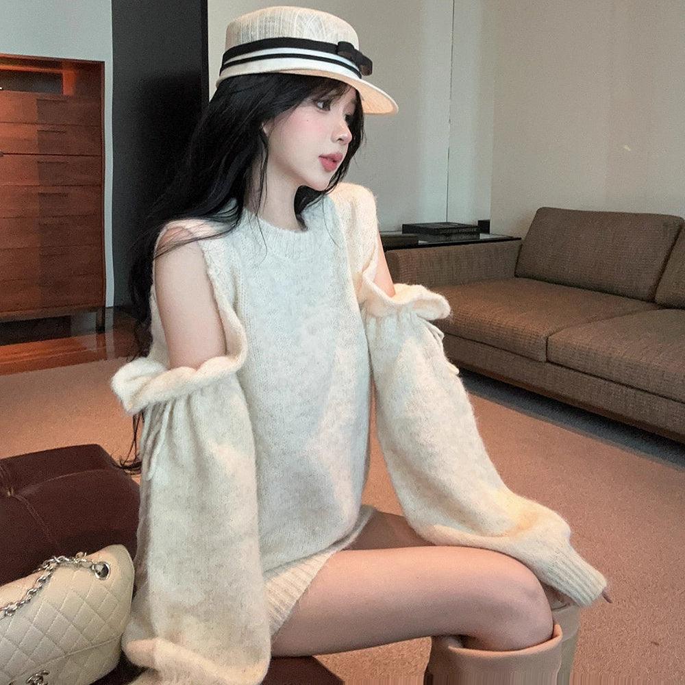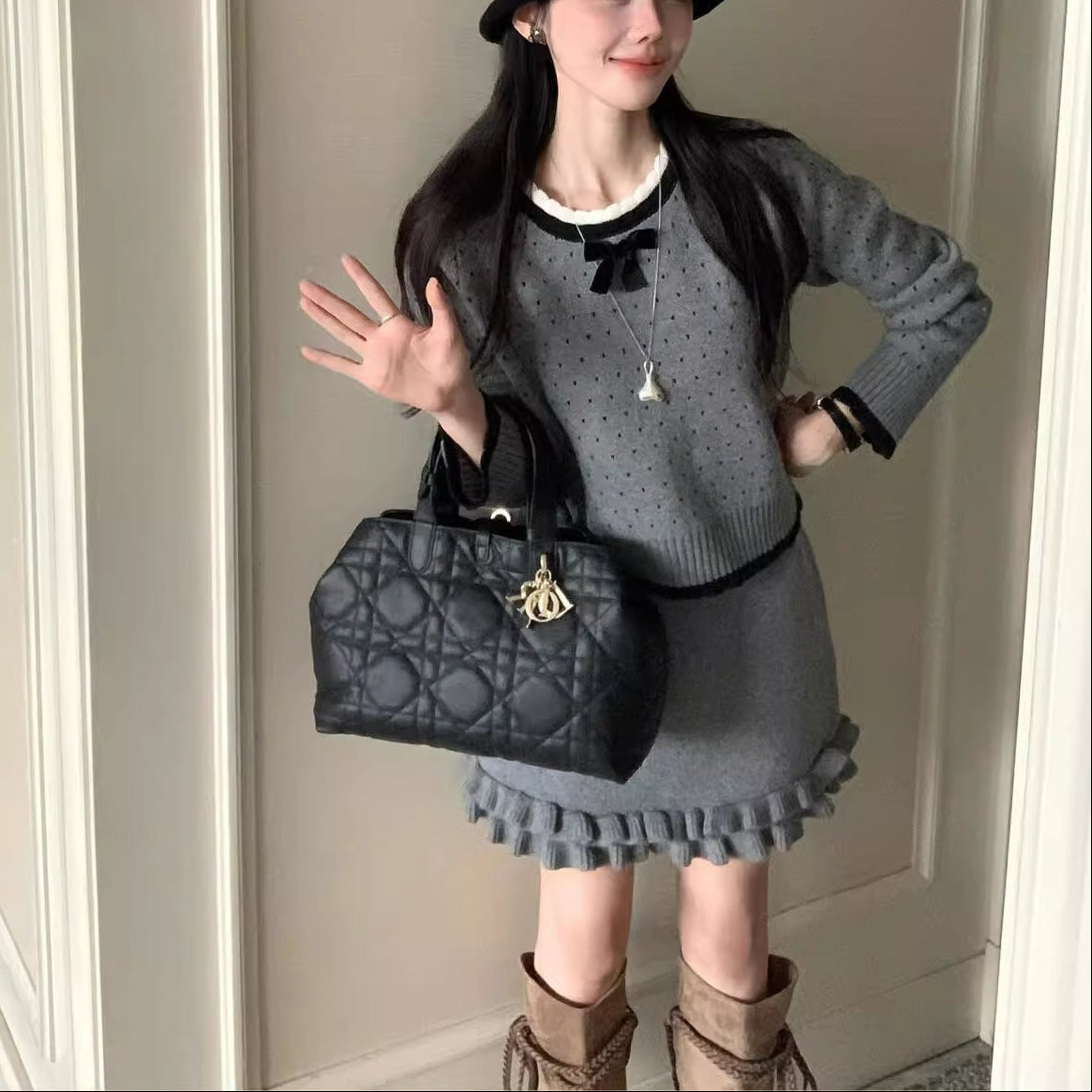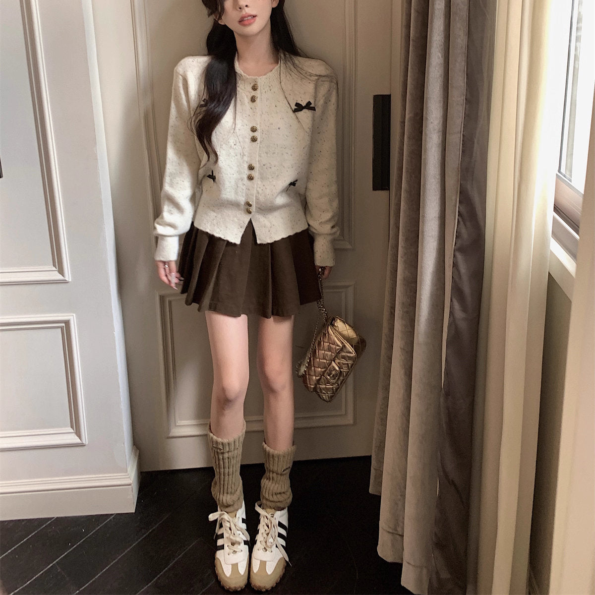 お気に入りのカフェでホットチョコを飲む日のリボンケープニット_R0376