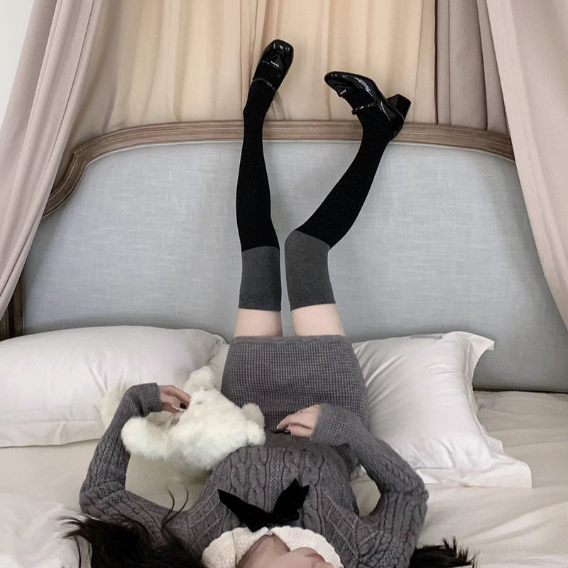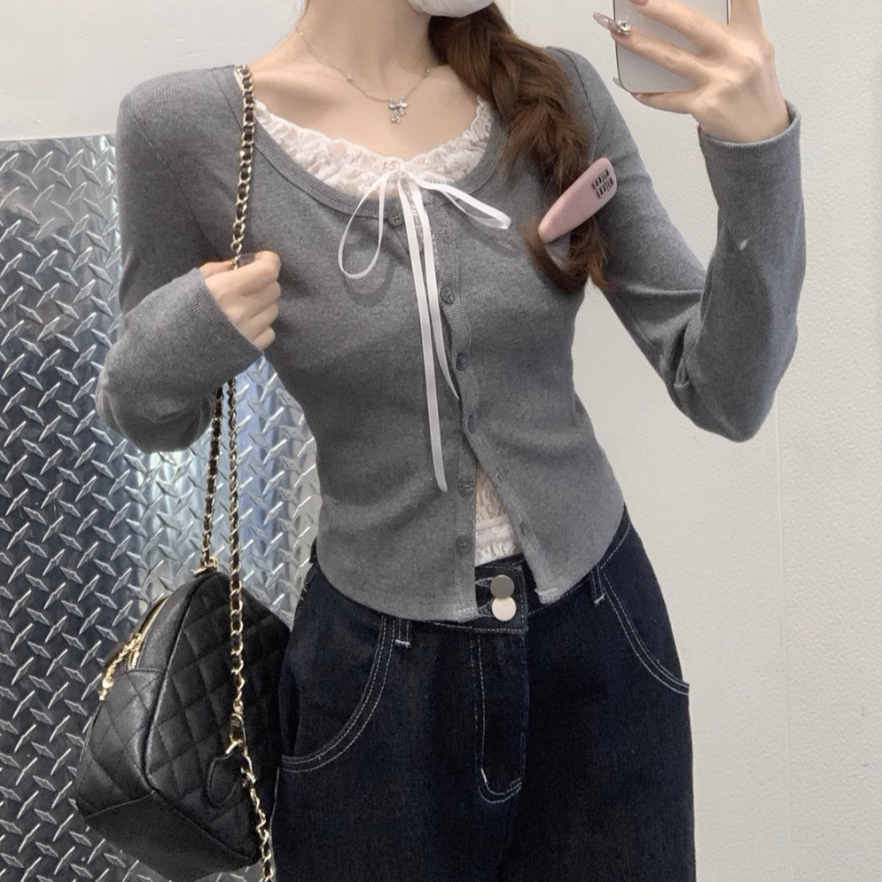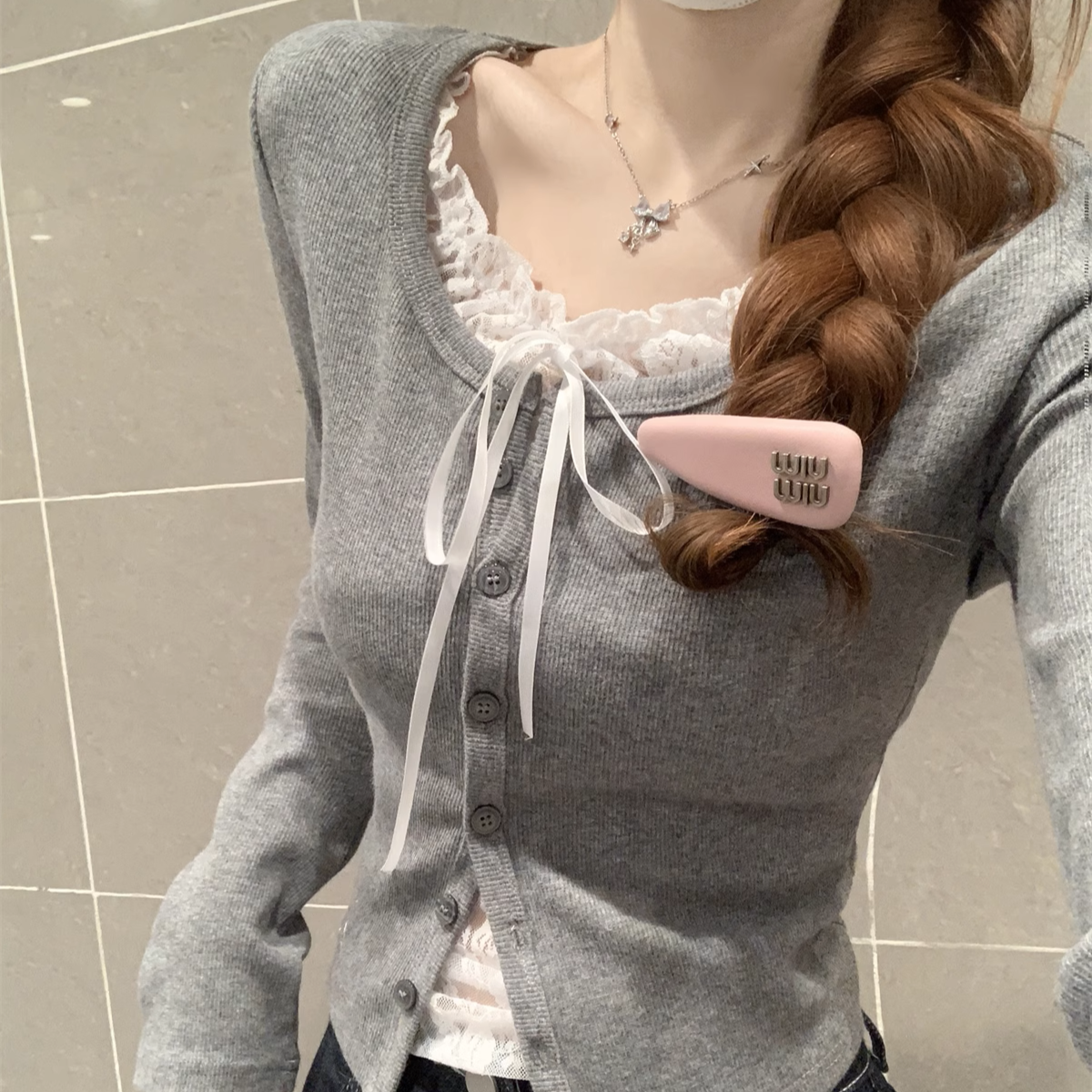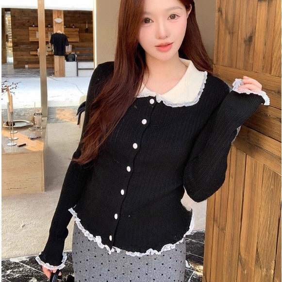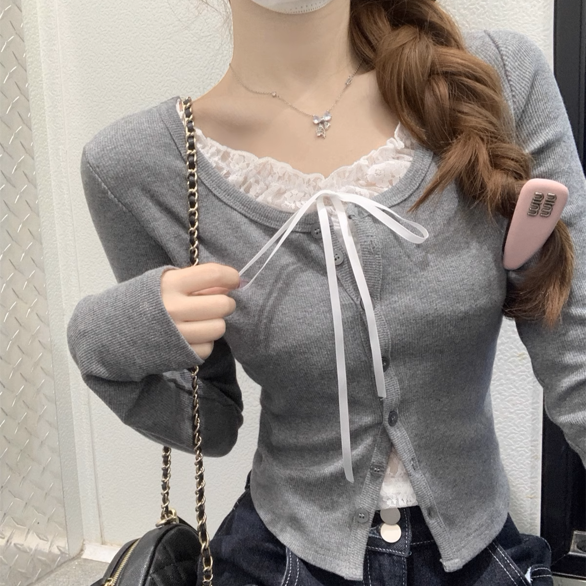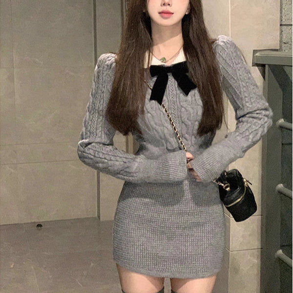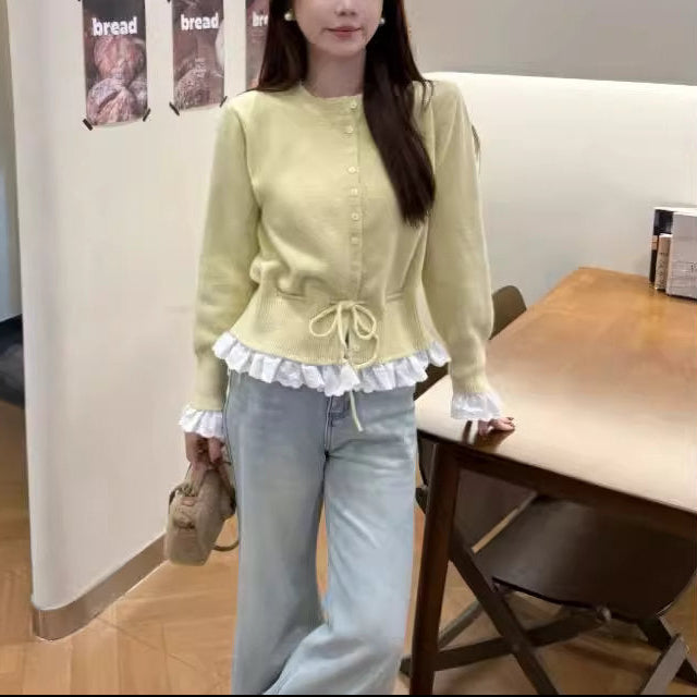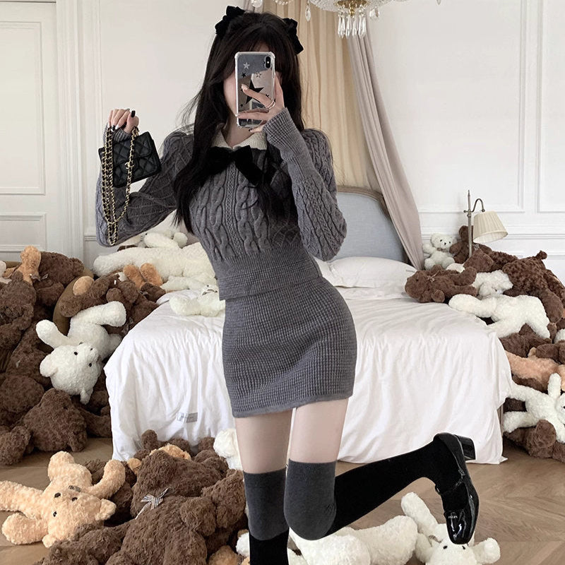 お気に入りのカフェでホットチョコを飲む日のリボンケープニット_R0376