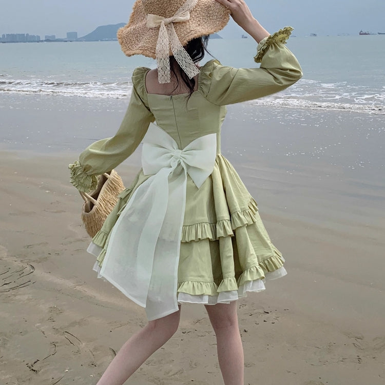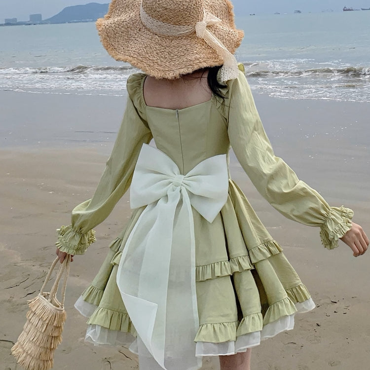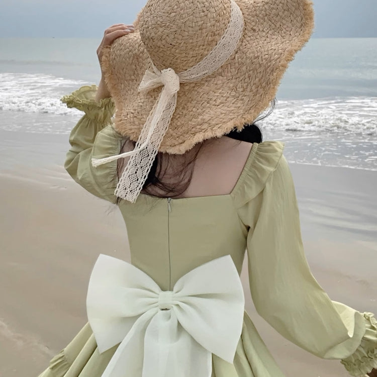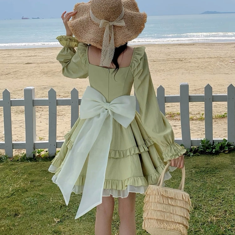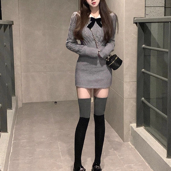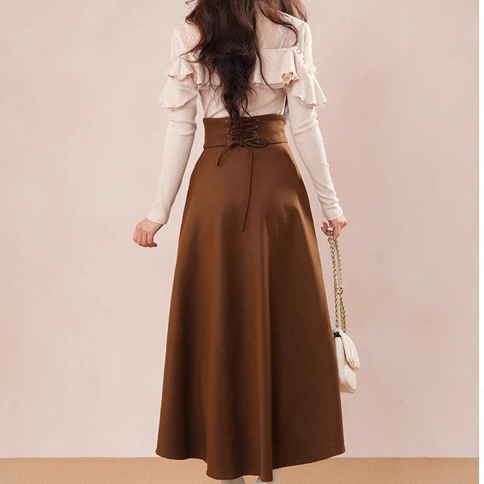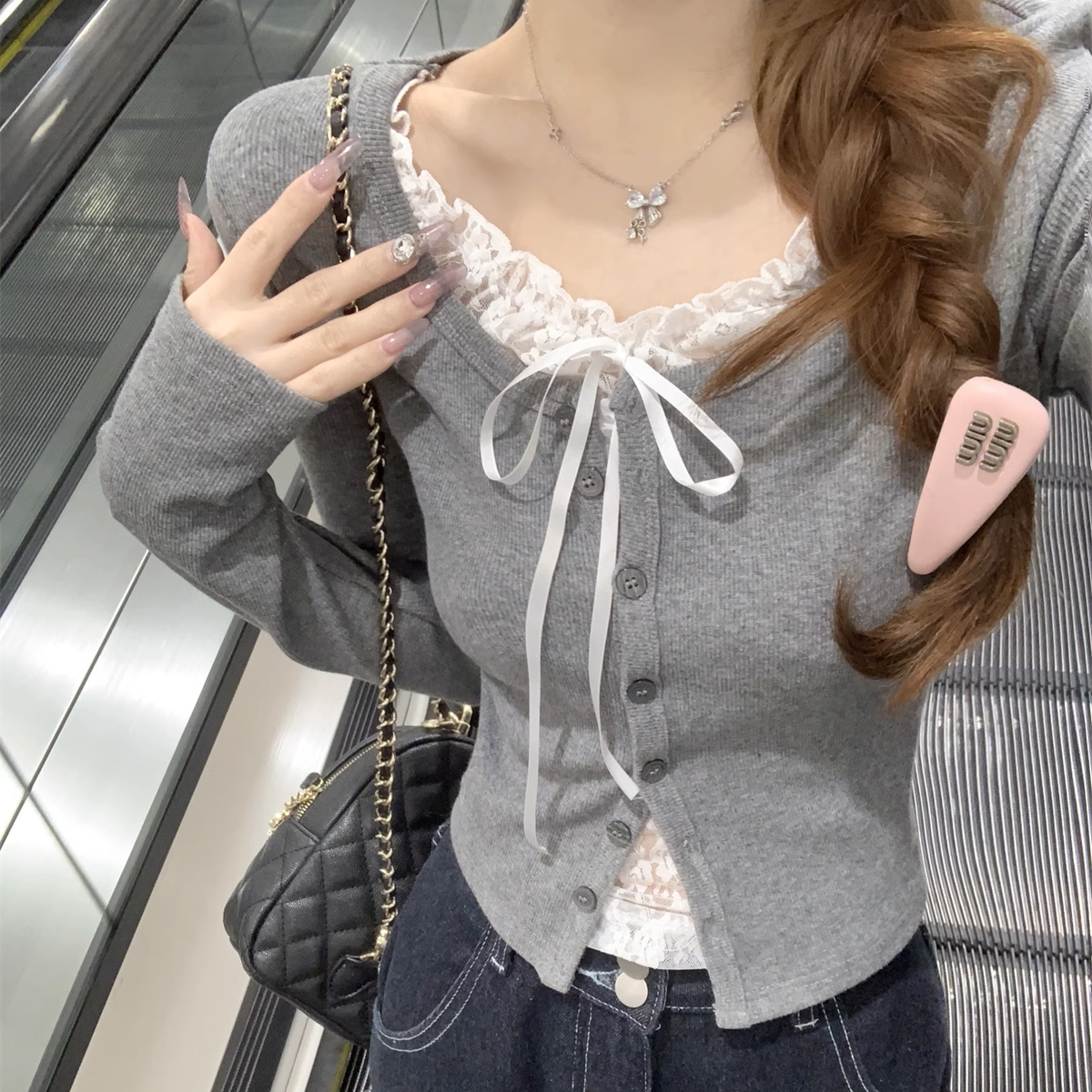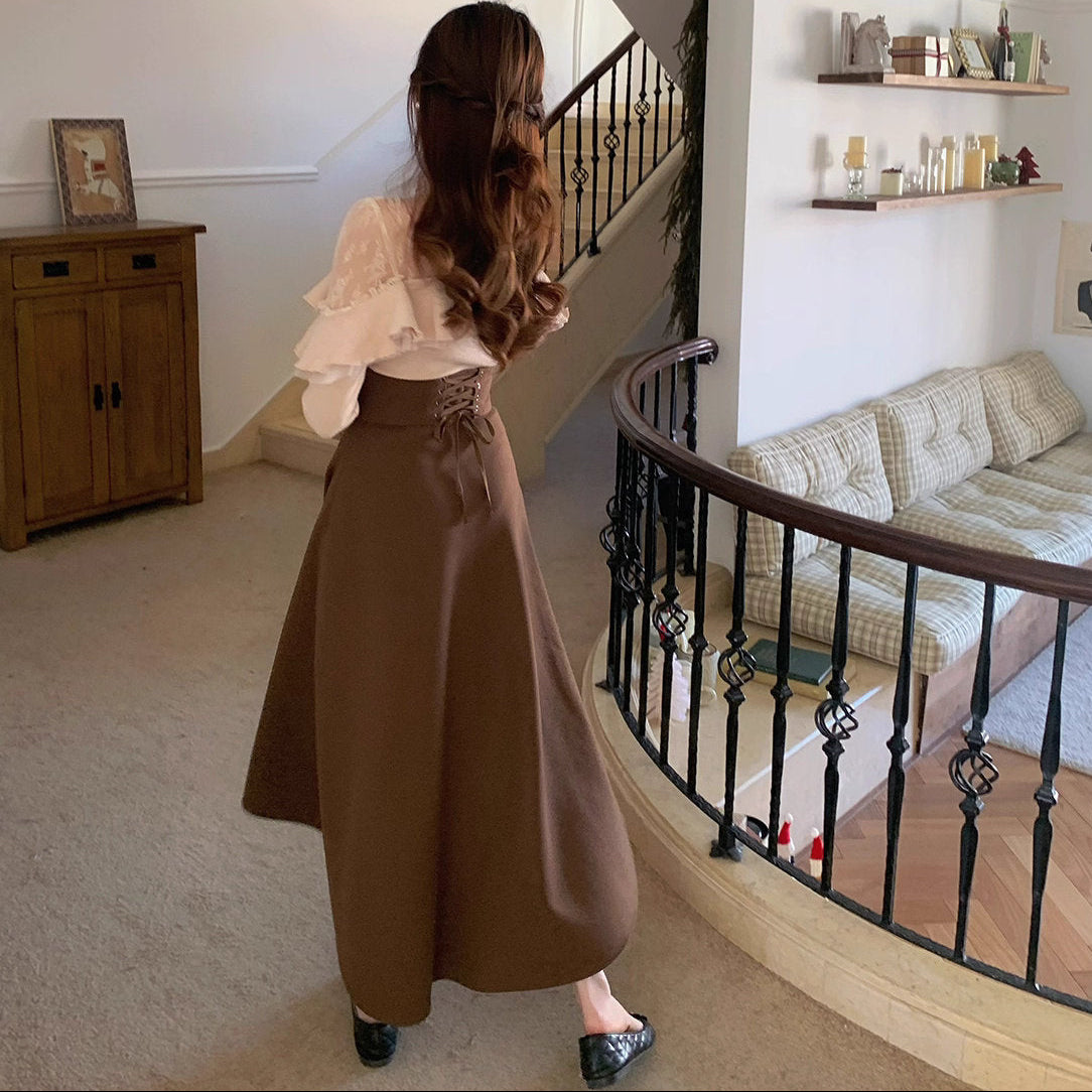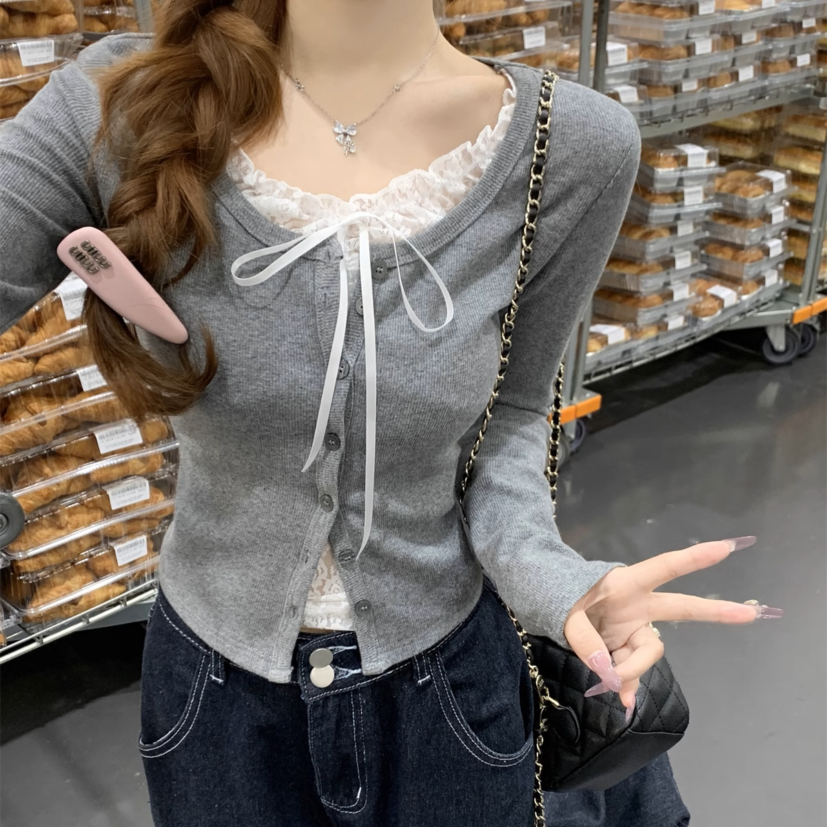 お気に入りのカフェでホットチョコを飲む日のリボンケープニット_R0376