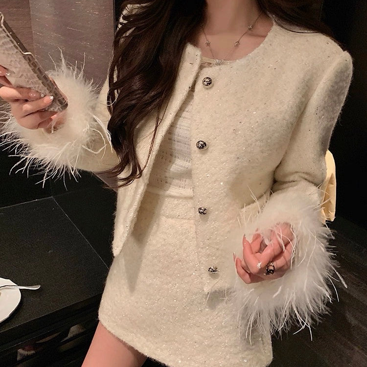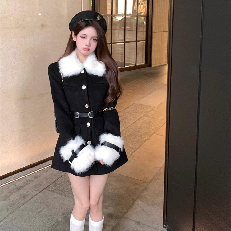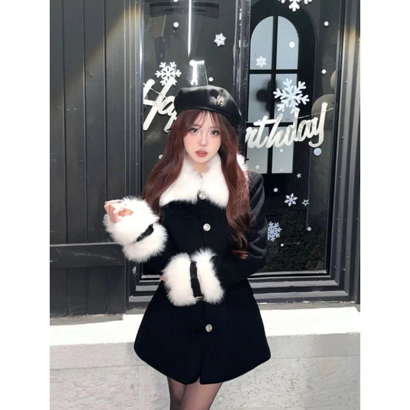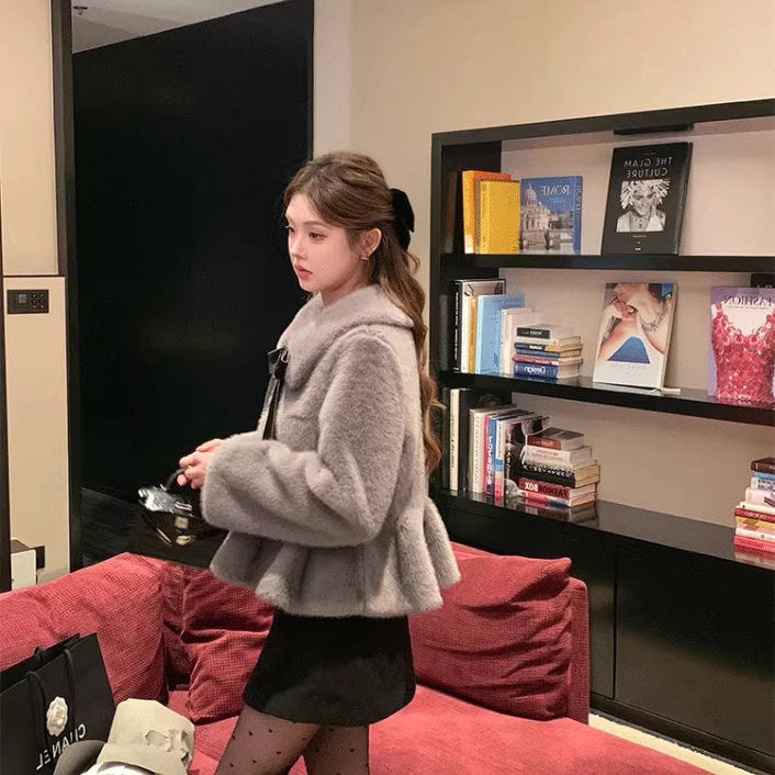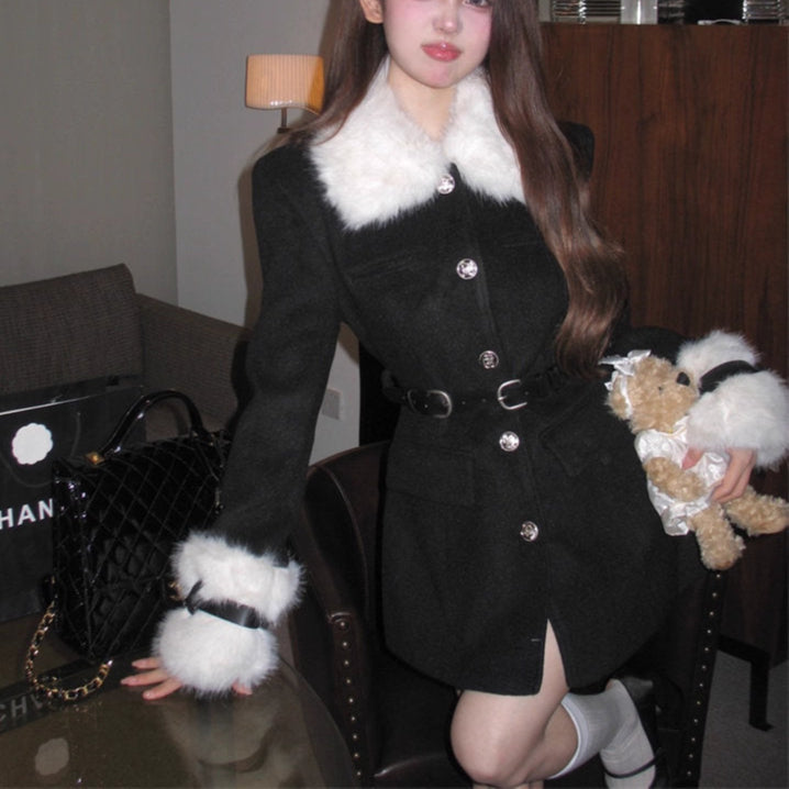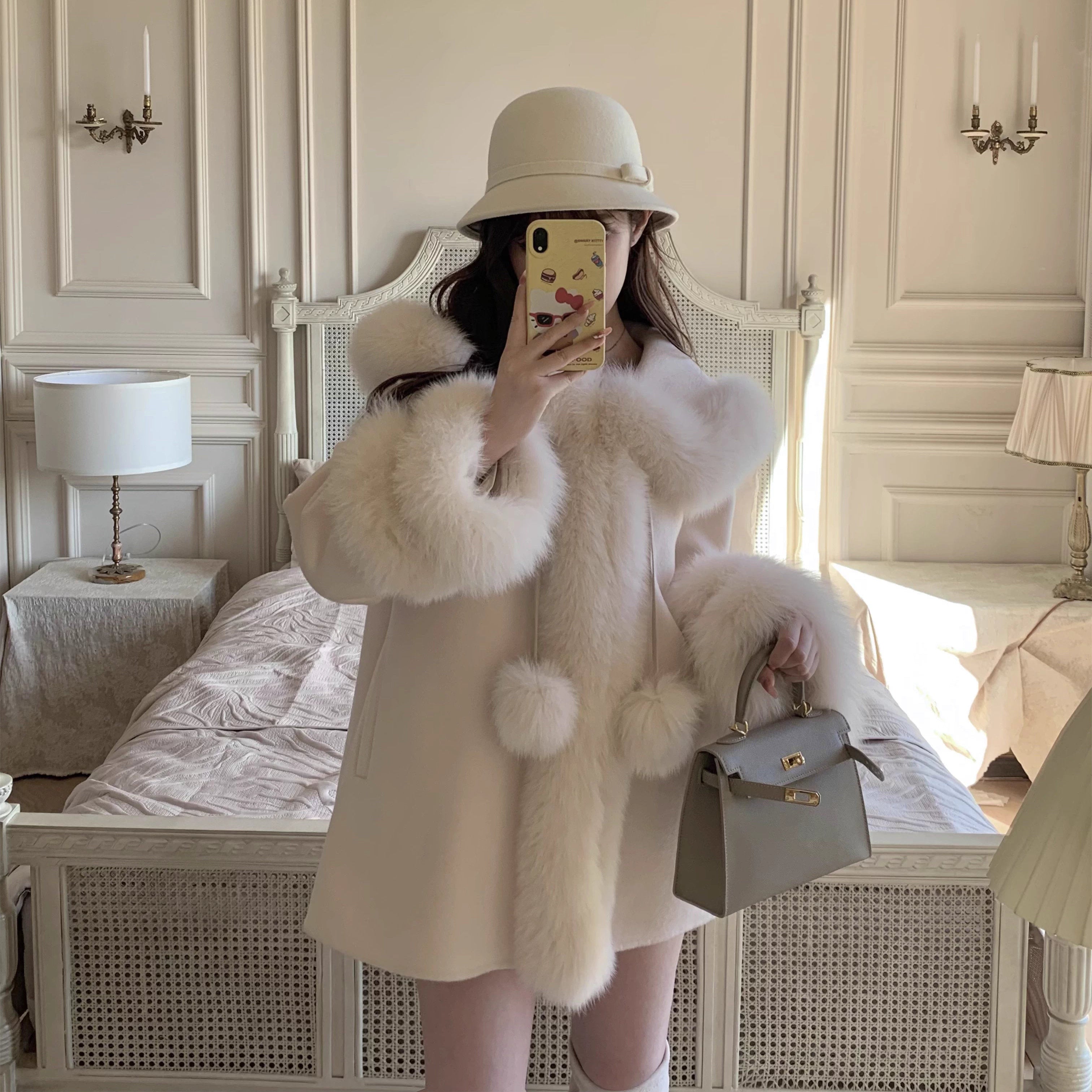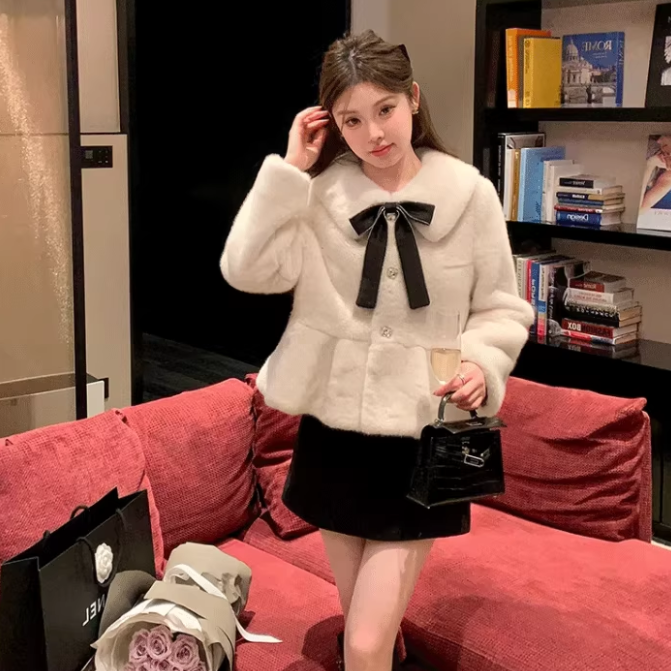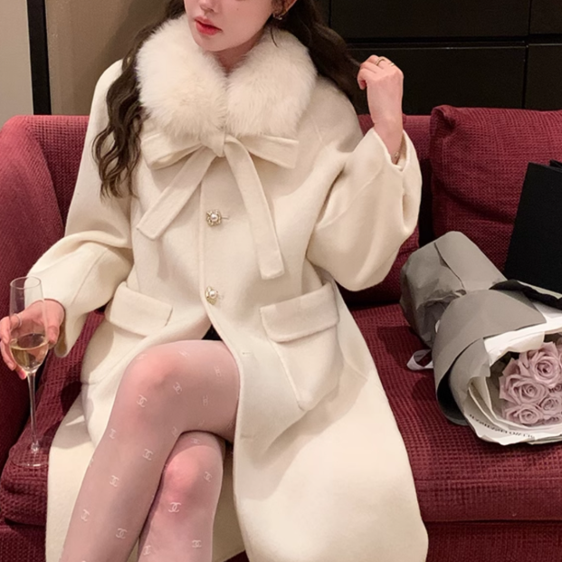白い月明かりに包まれた夜のリボンファーコート_R0403