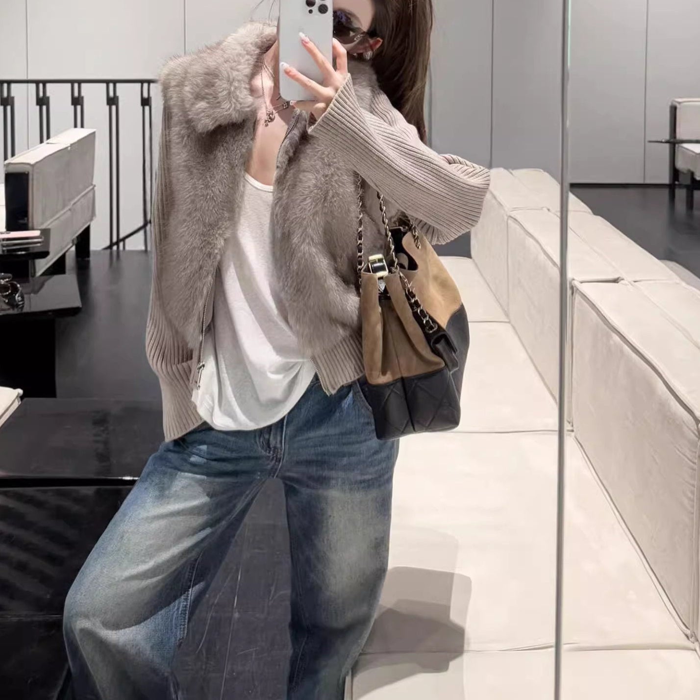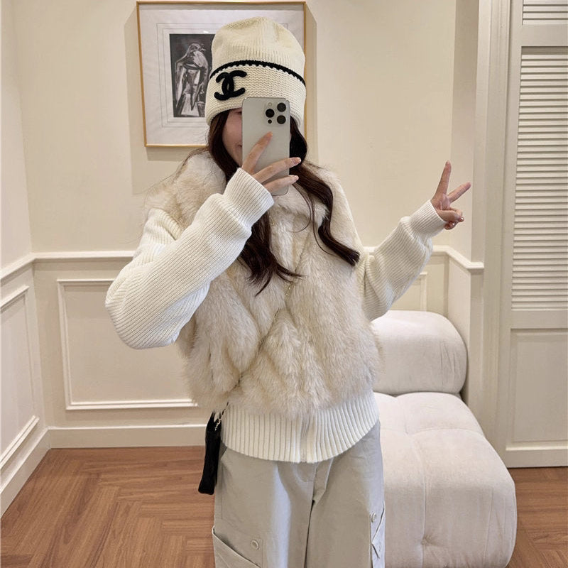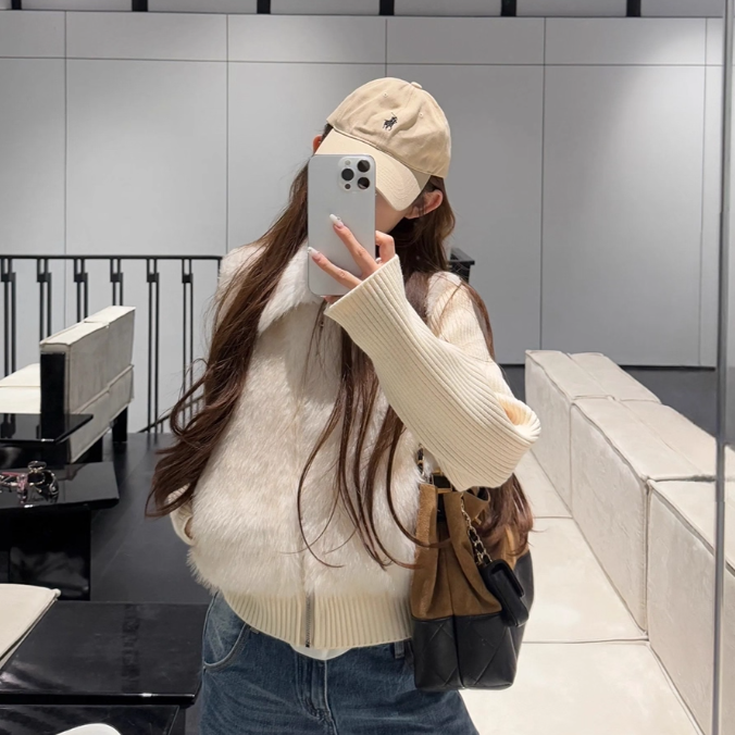冬の静けさにふわり溶けるまろみファーニットジャケット_R0442