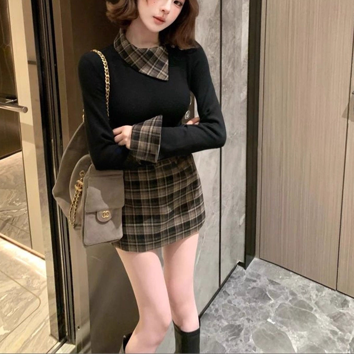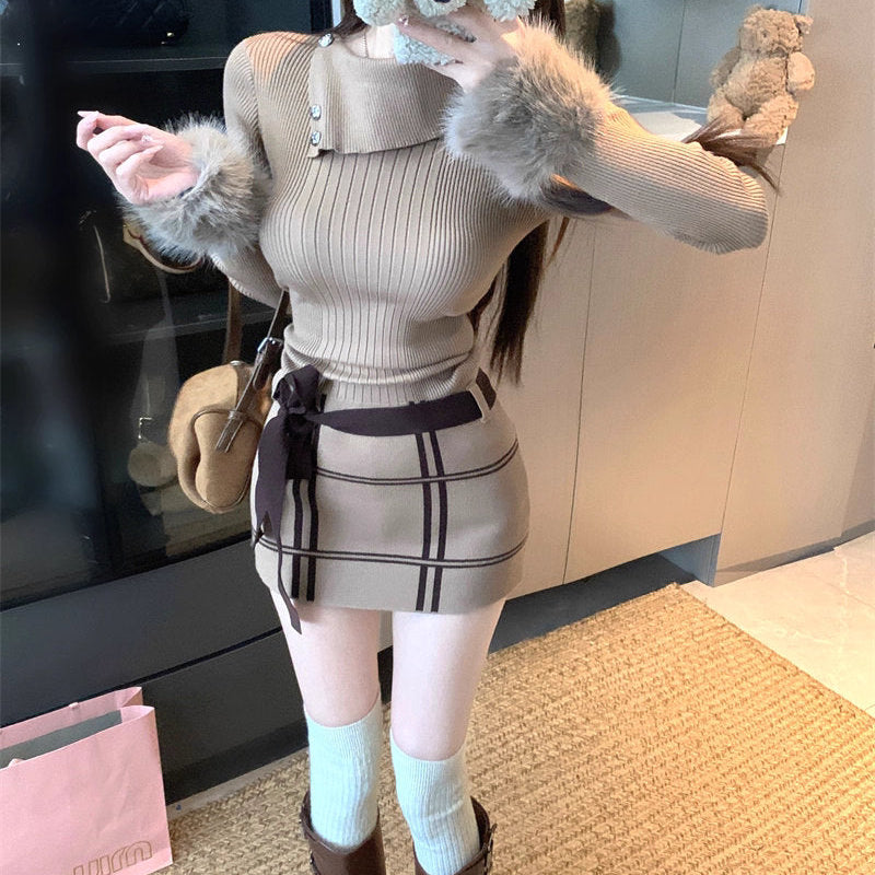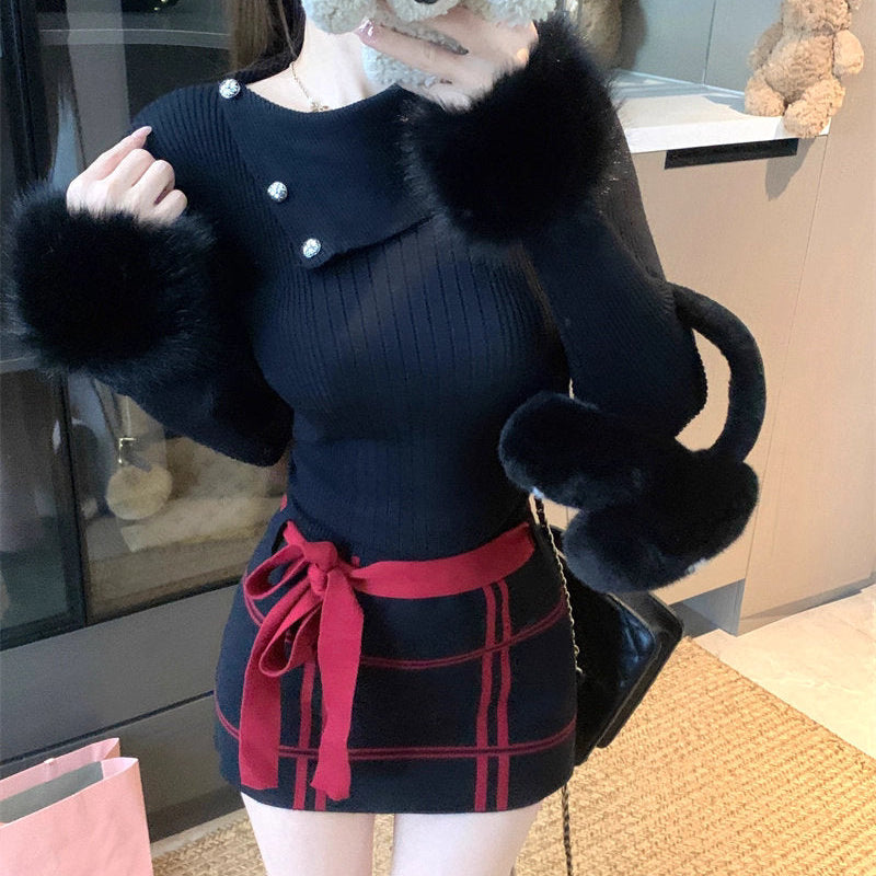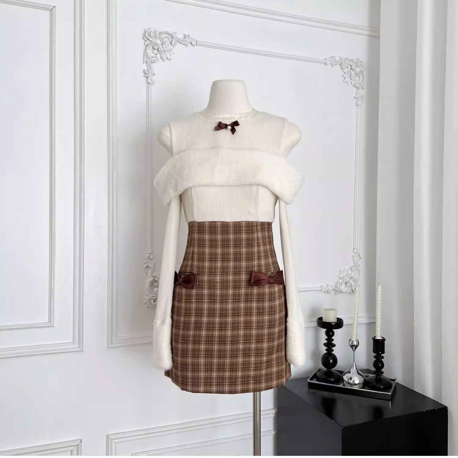 ふわりと心ほどける冬のファーチェックワンピース_R0447