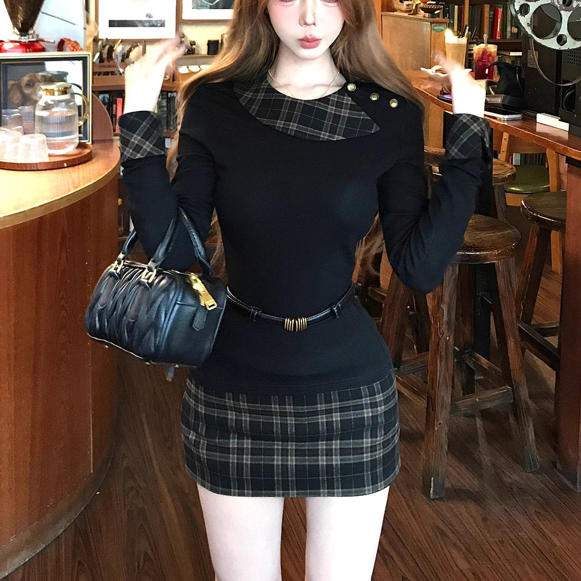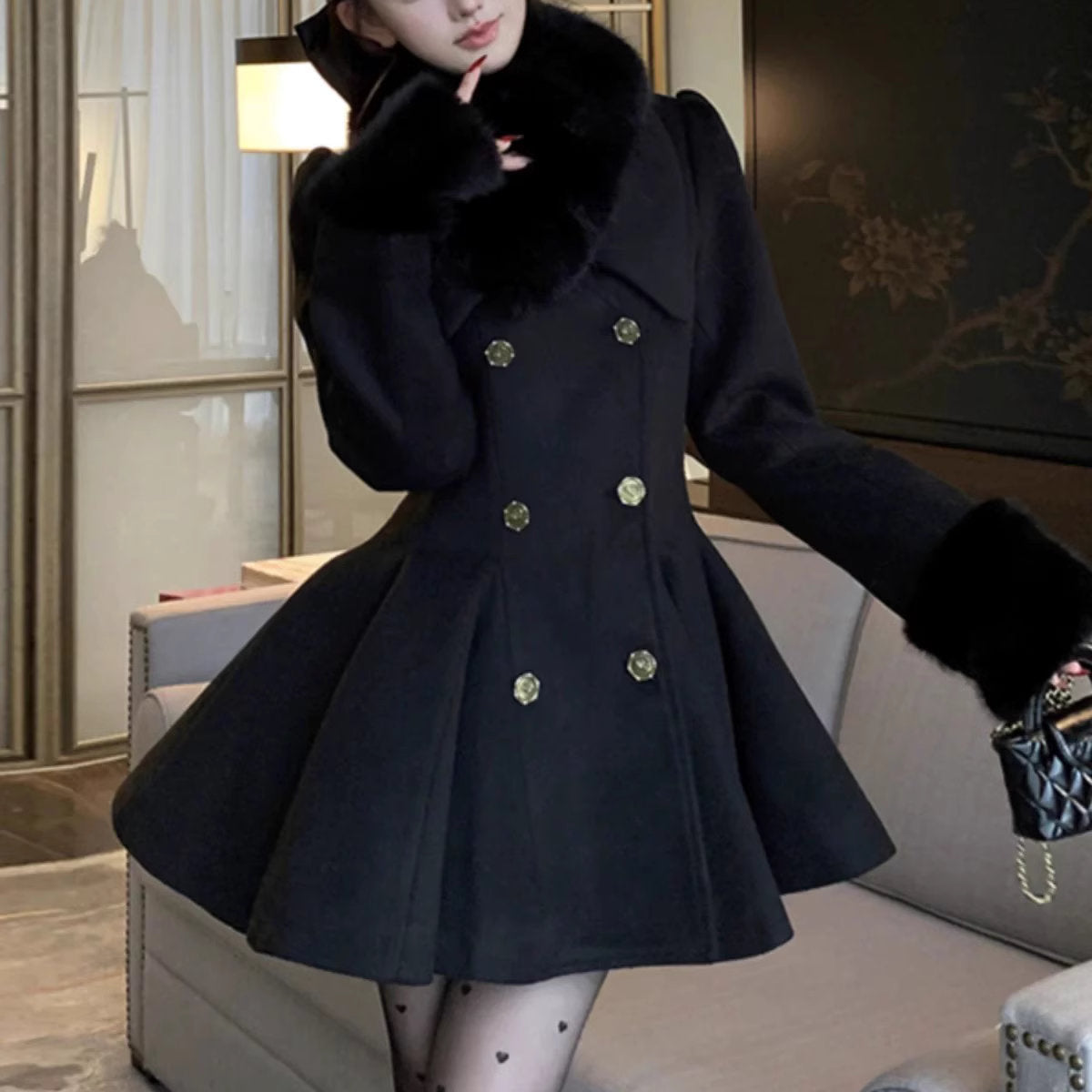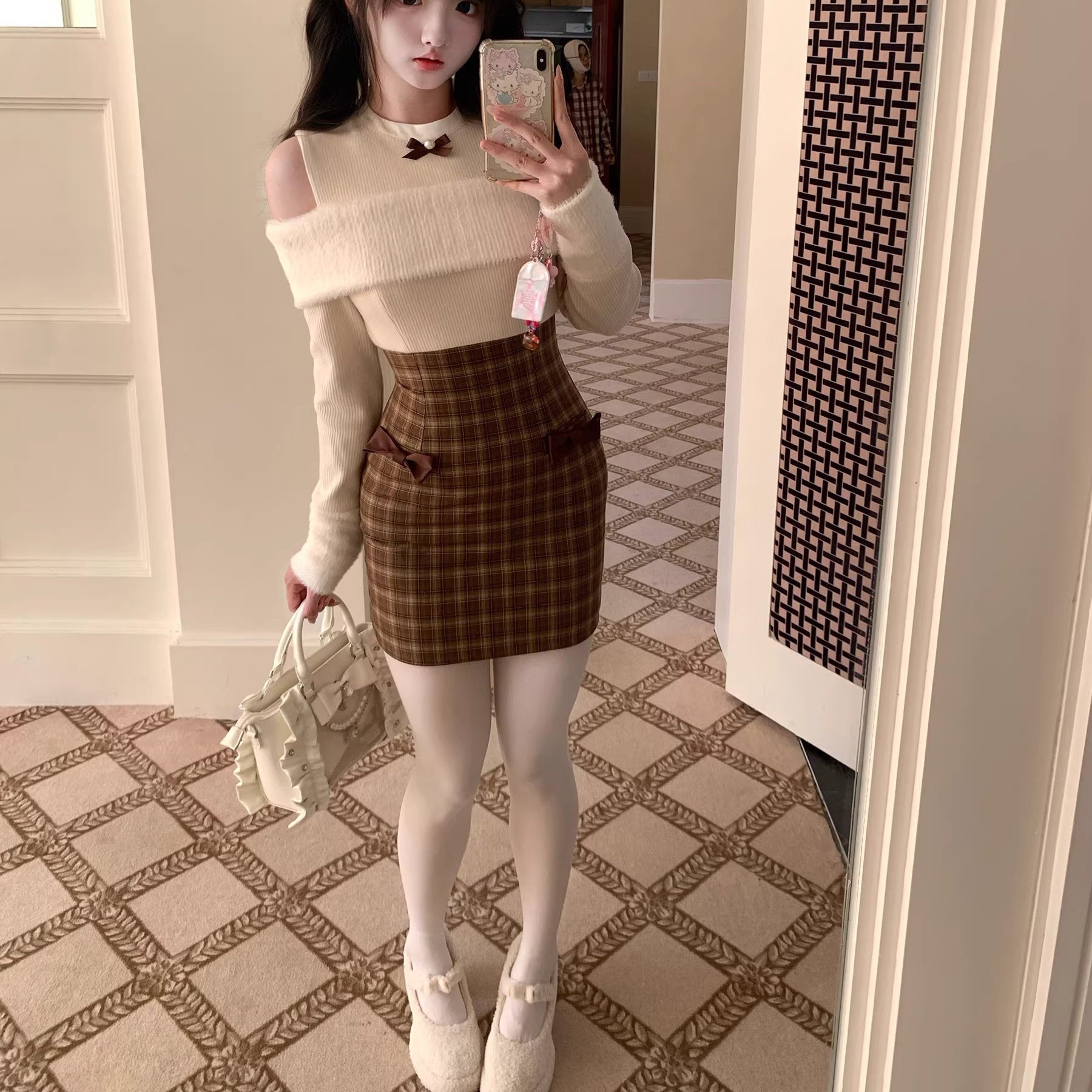 ふわりと心ほどける冬のファーチェックワンピース_R0447
