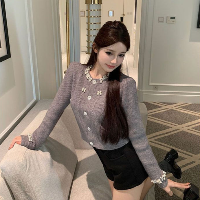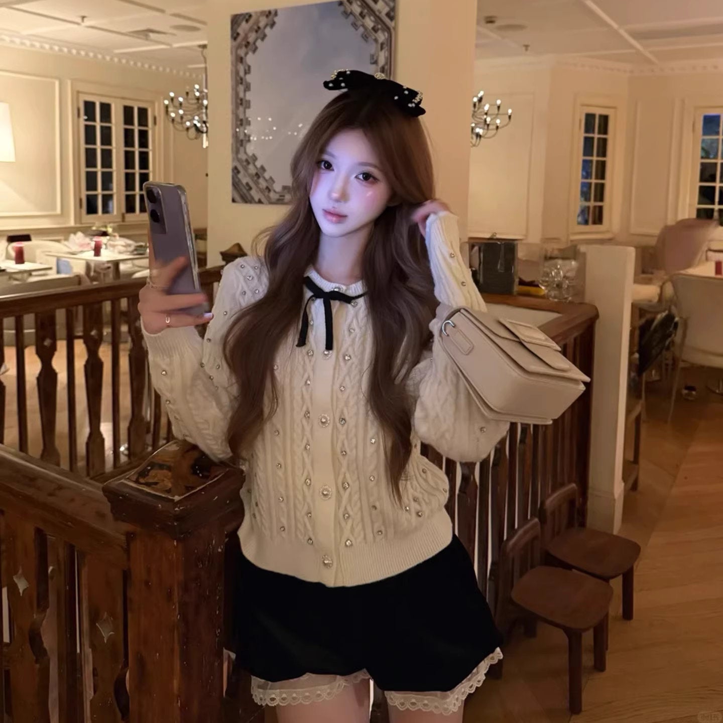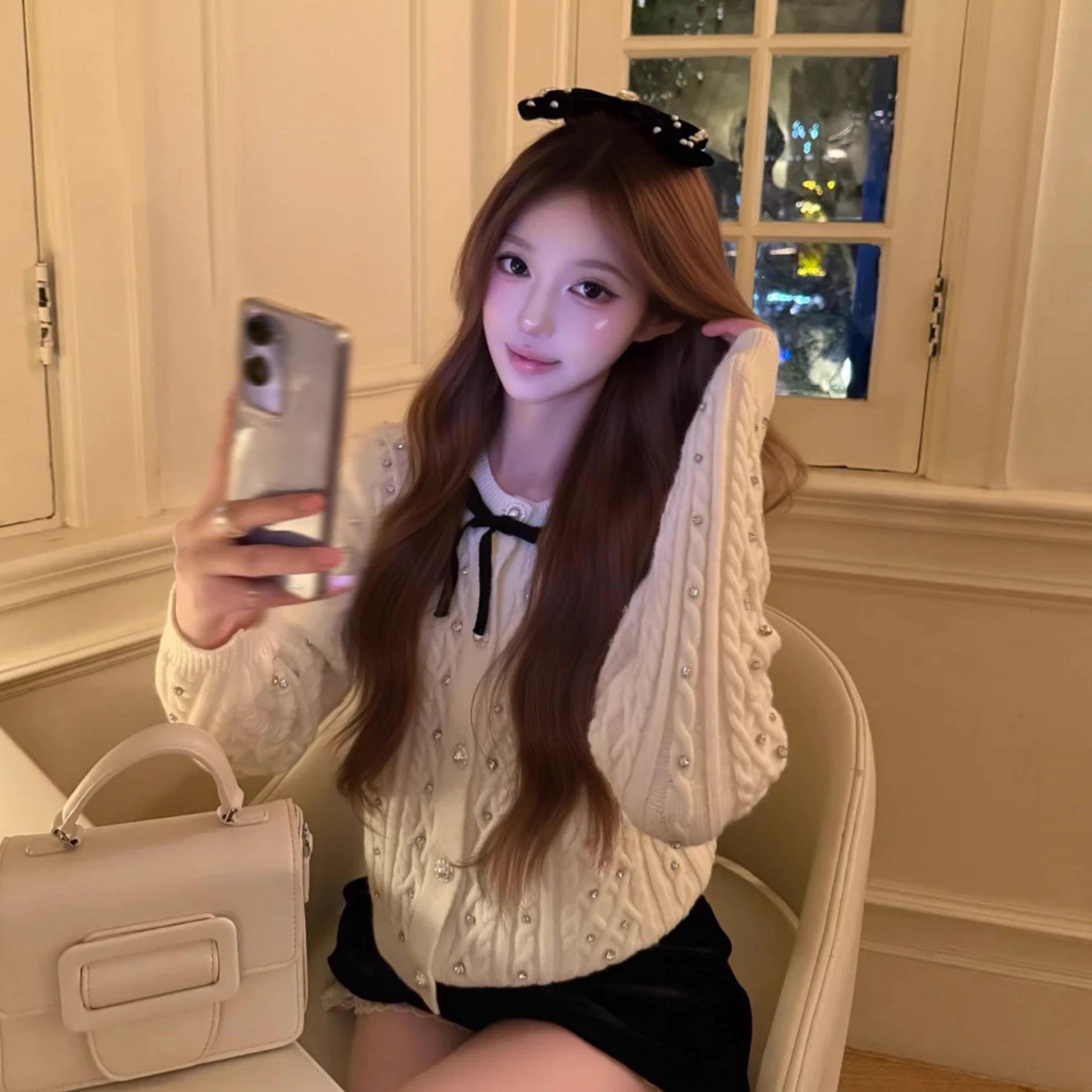 星空をまとった夜のバルコニーで恋を語るビジューニットカーディガン_R0392