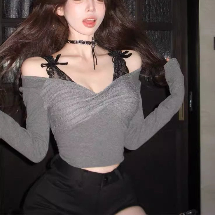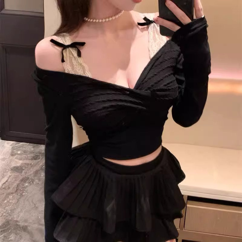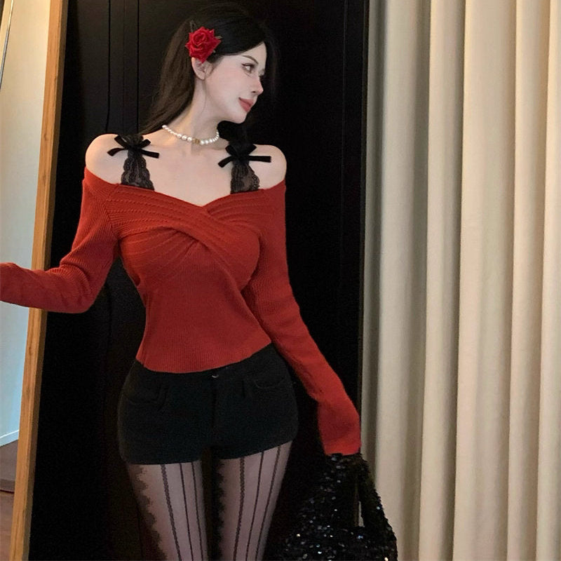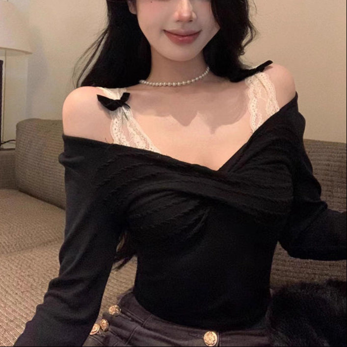 こっそり甘さを忍ばせた、夜のツイストオフショルトップス_R0308