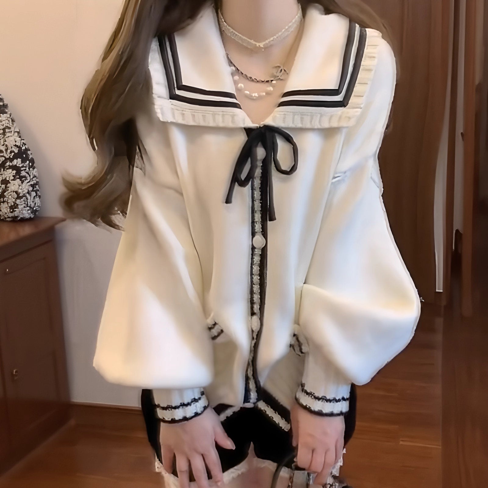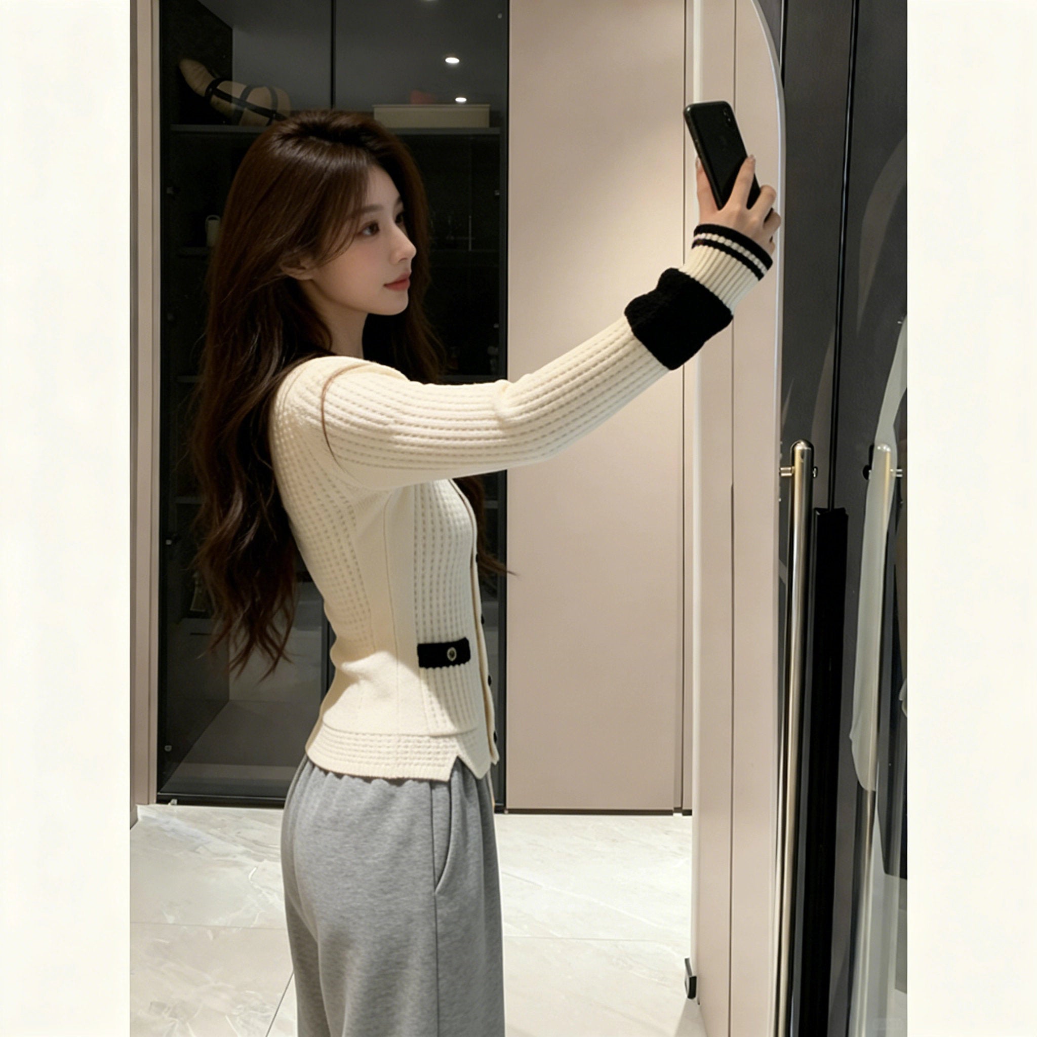 強がりな私を包む、金ボタンのクラシックニット_R0451