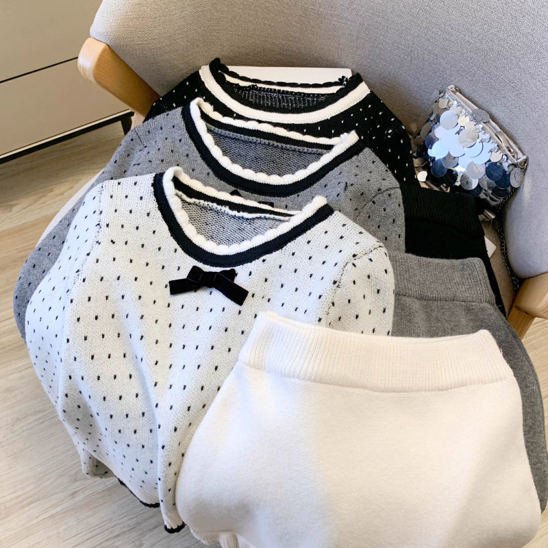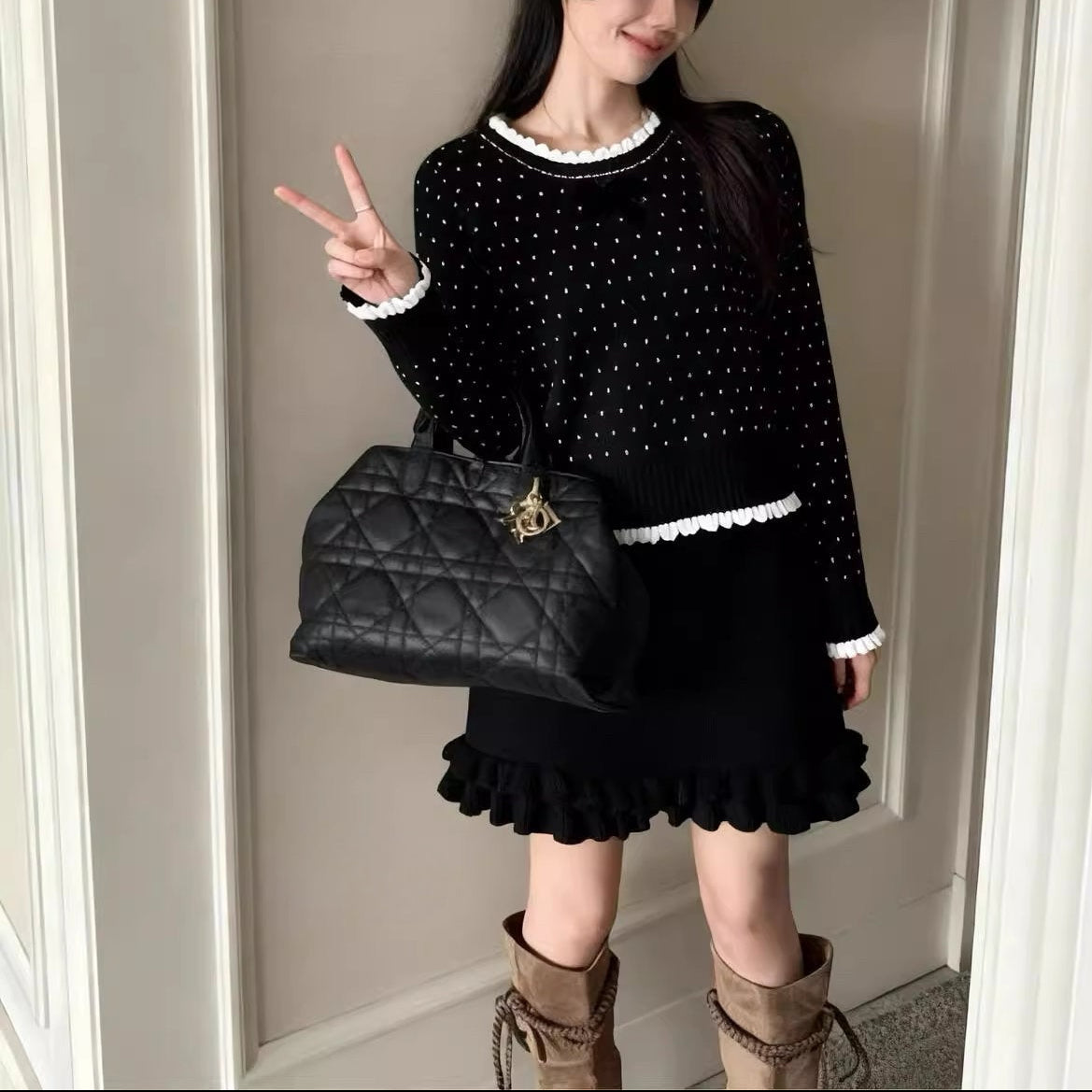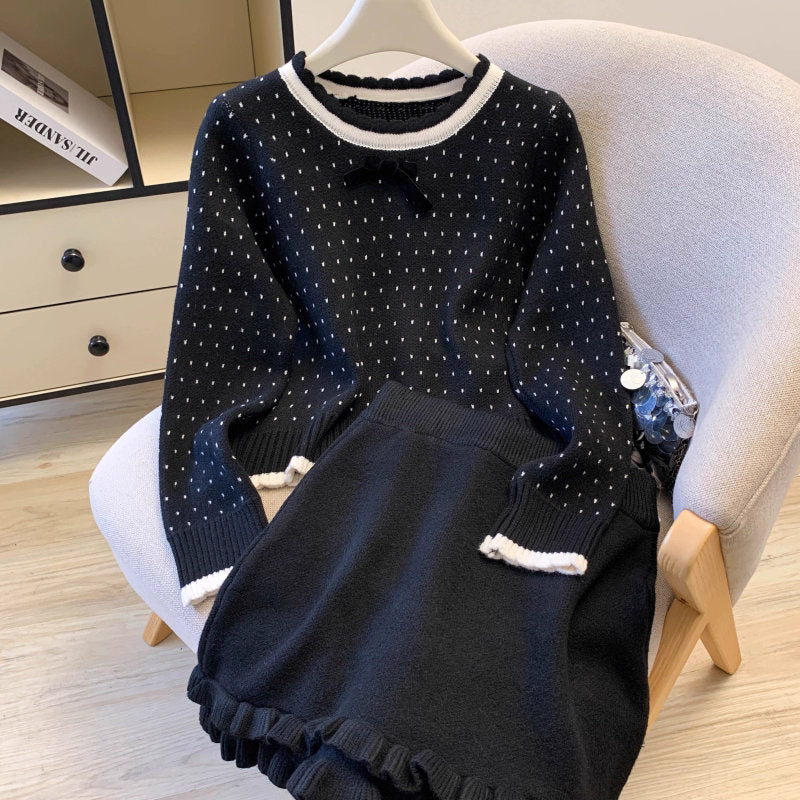 雨上がりのパリの街角を歩くドットリボンフリルセットアップ_R0435