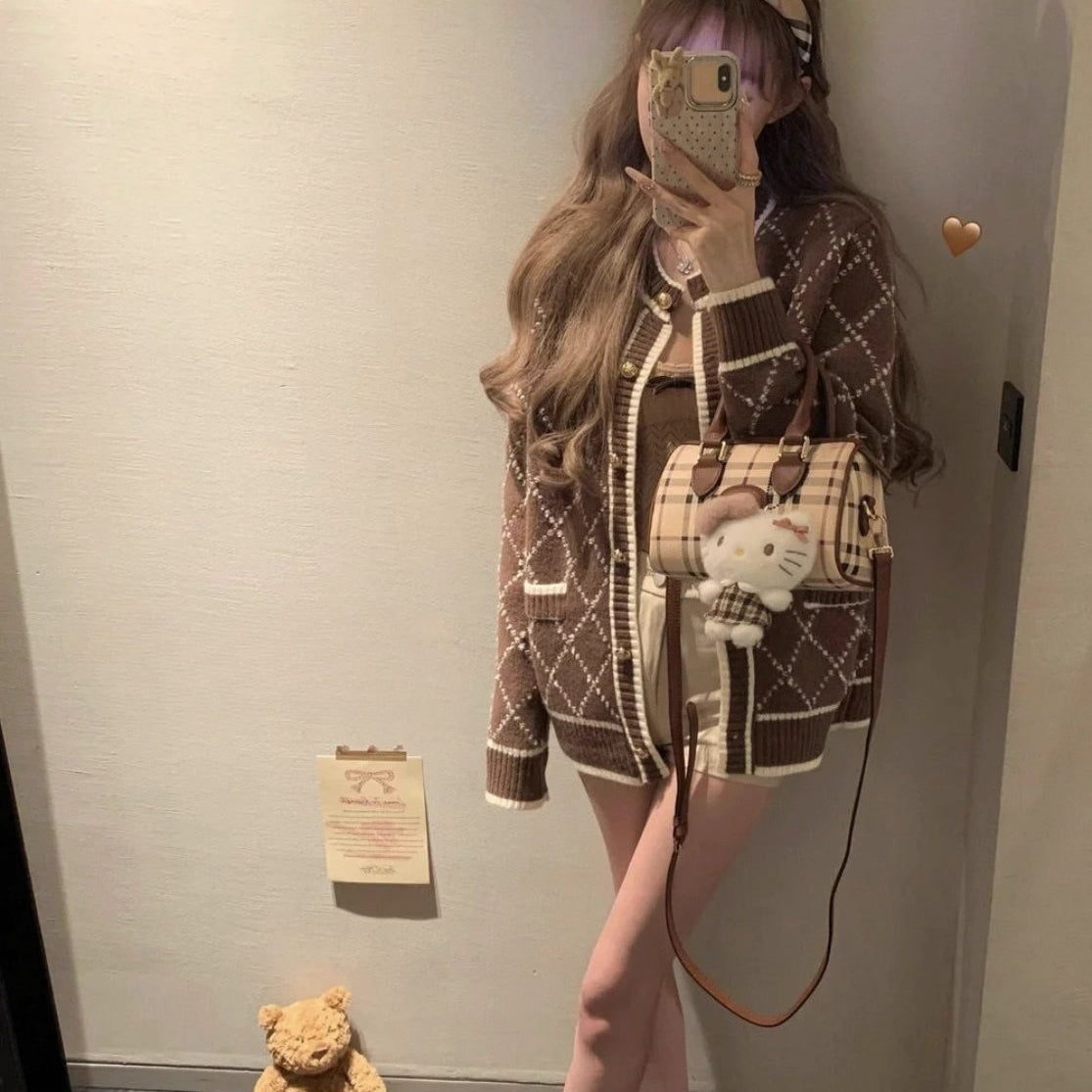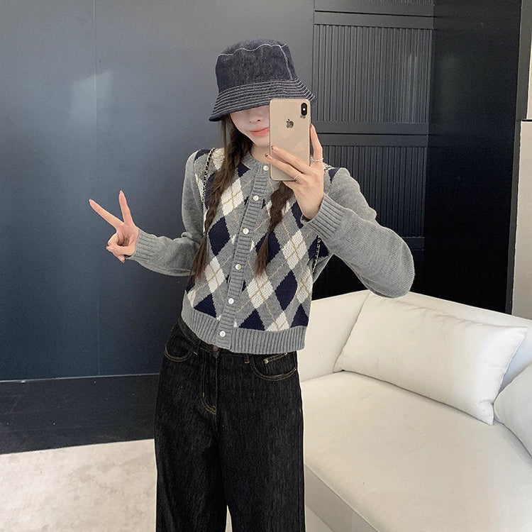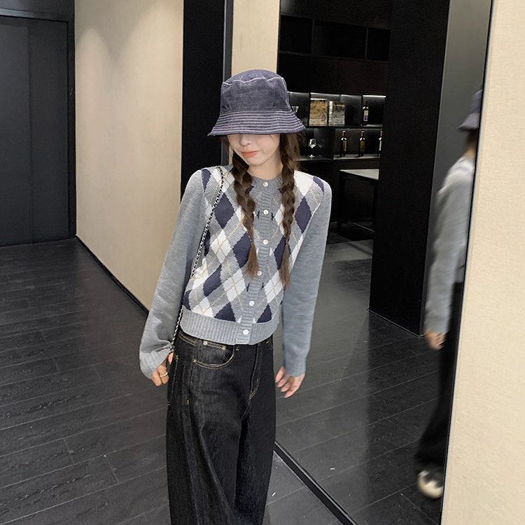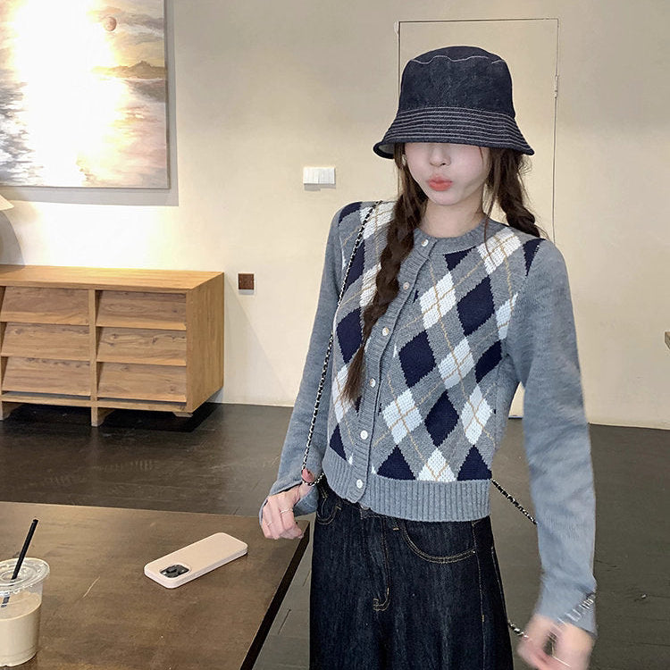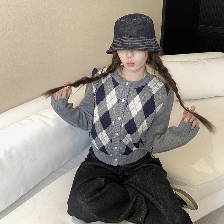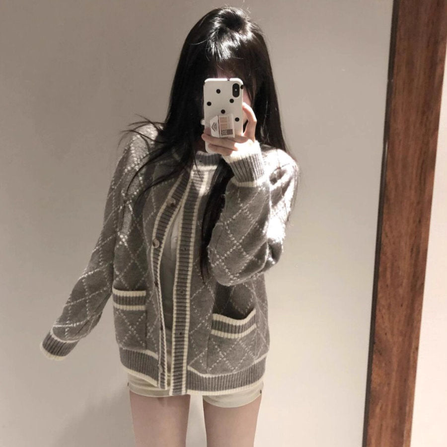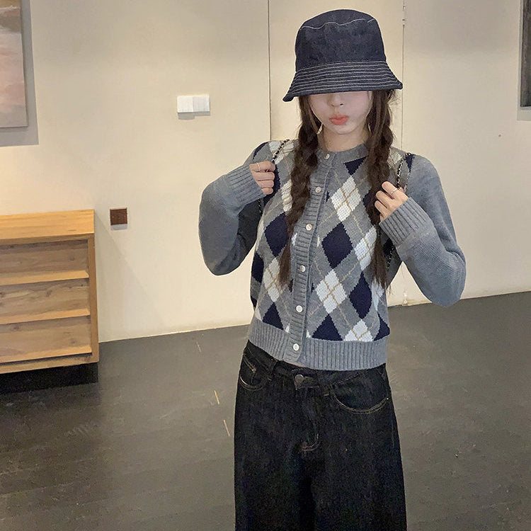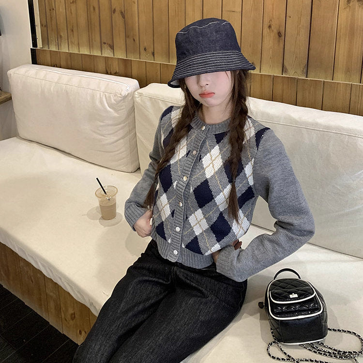 パンプキンラテを飲む秋の日のアーガイルカーディガン_R0379