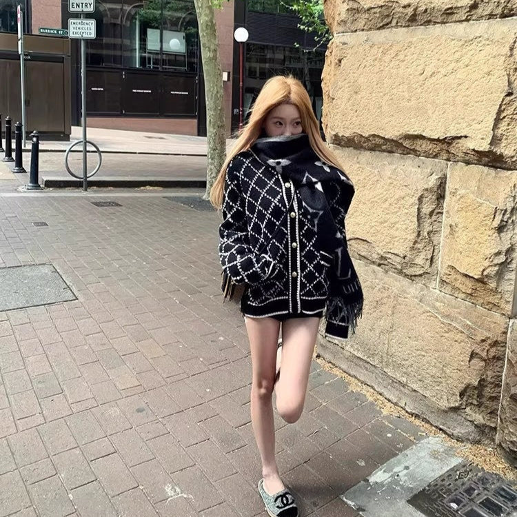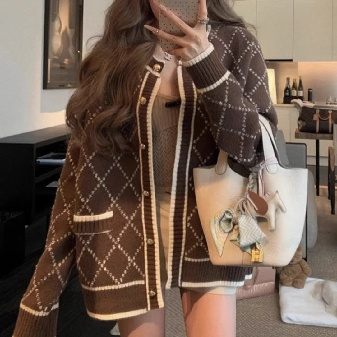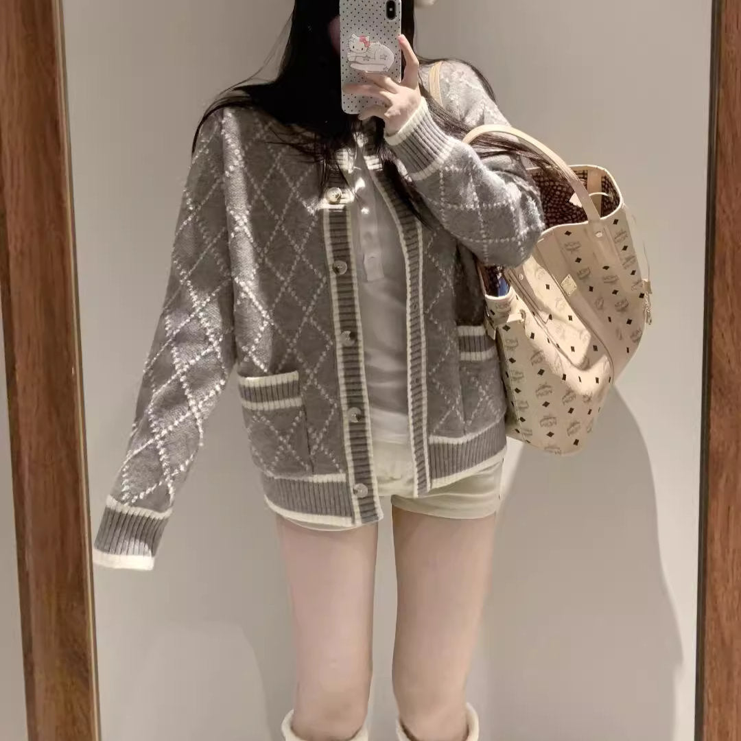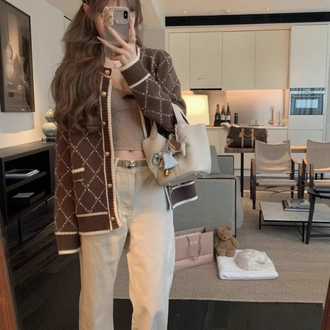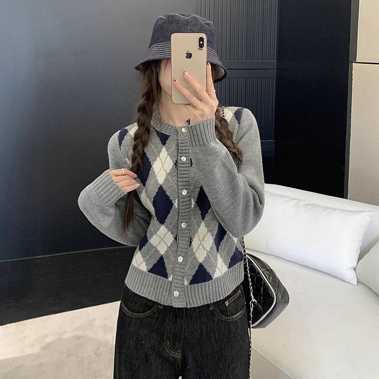 パンプキンラテを飲む秋の日のアーガイルカーディガン_R0379