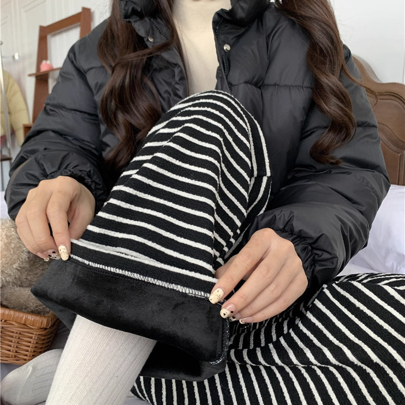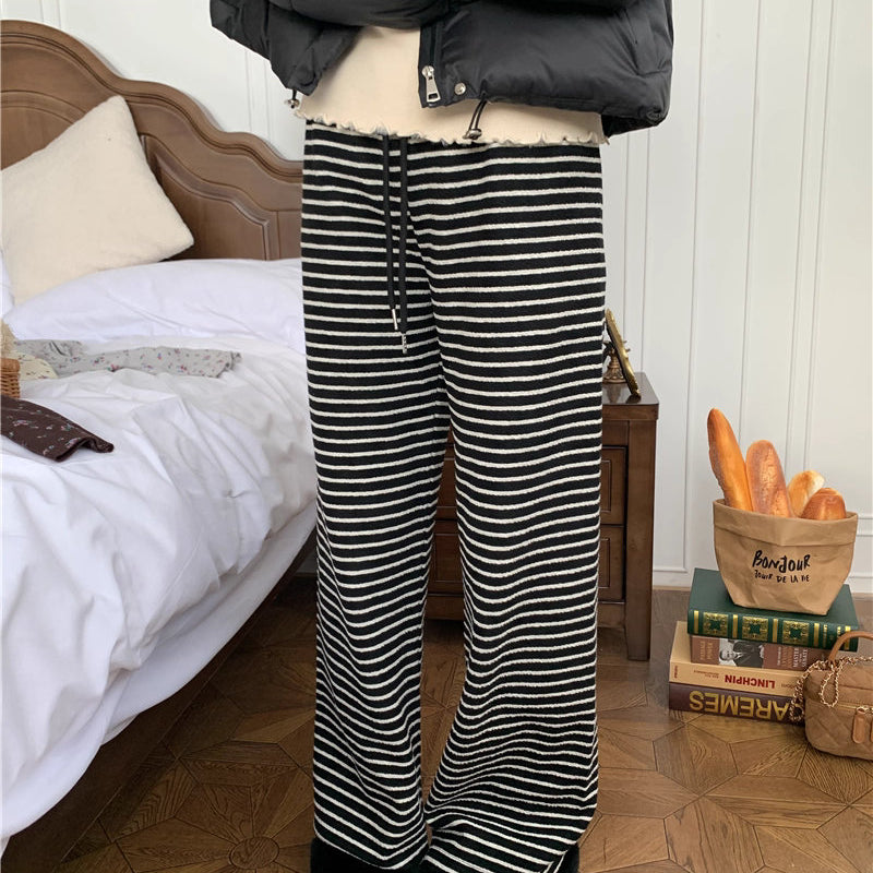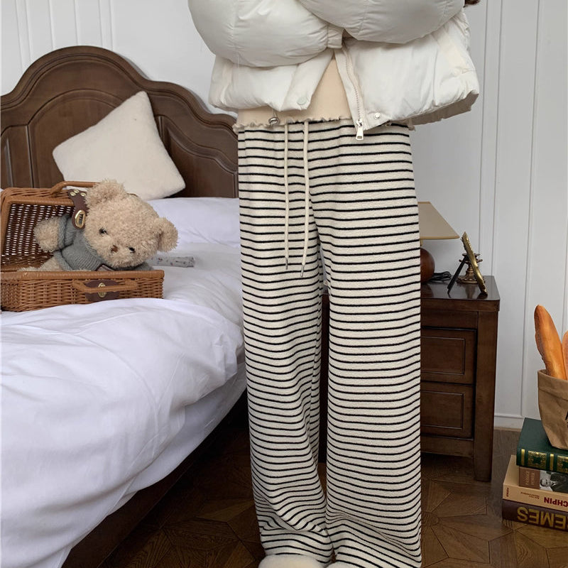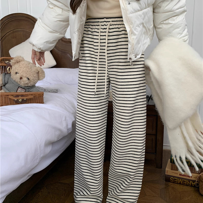 あたたかい息が白く溶ける朝の裏起毛ボーダーパンツ_R0401