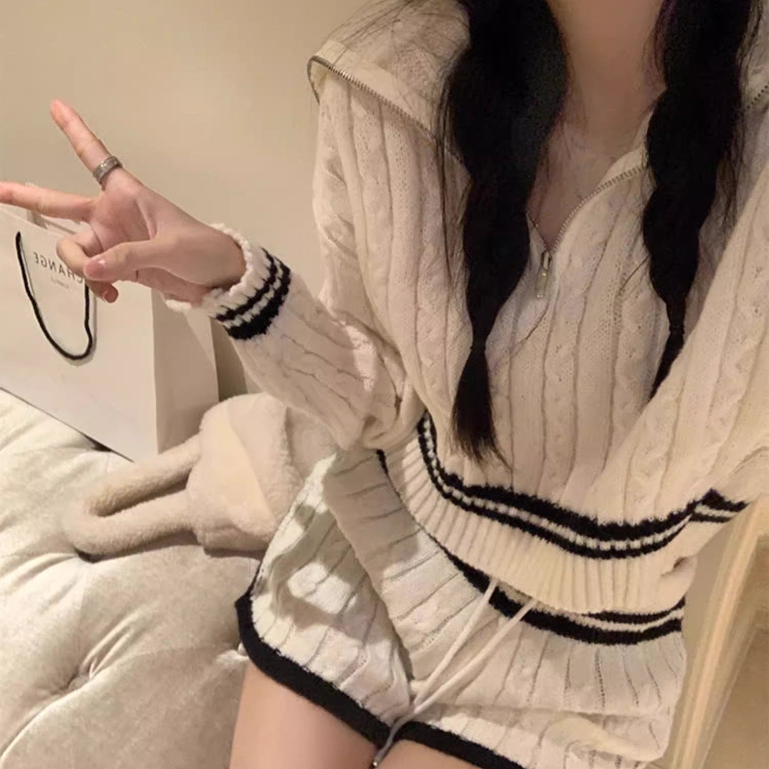 私の休日を、ふわりと包むケーブルニットアップ_R0450