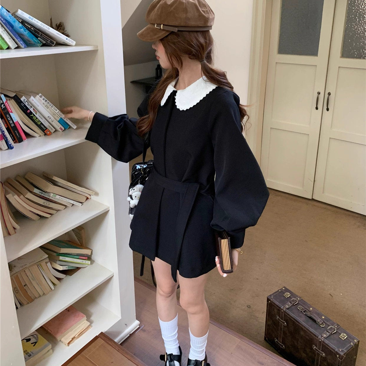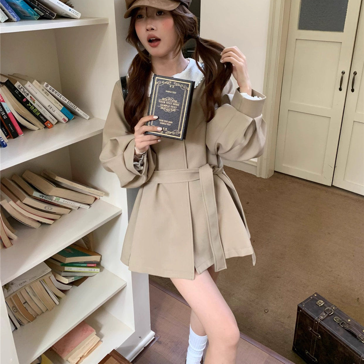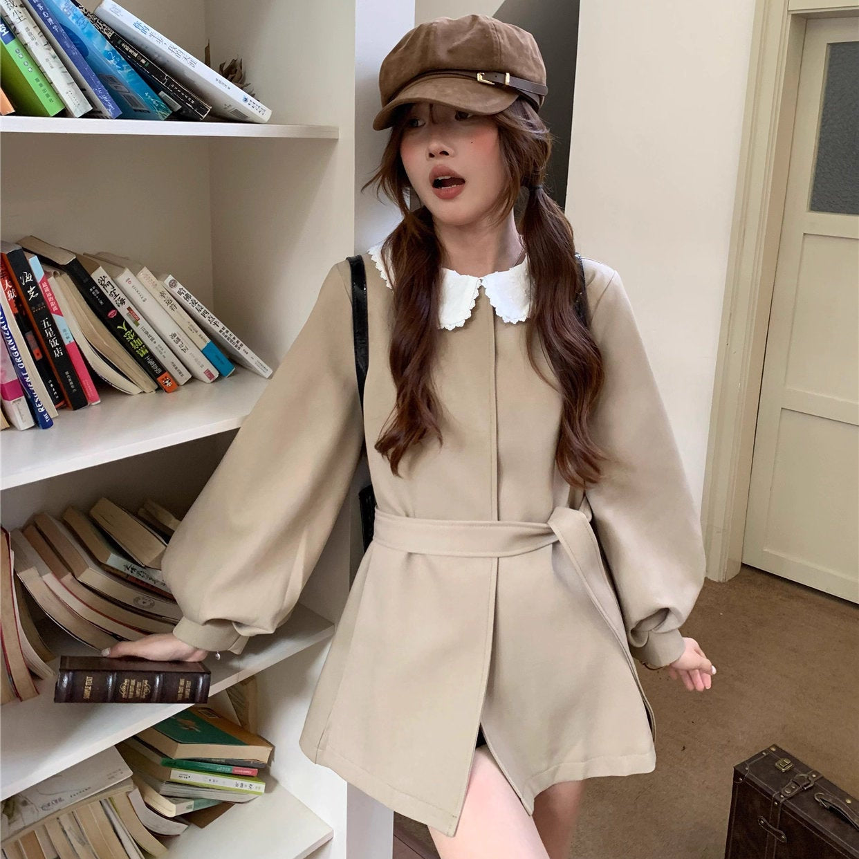 図書館の片隅でページをめくるあの子のベルト付きジャケット_R0407