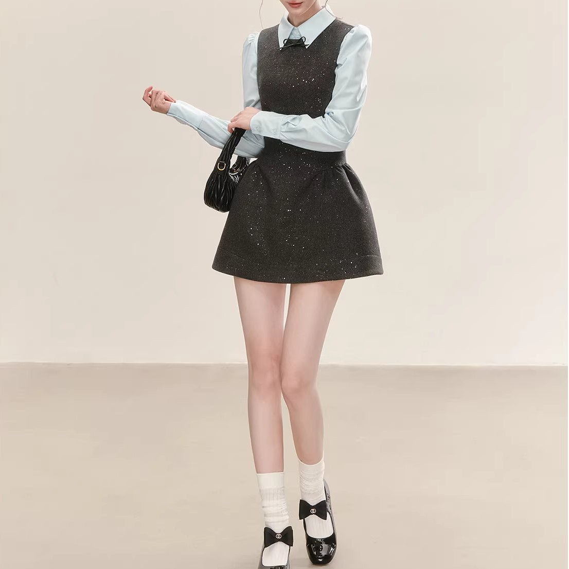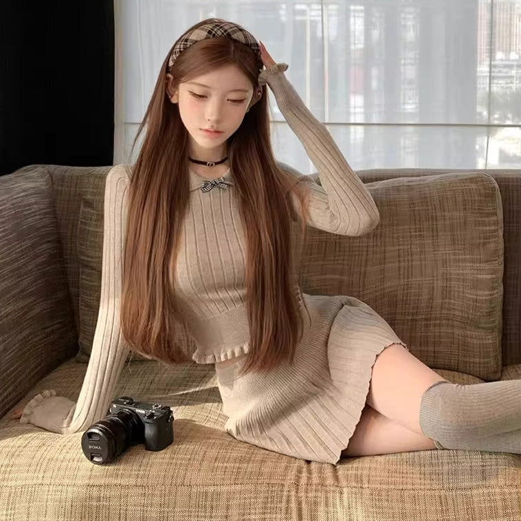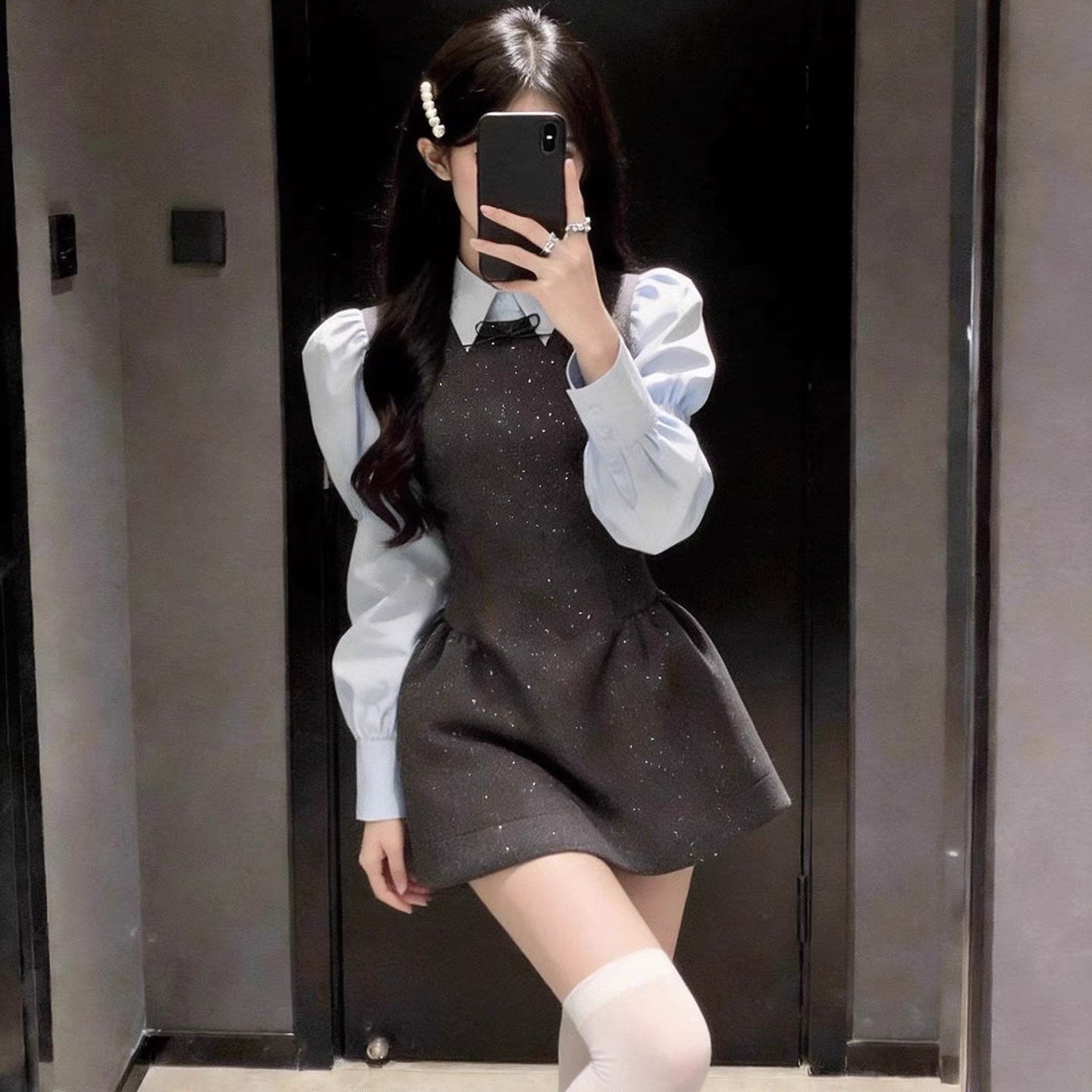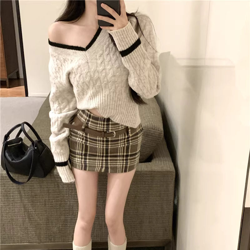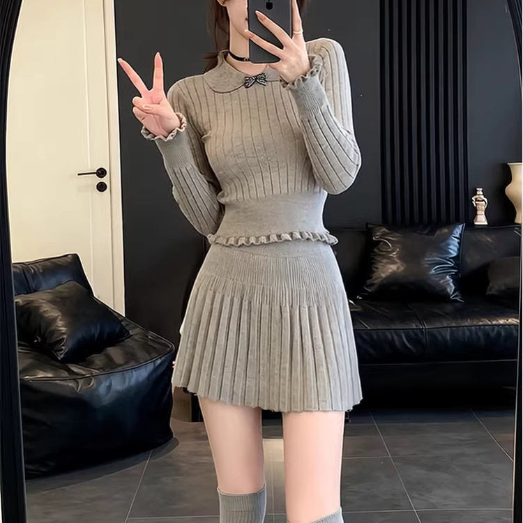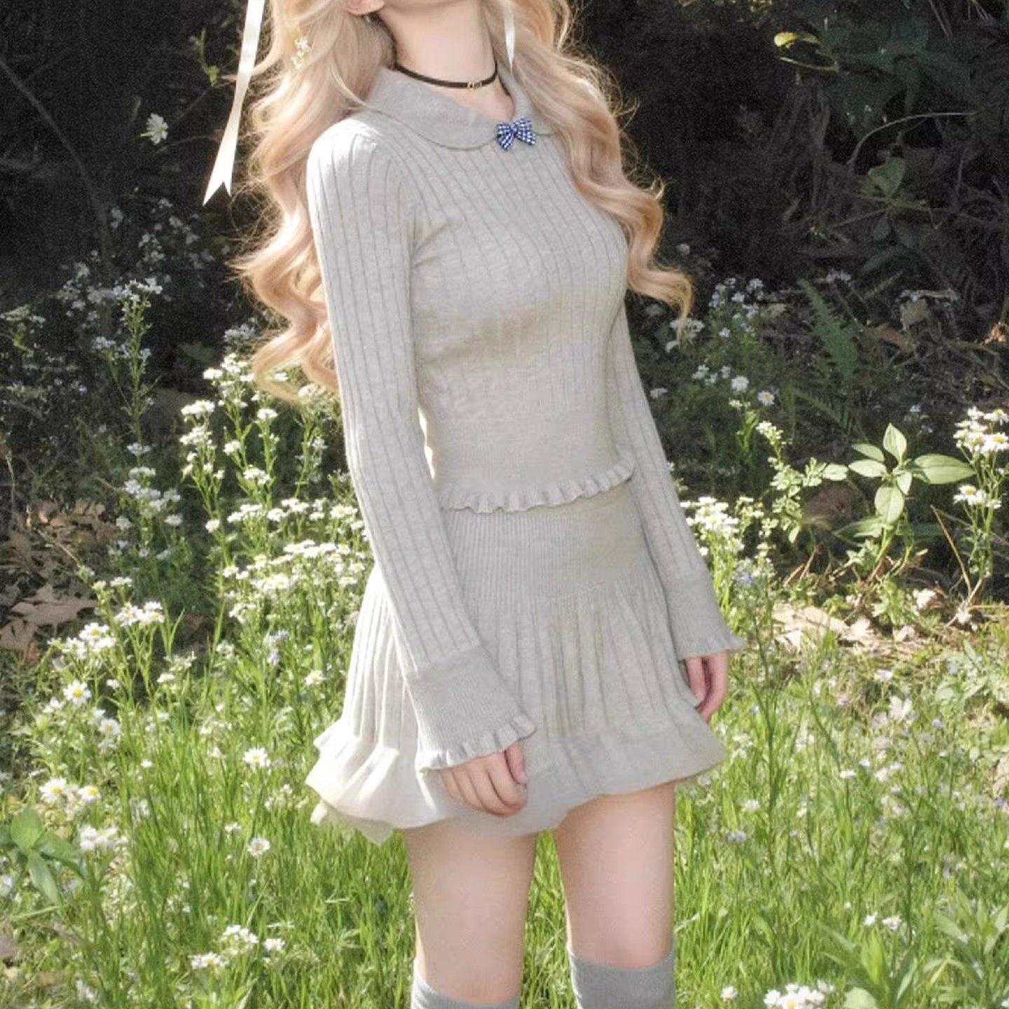 【即納アイテム】白い襟を揺らして恋を待つスクエアニットトップス_R0416