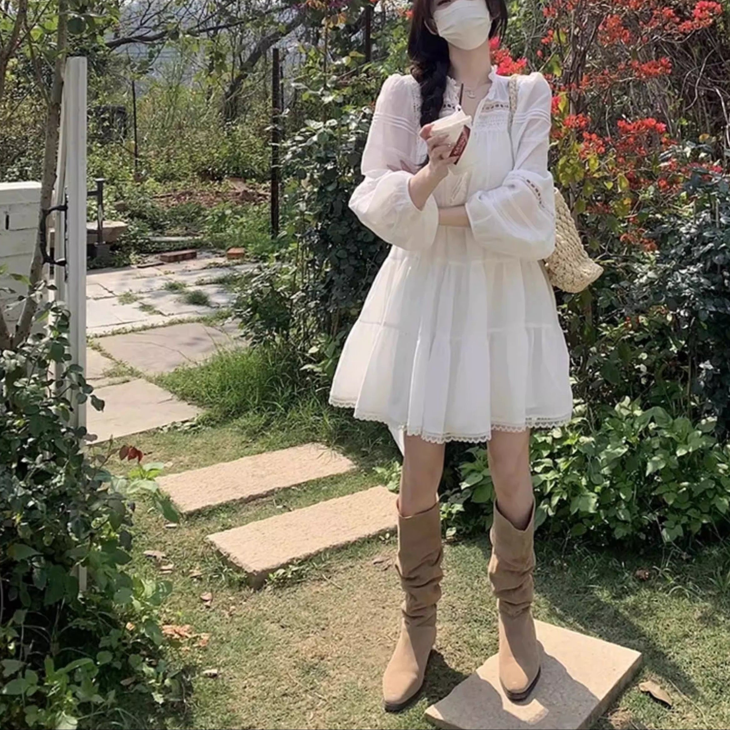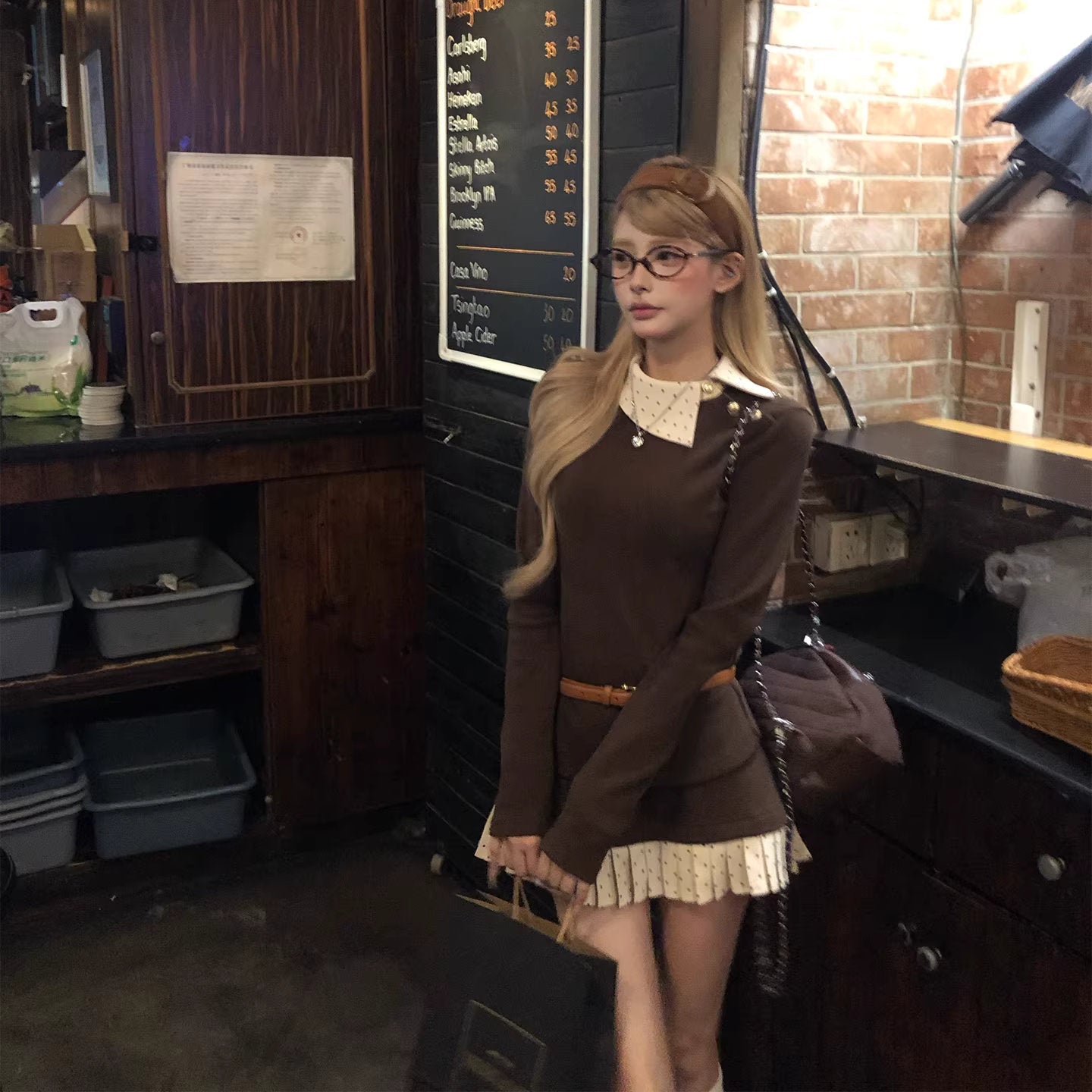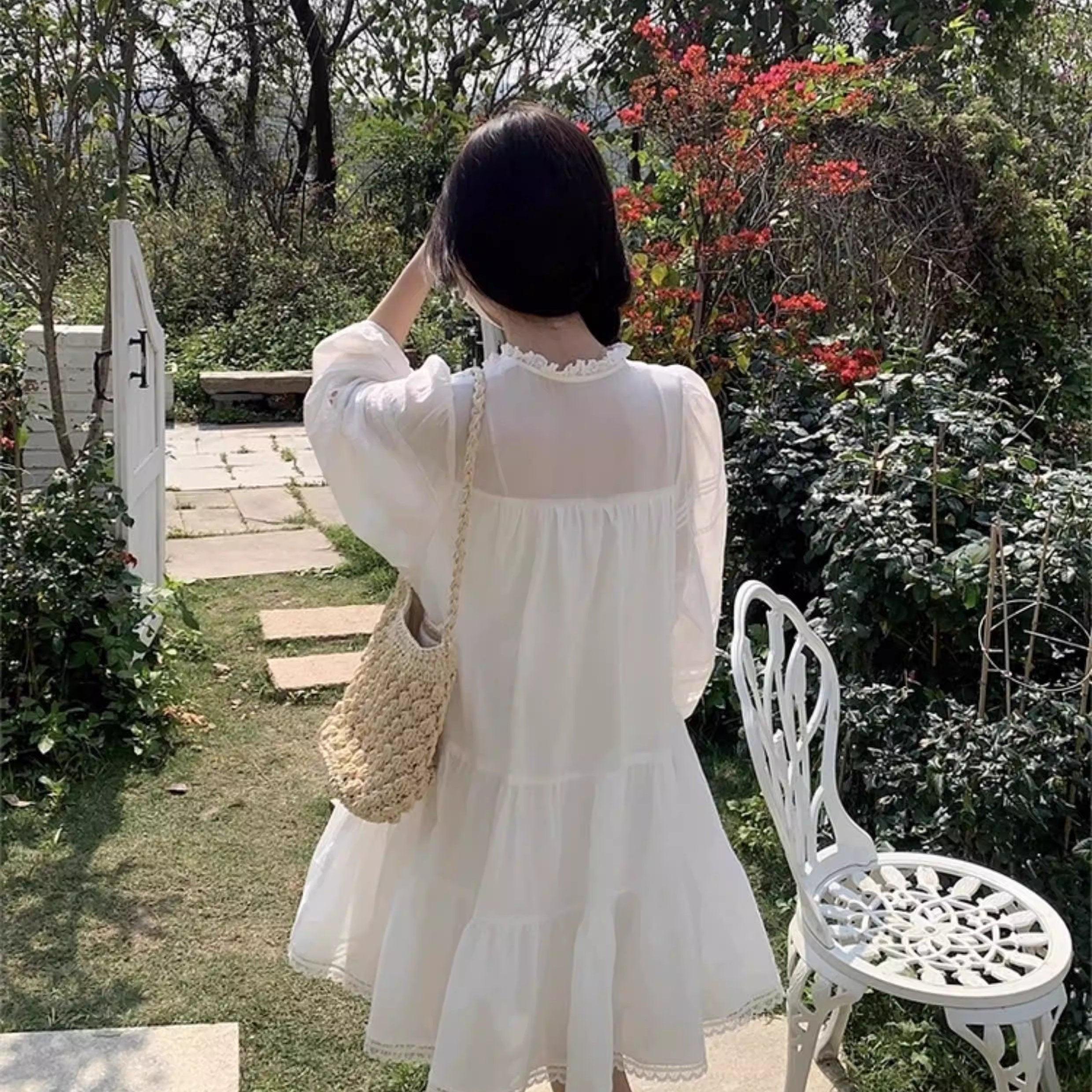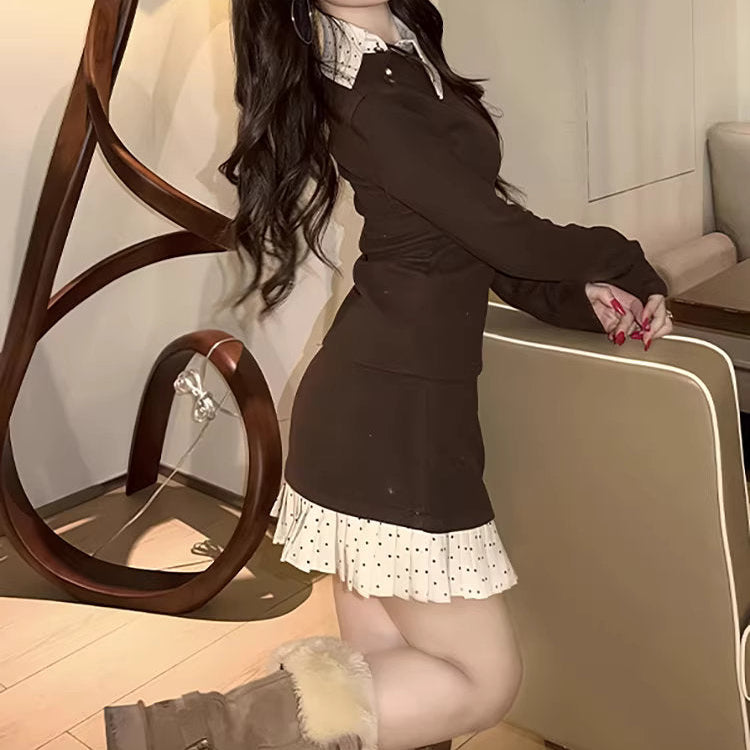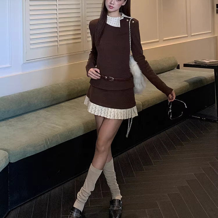 【即納アイテム】白い襟を揺らして恋を待つスクエアニットトップス_R0416