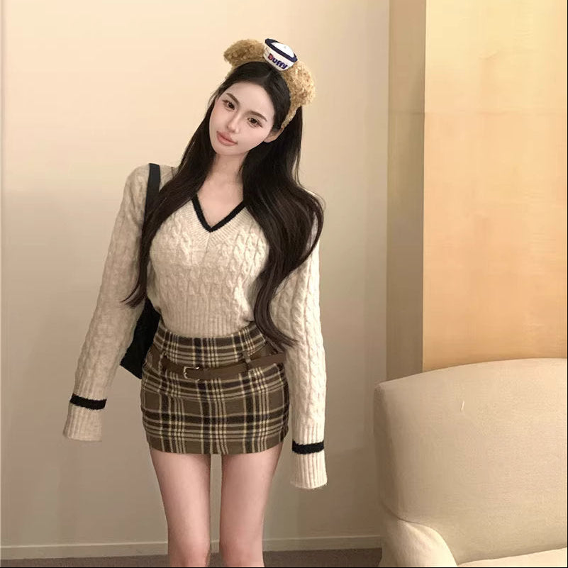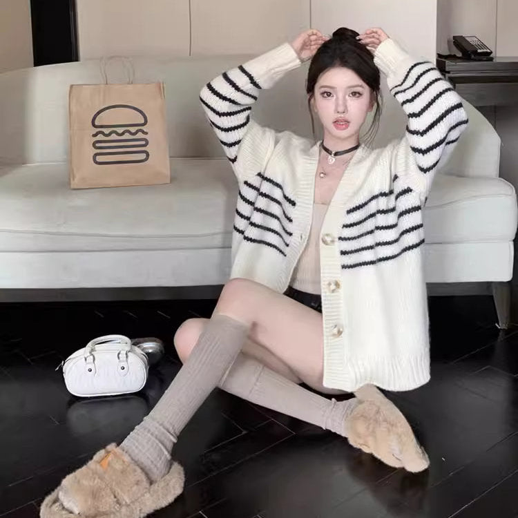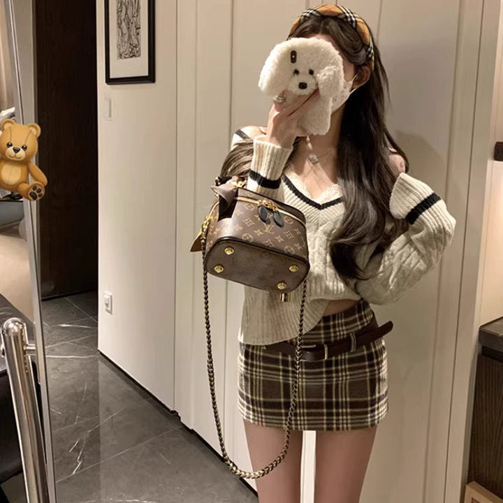 【即納アイテム】パンプキンラテを飲む秋の日のアーガイルカーディガン_R0379