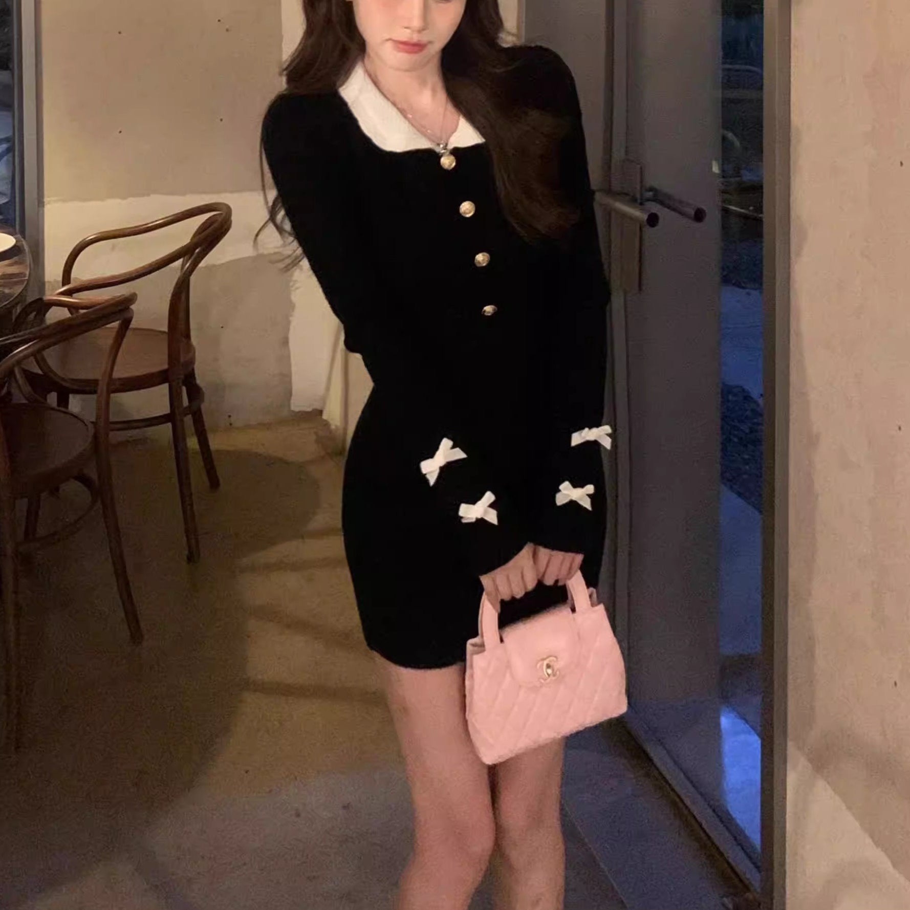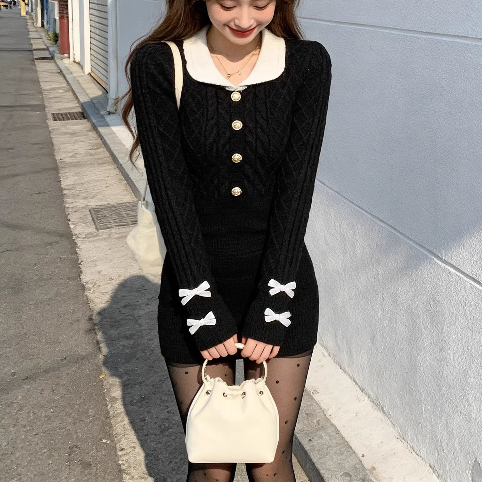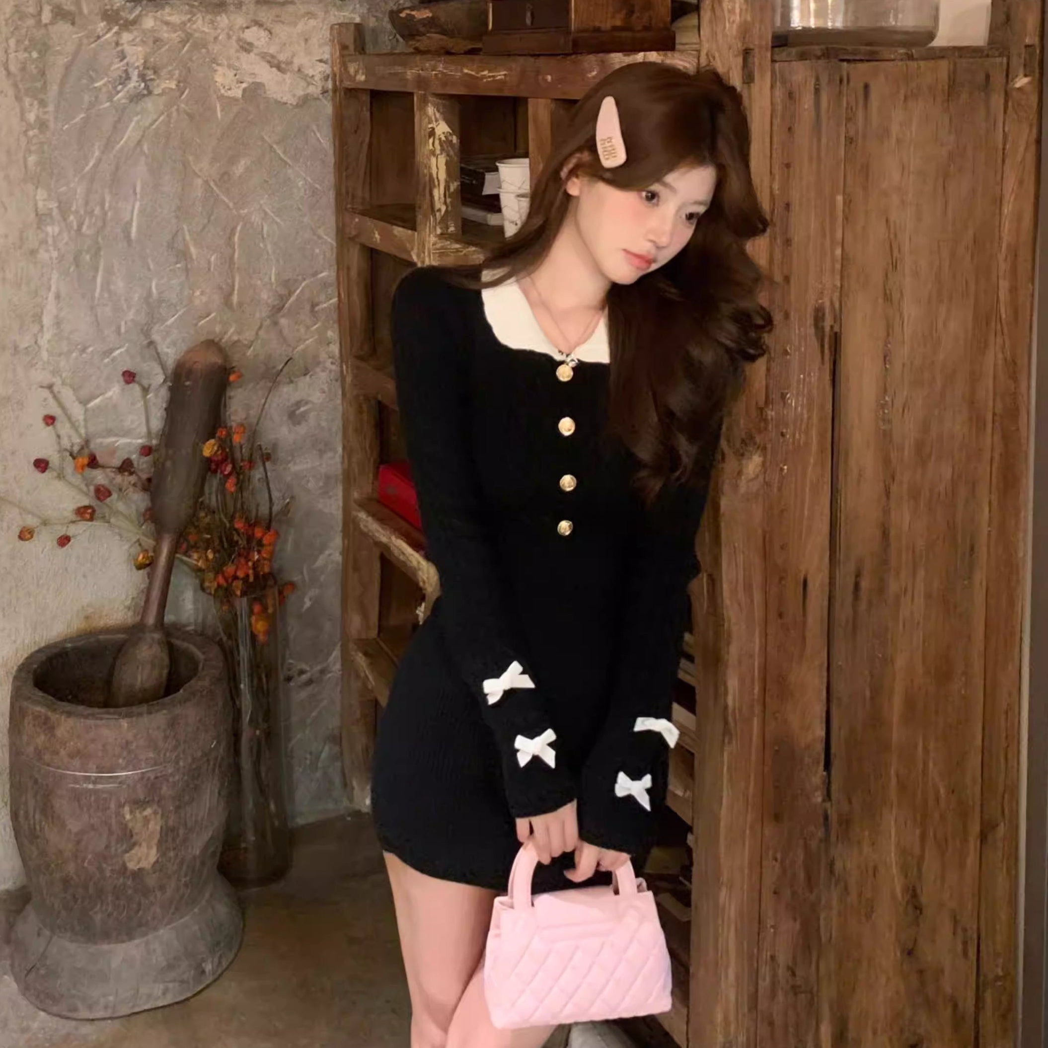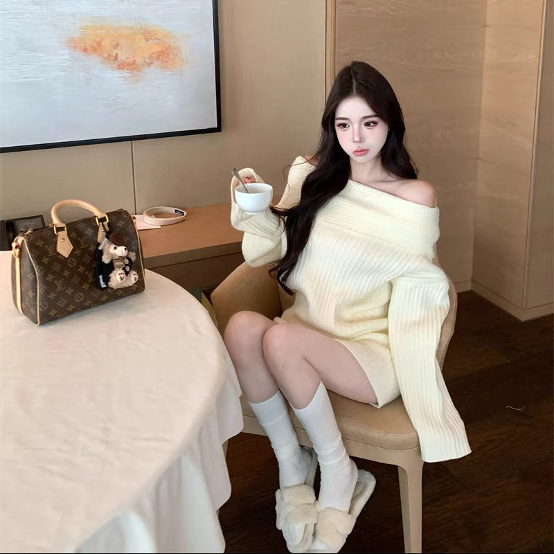 可愛くなりたい夜の、肩リボンニットワンピース_R0462