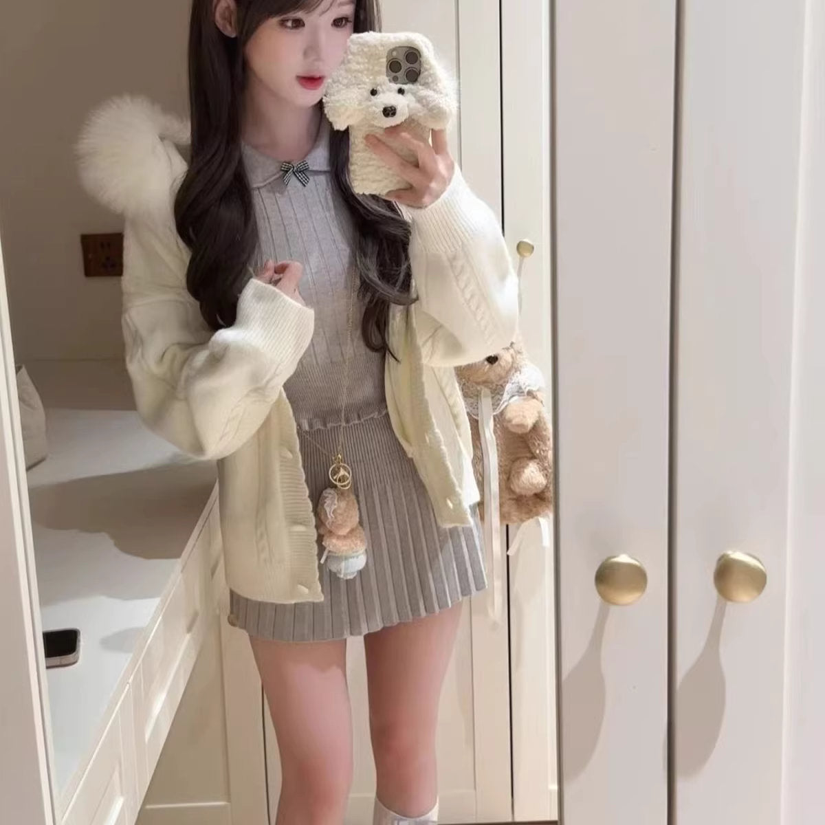 パリのホテルで目覚めた朝の2wayファーケープニット_R0463