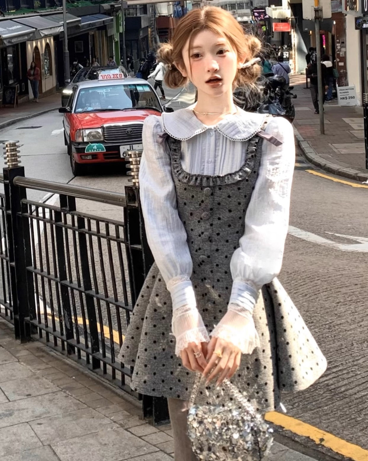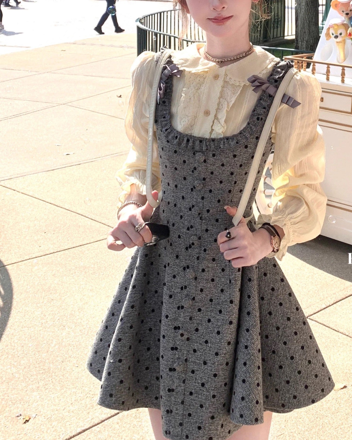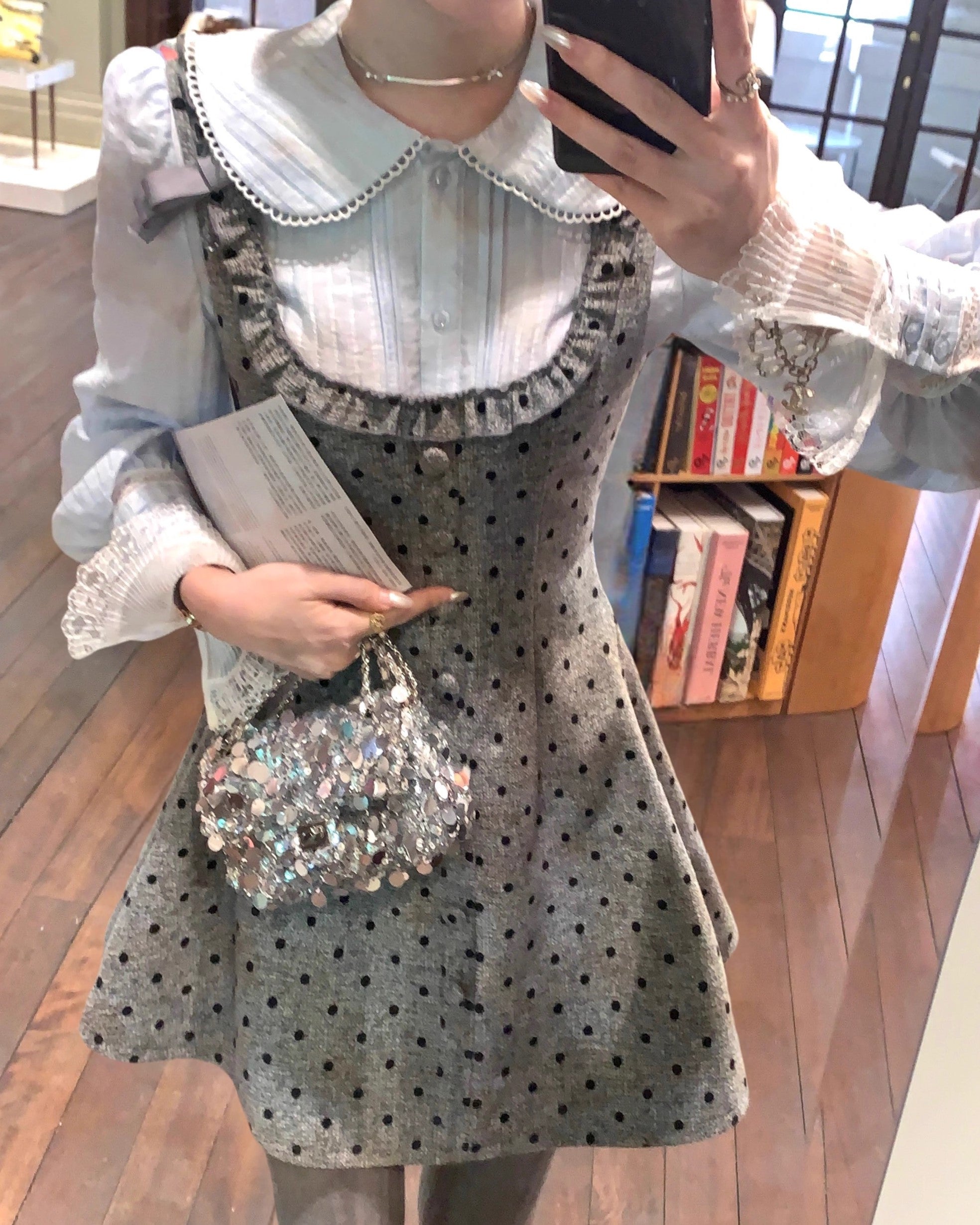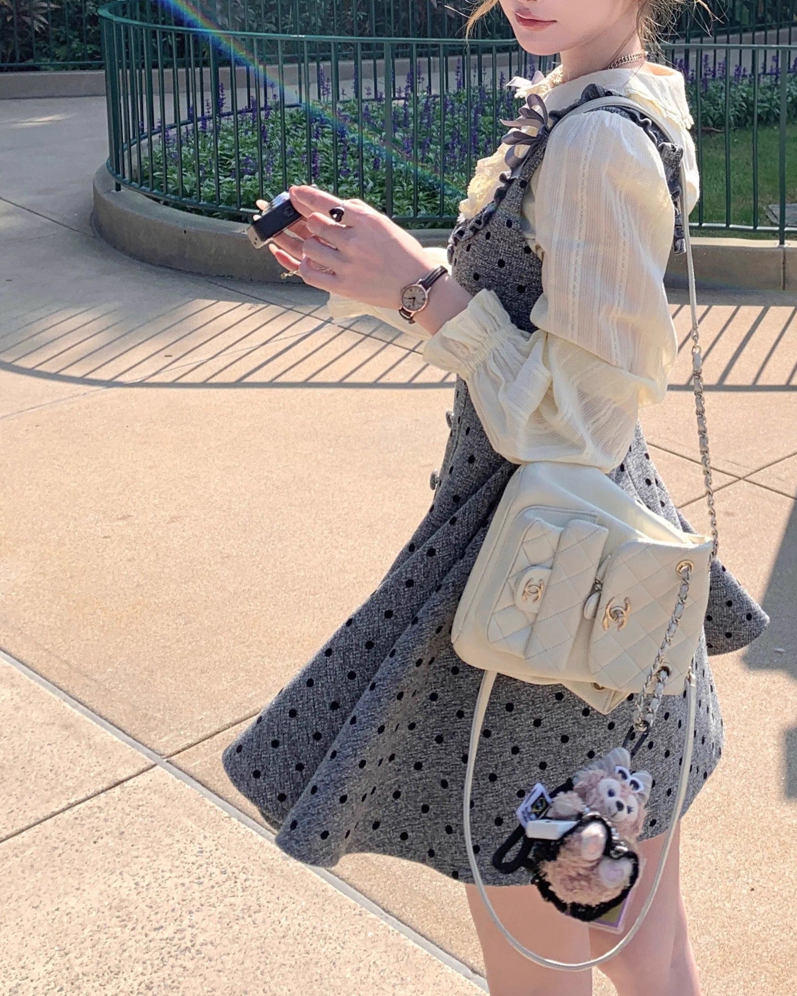 雨上がりのパリの街角を歩くドットリボンフリルセットアップ_R0435