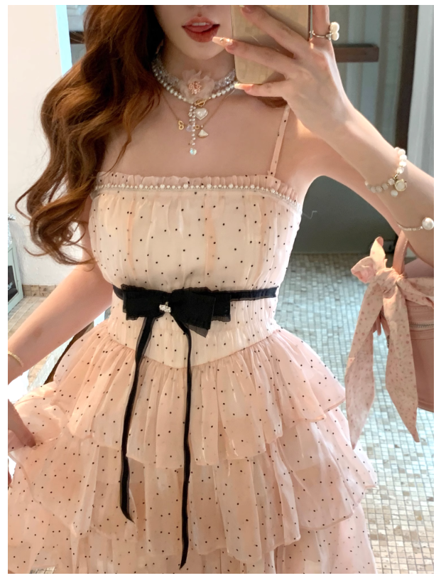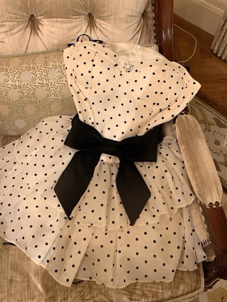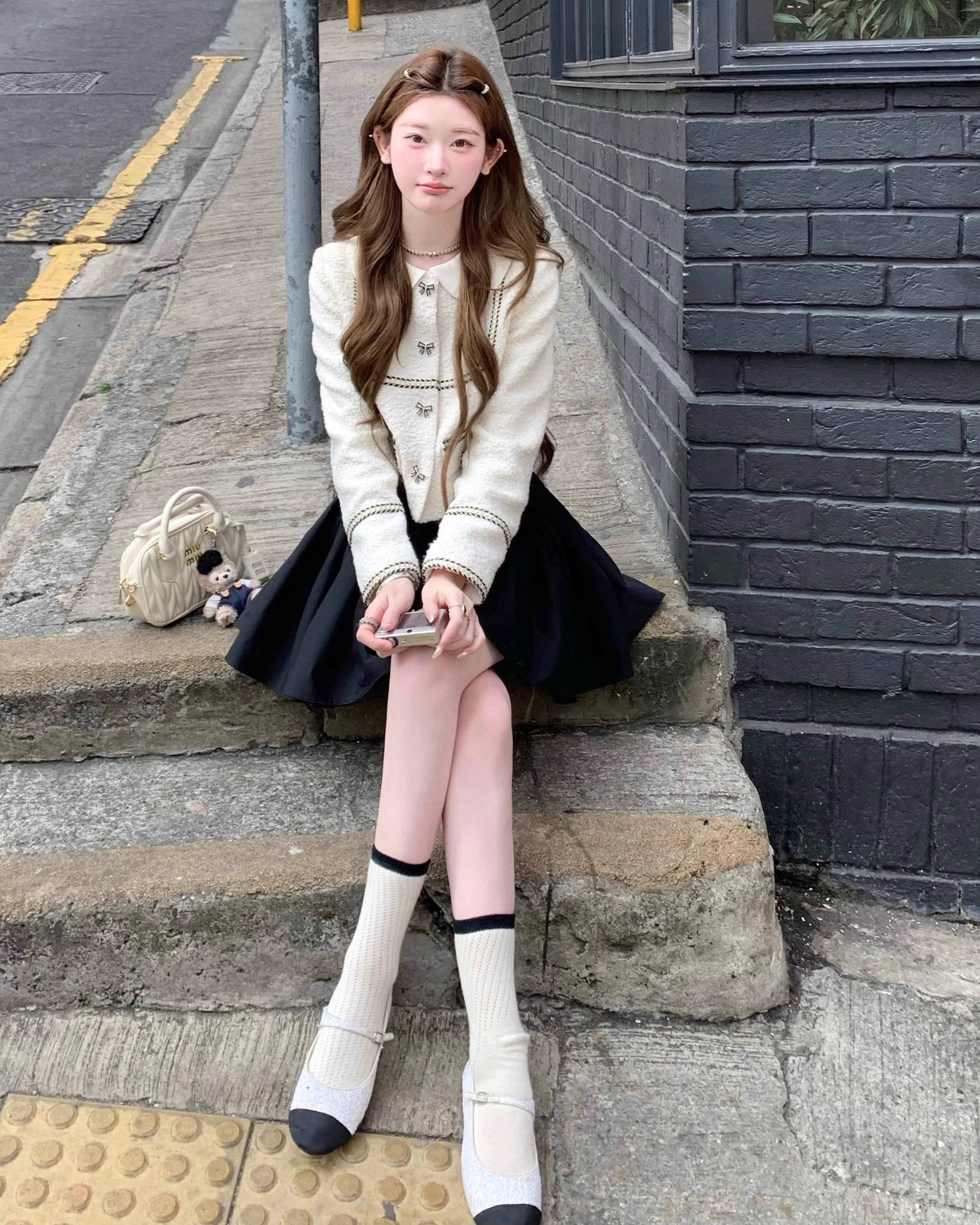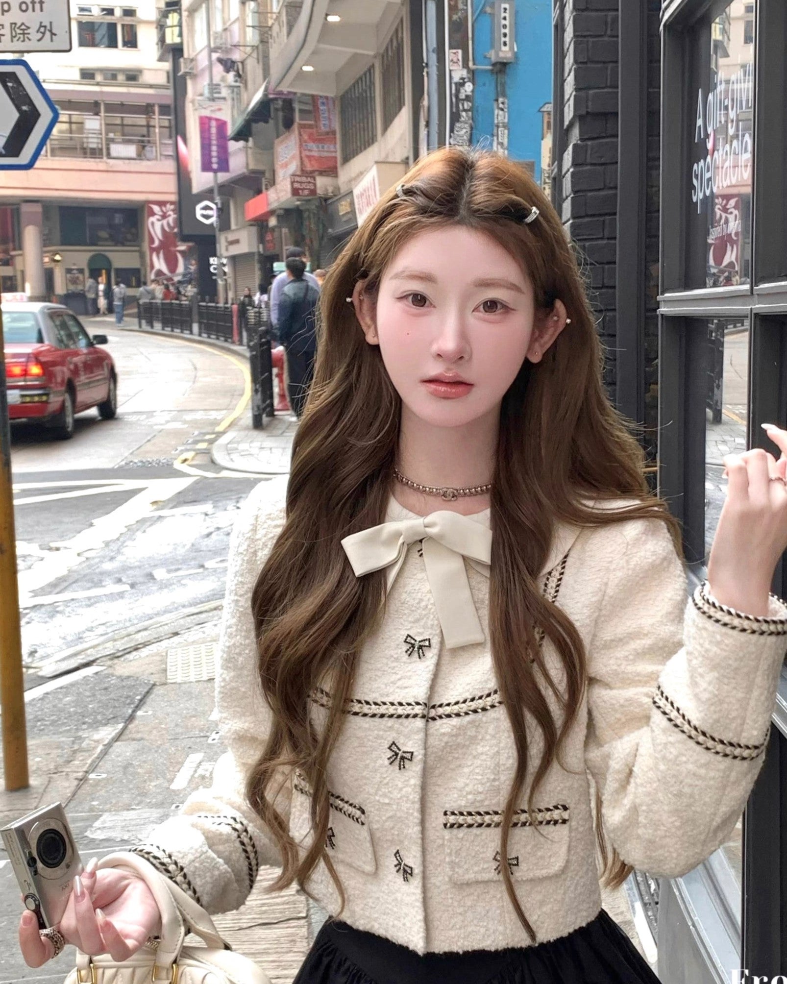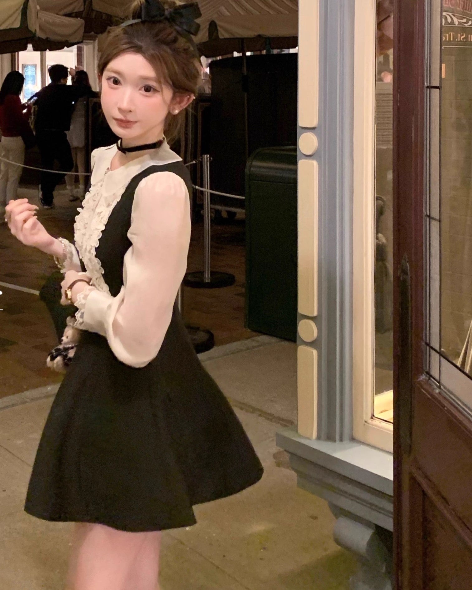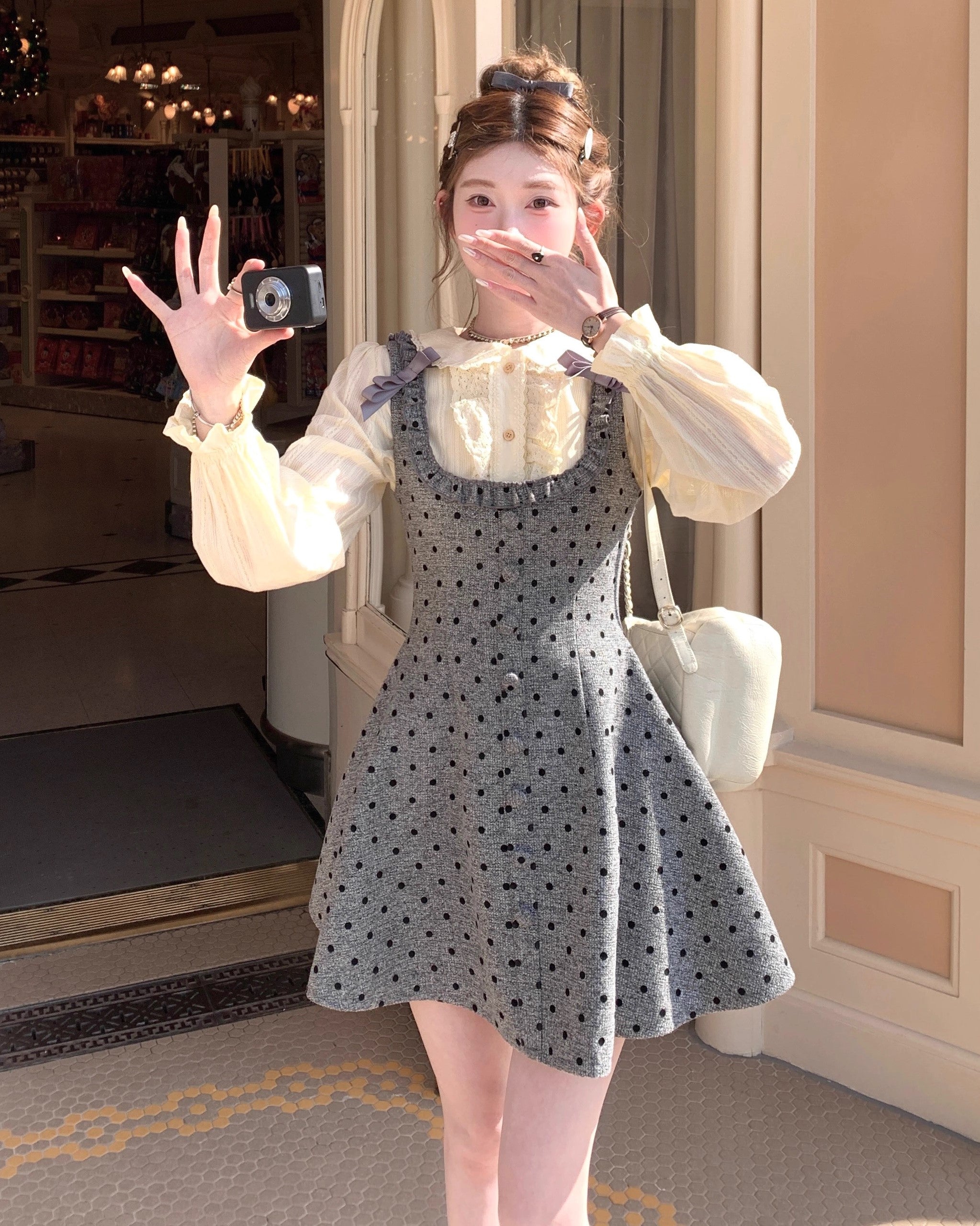 雨上がりのパリの街角を歩くドットリボンフリルセットアップ_R0435