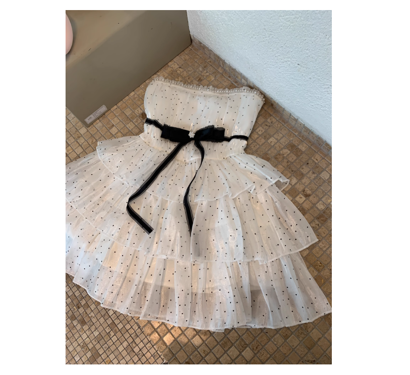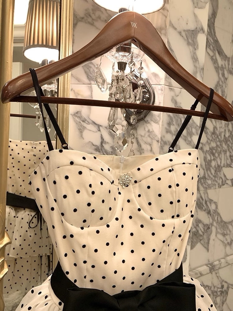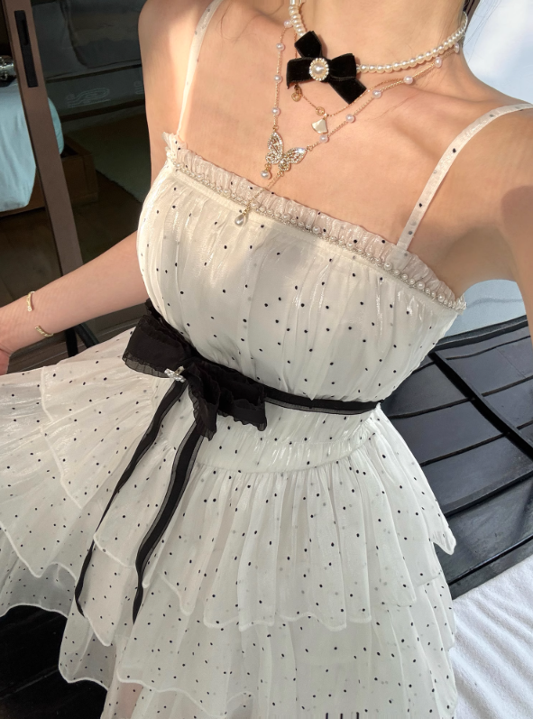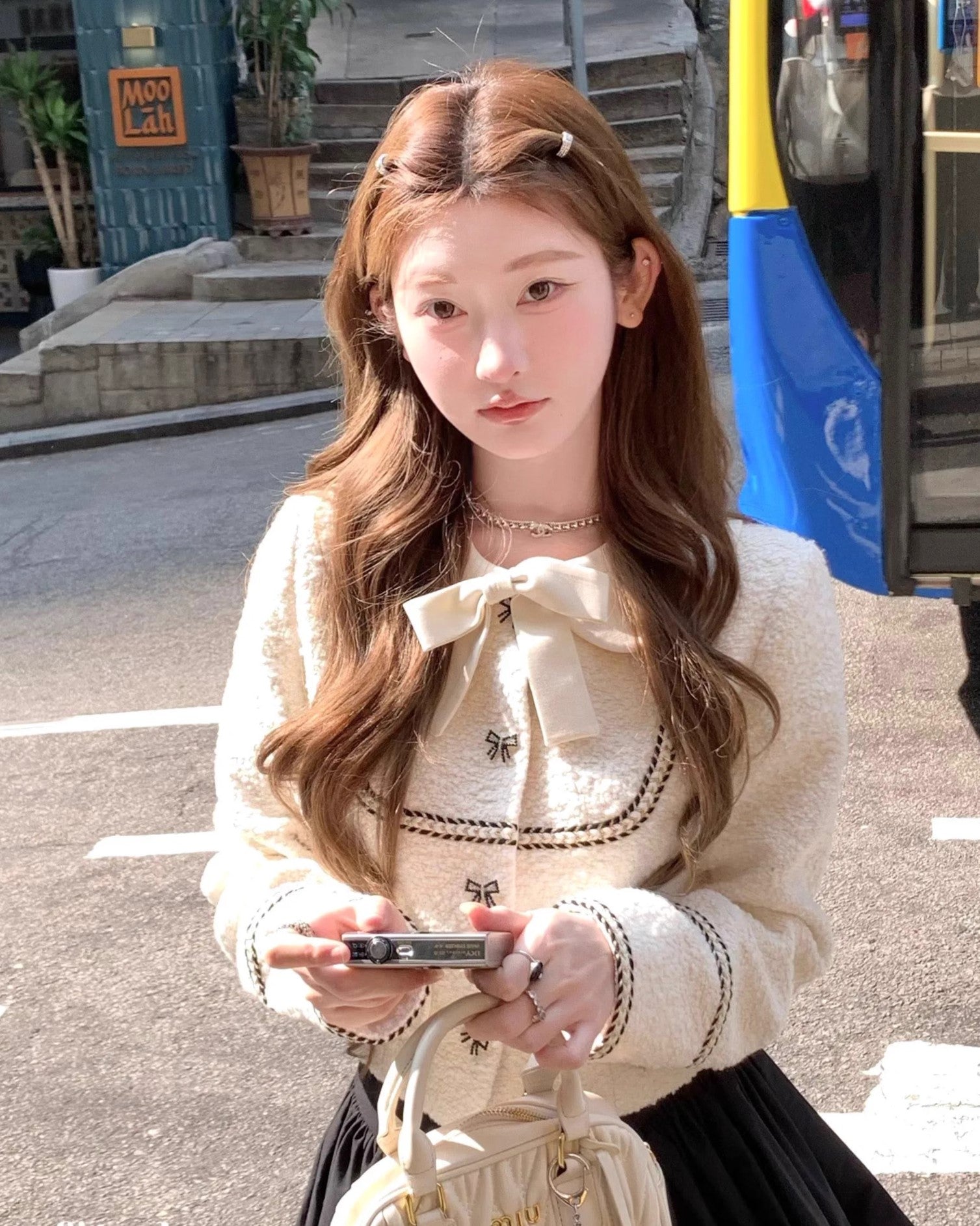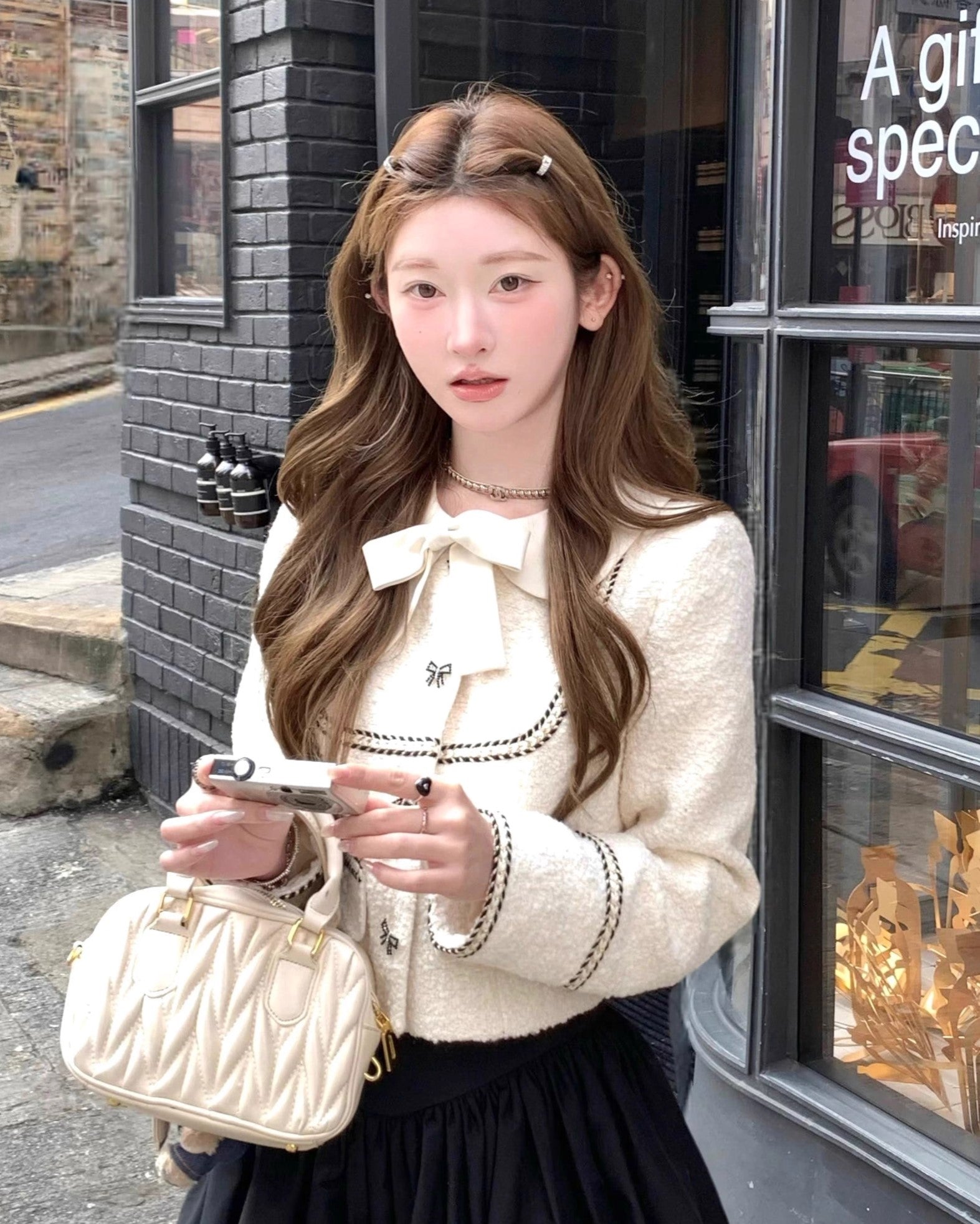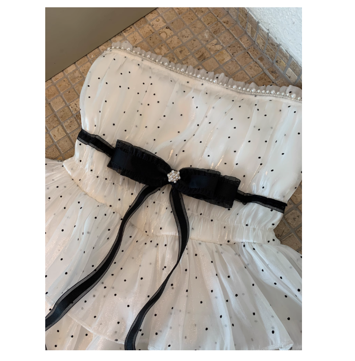 雨上がりのパリの街角を歩くドットリボンフリルセットアップ_R0435