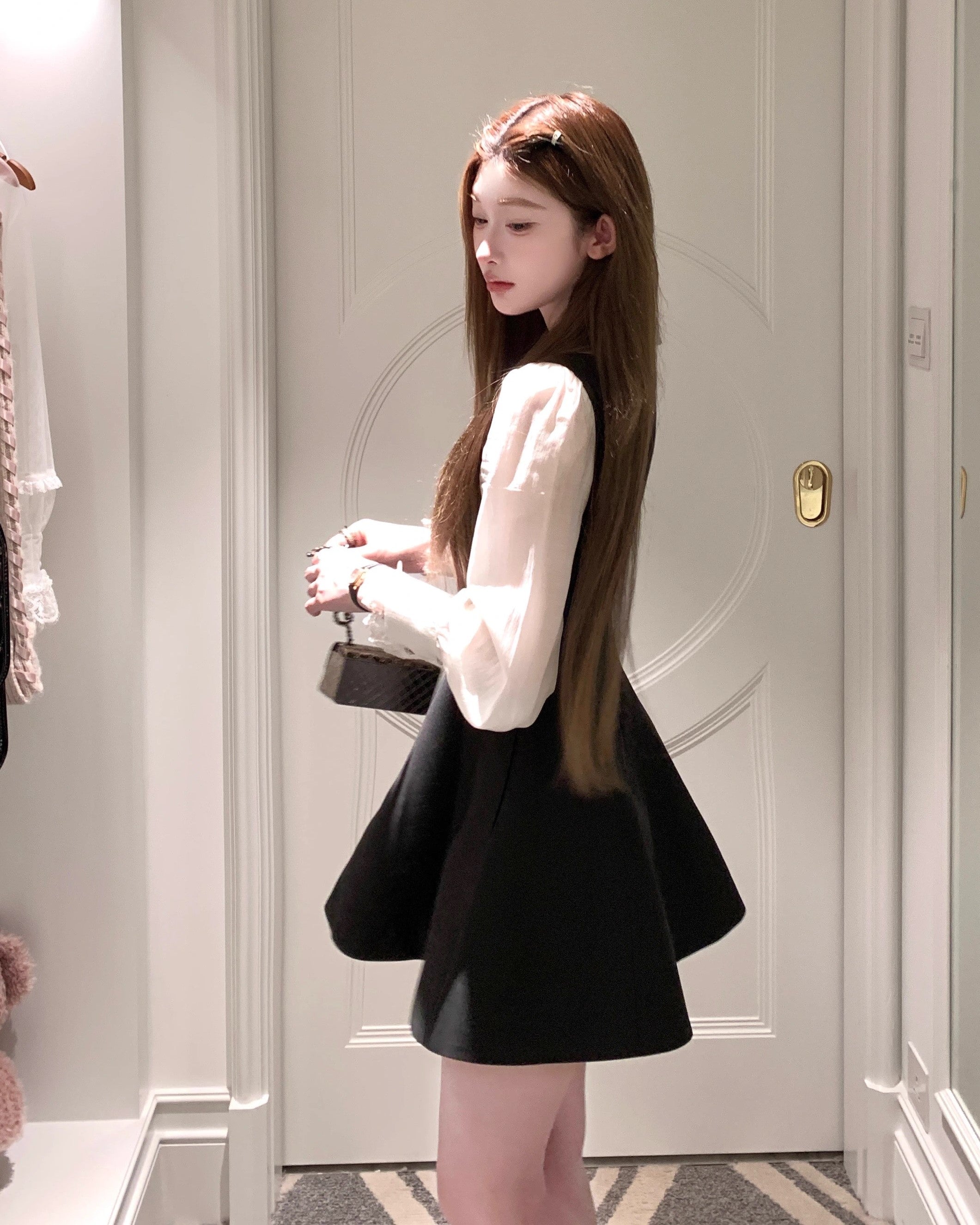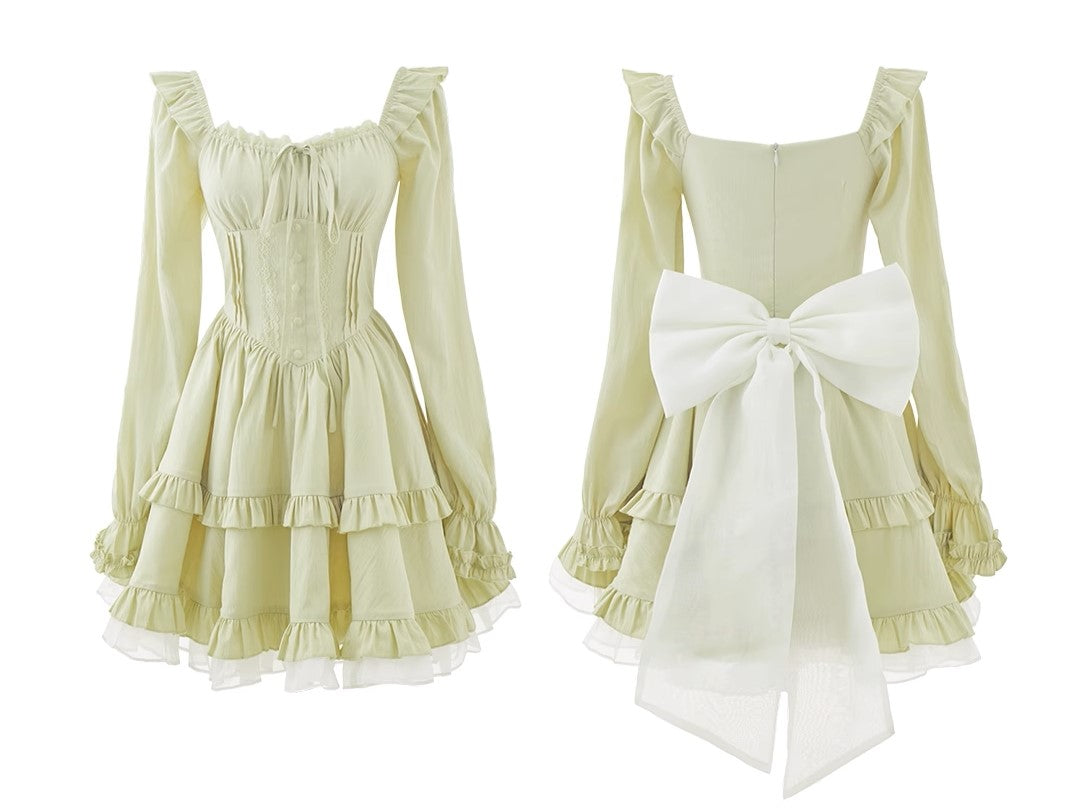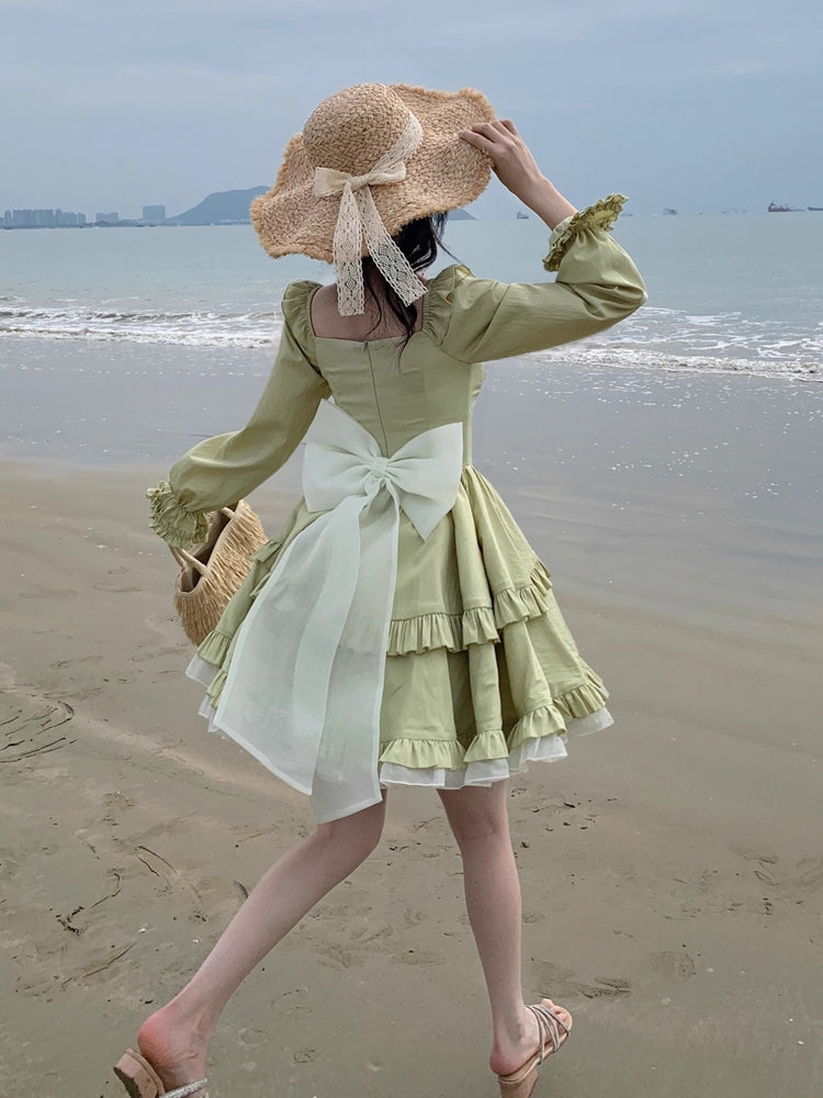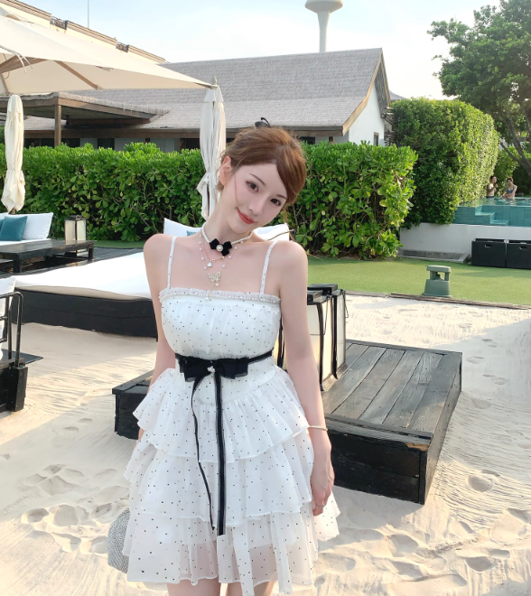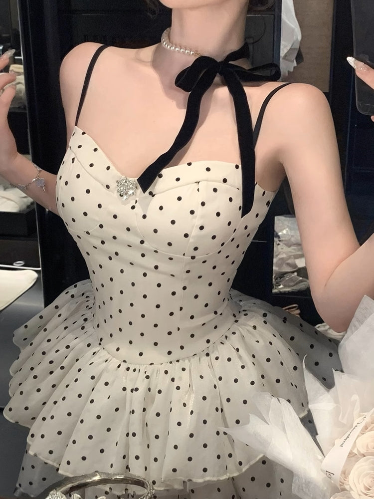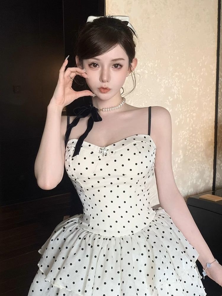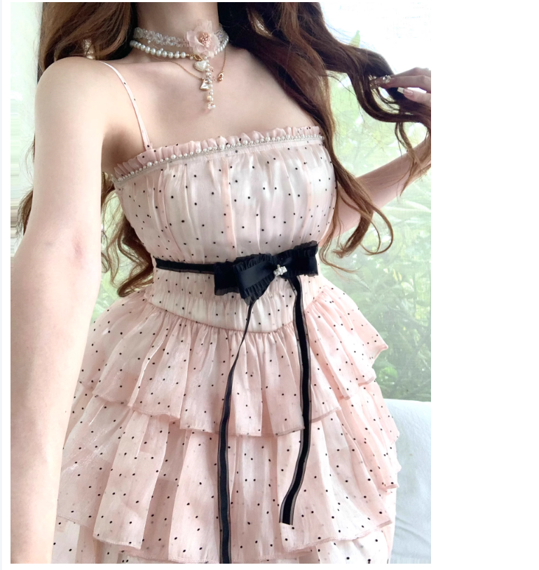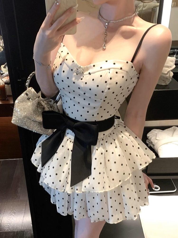 雨上がりのパリの街角を歩くドットリボンフリルセットアップ_R0435