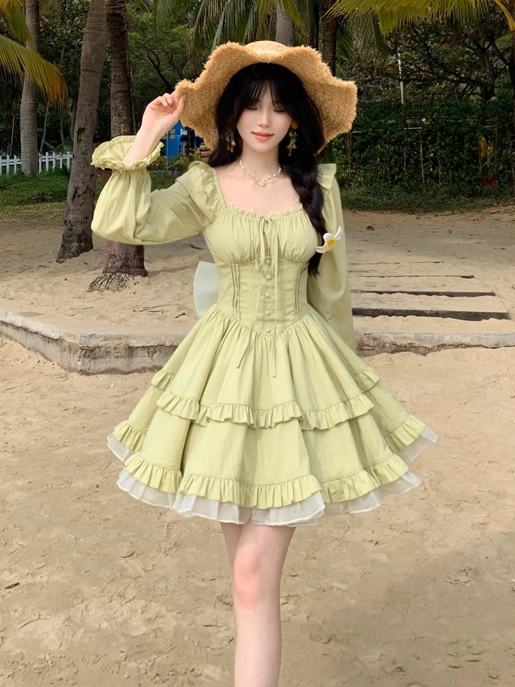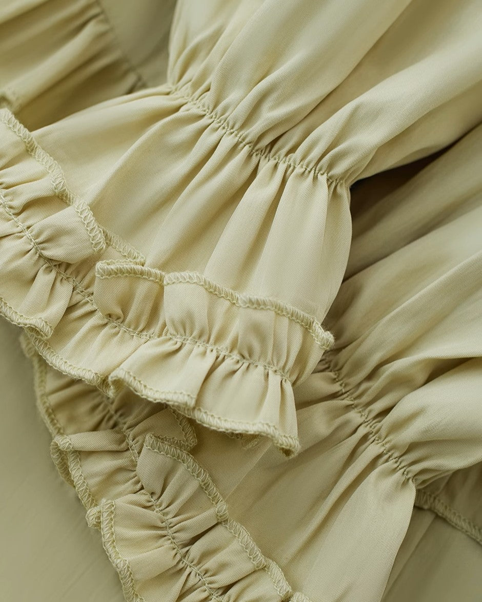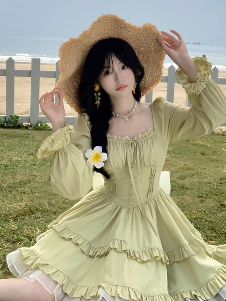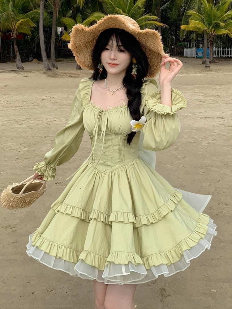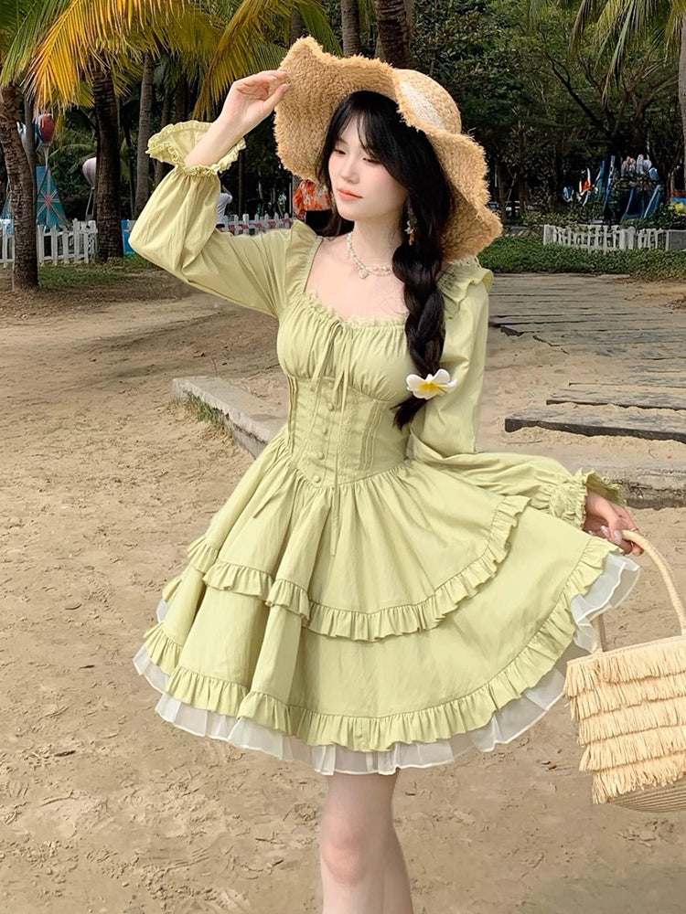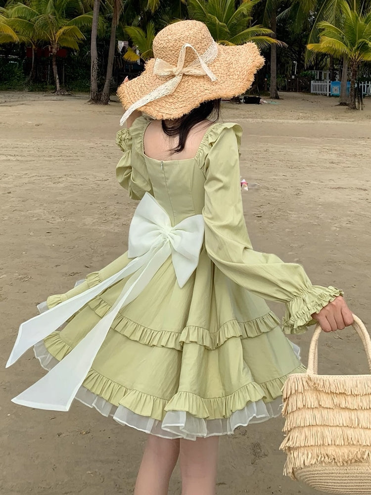 雨上がりのパリの街角を歩くドットリボンフリルセットアップ_R0435