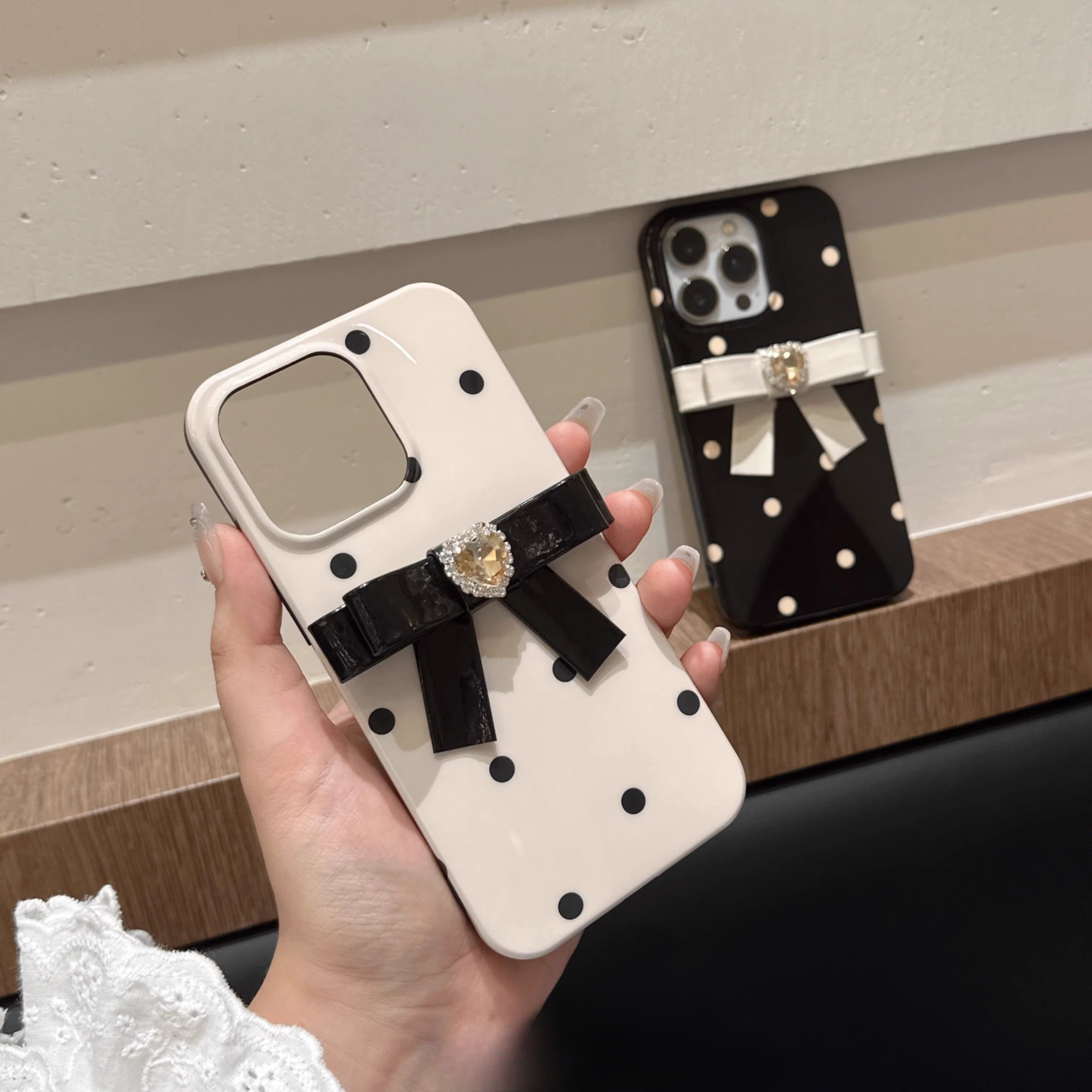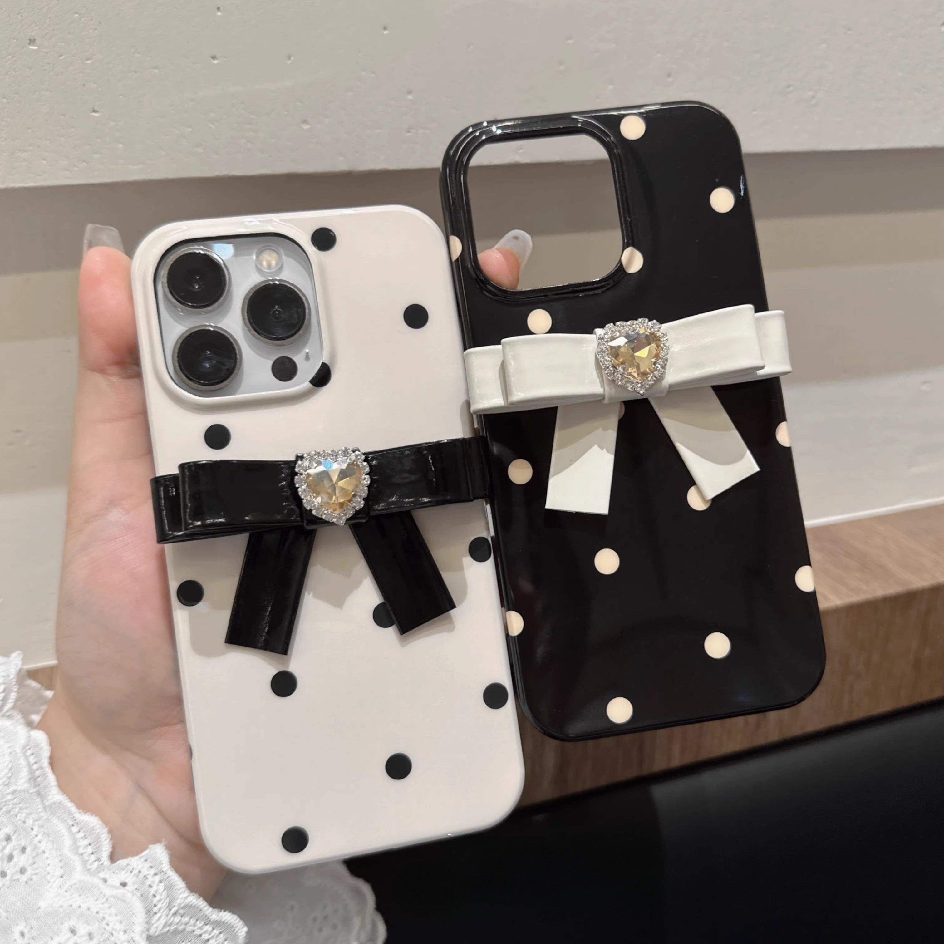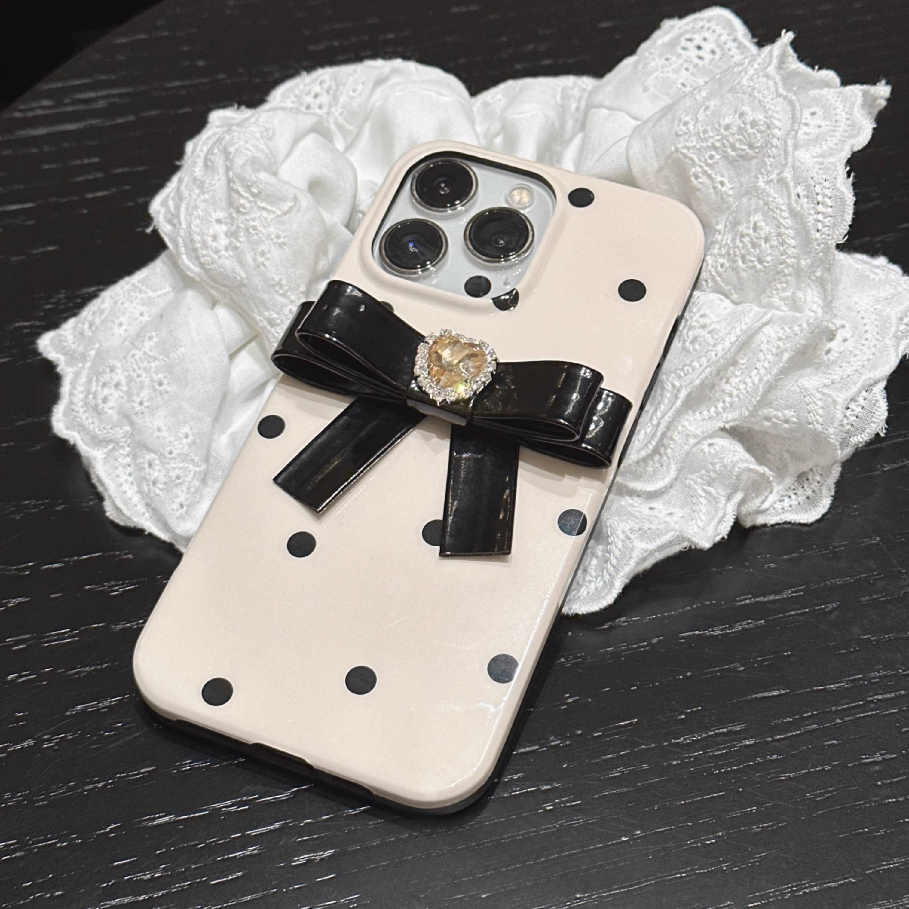 ときめきを結ぶハートリボンドットiPhoneケース _R0438