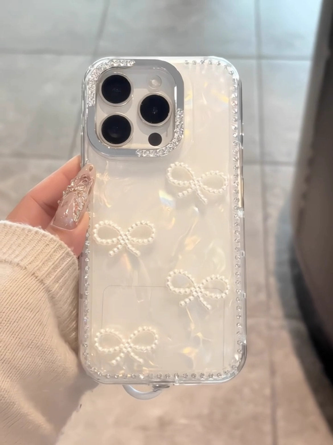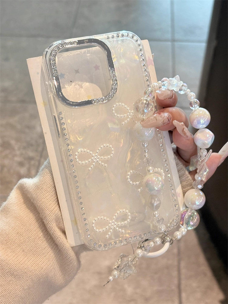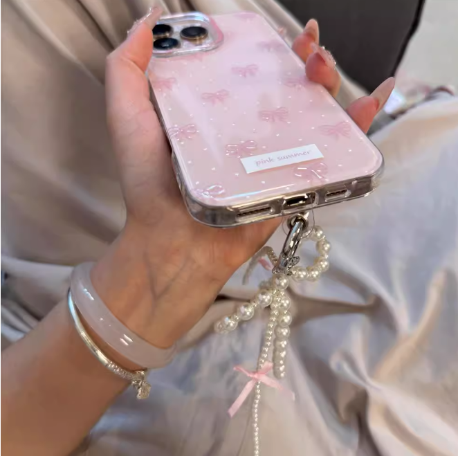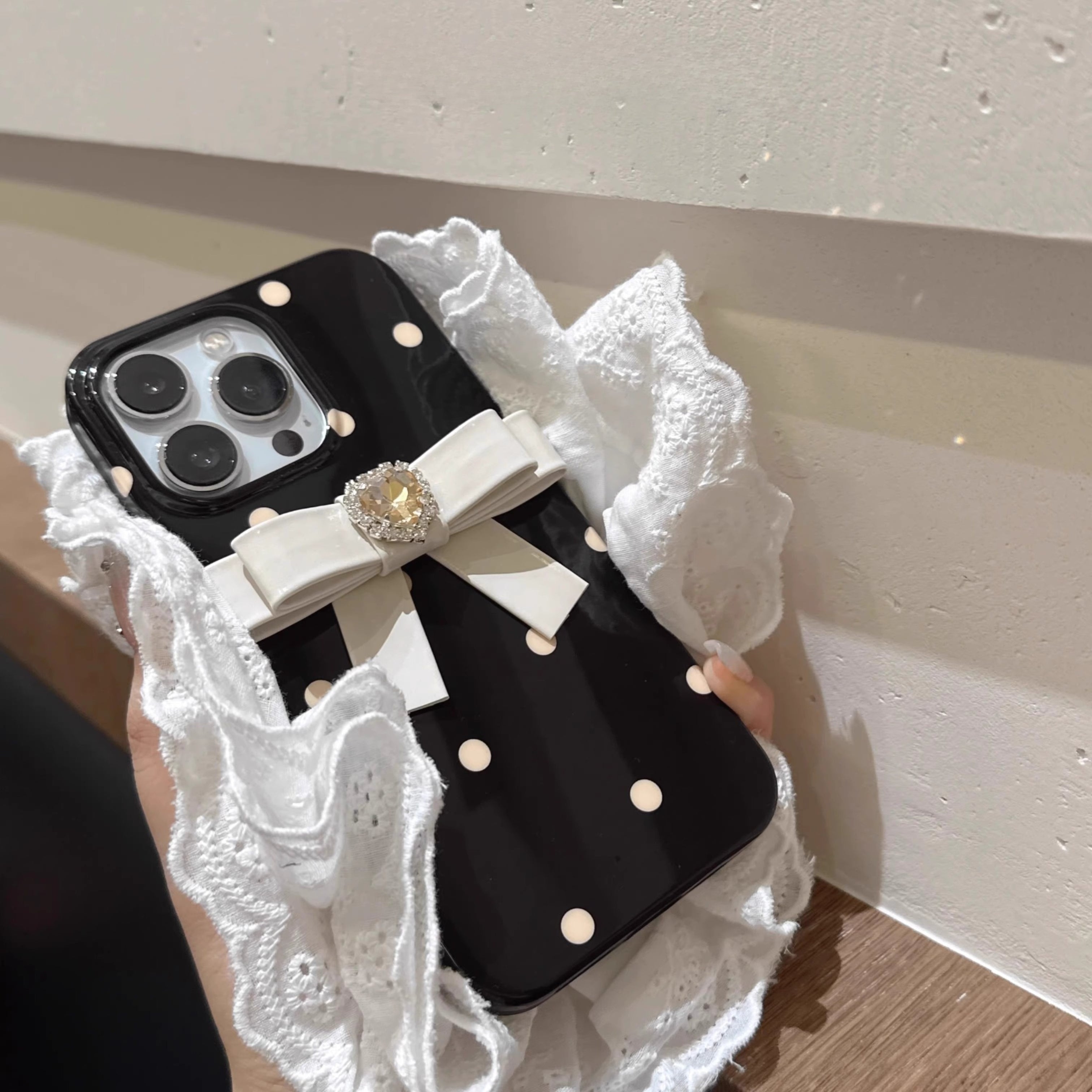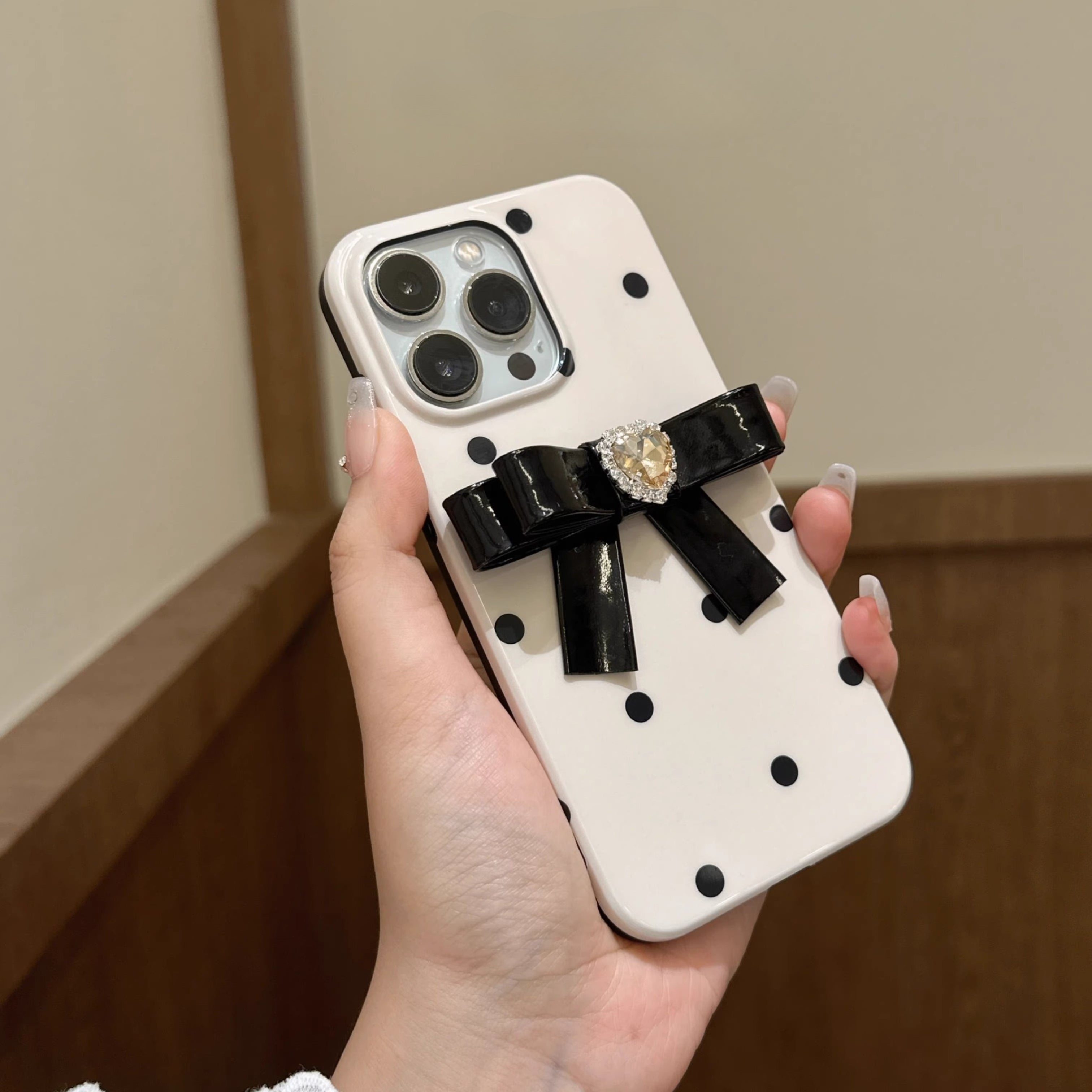 ときめきを結ぶハートリボンドットiPhoneケース _R0438
