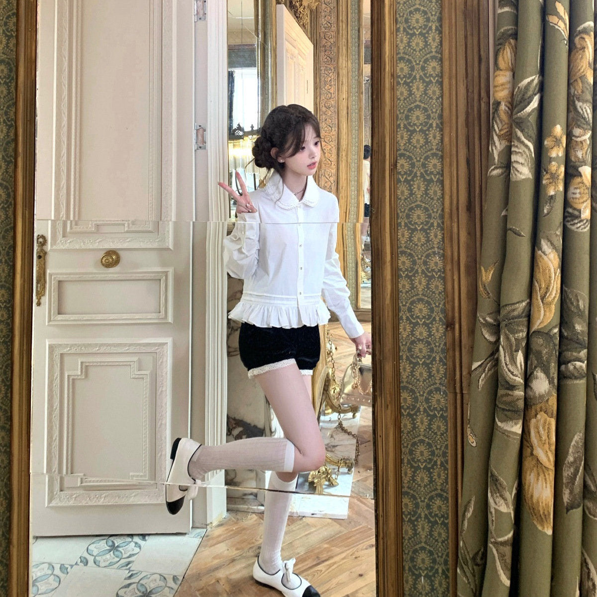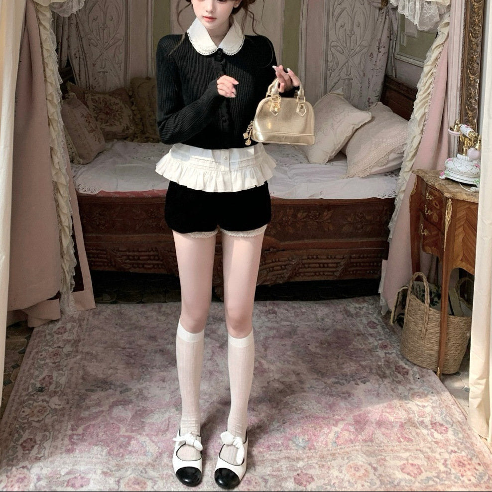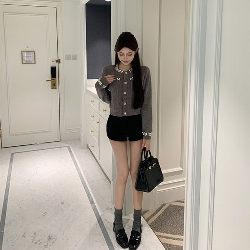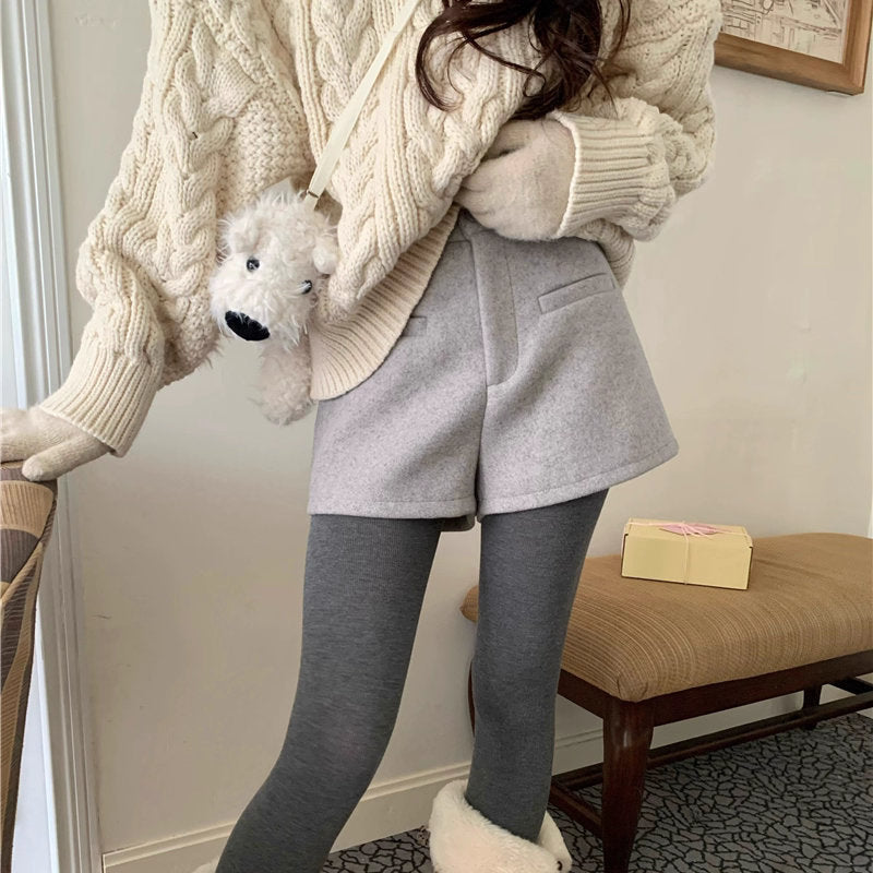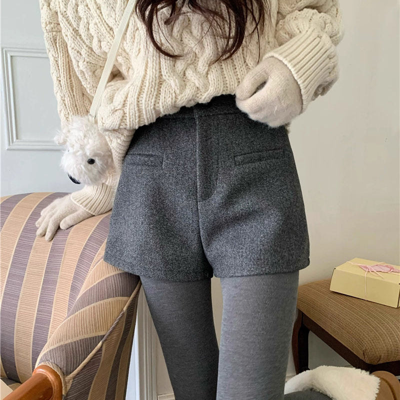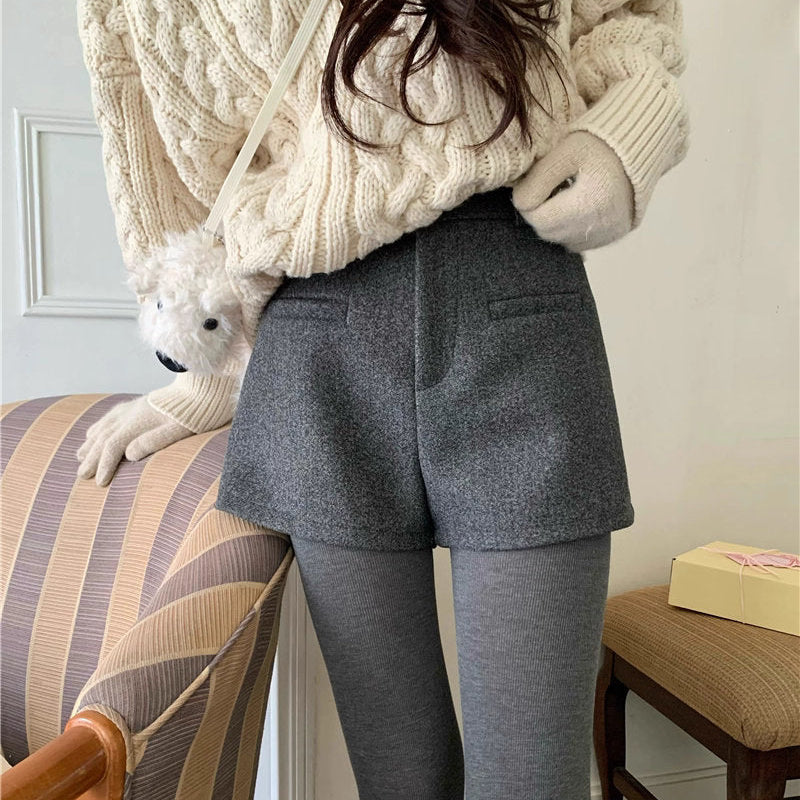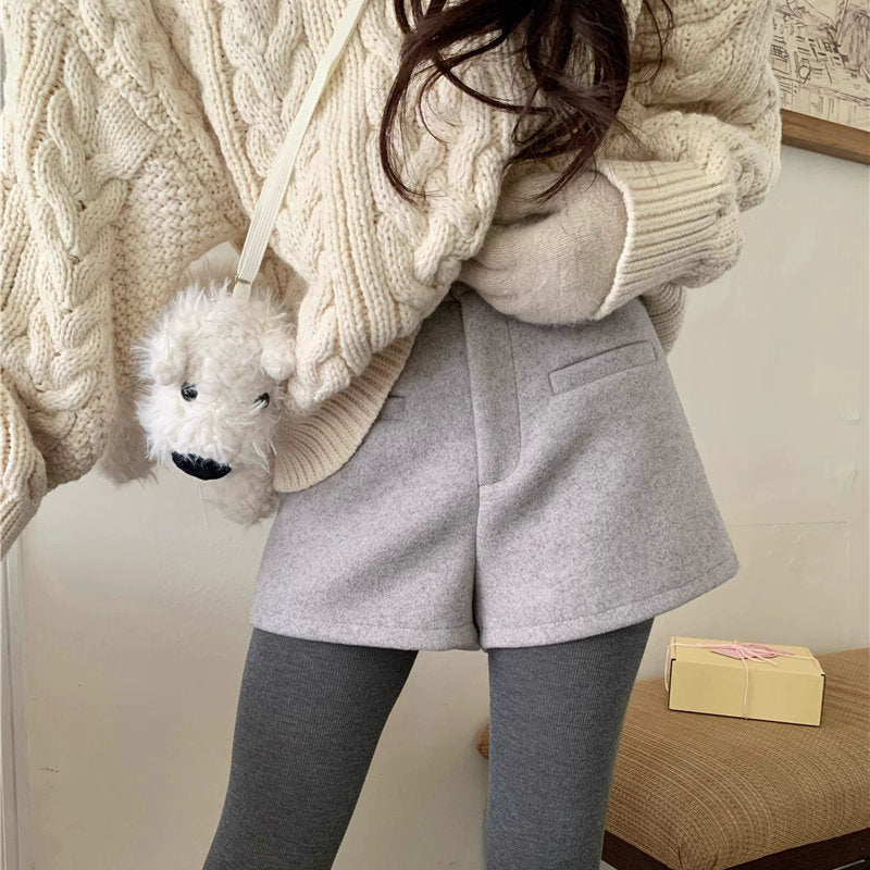 午前10時のカフェでカプチーノを飲む日のウールショートパンツ_R0404