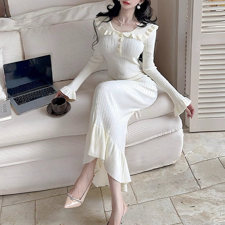 バルコニーで風を感じる午後のフリルロングワンピース_R0412