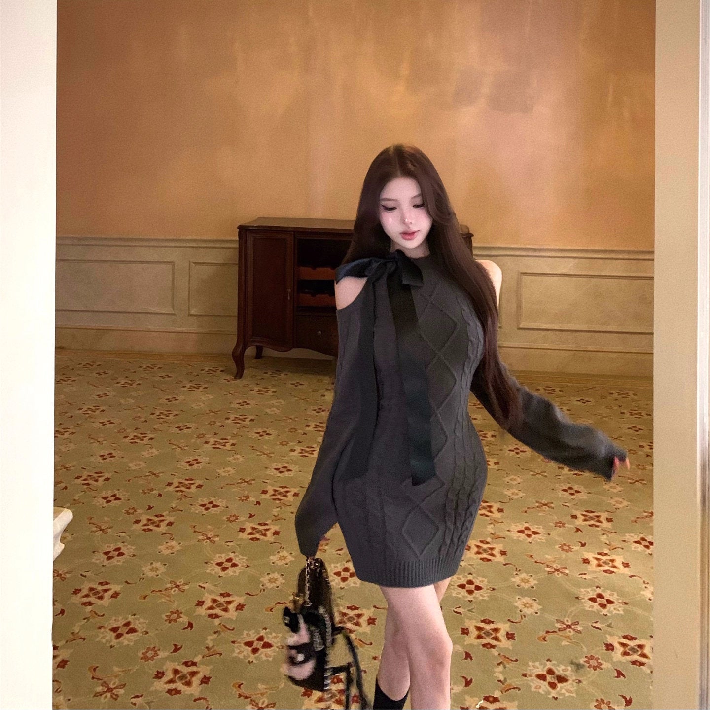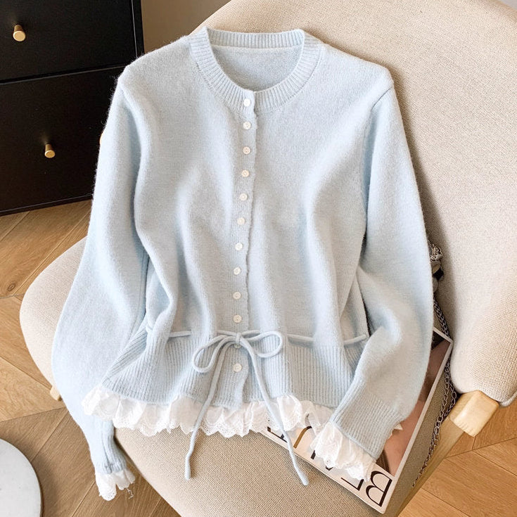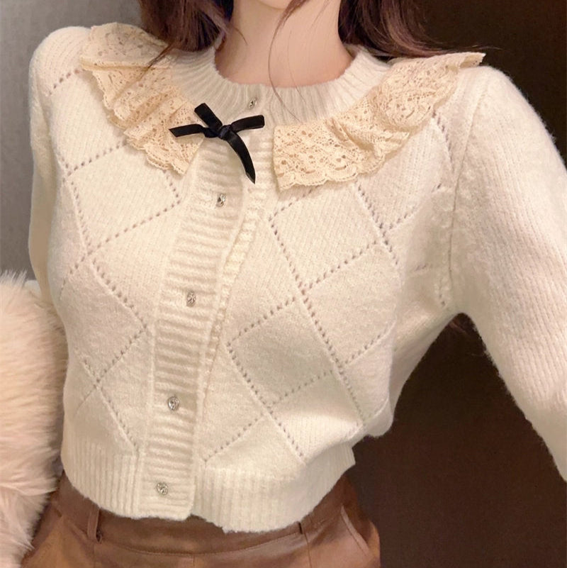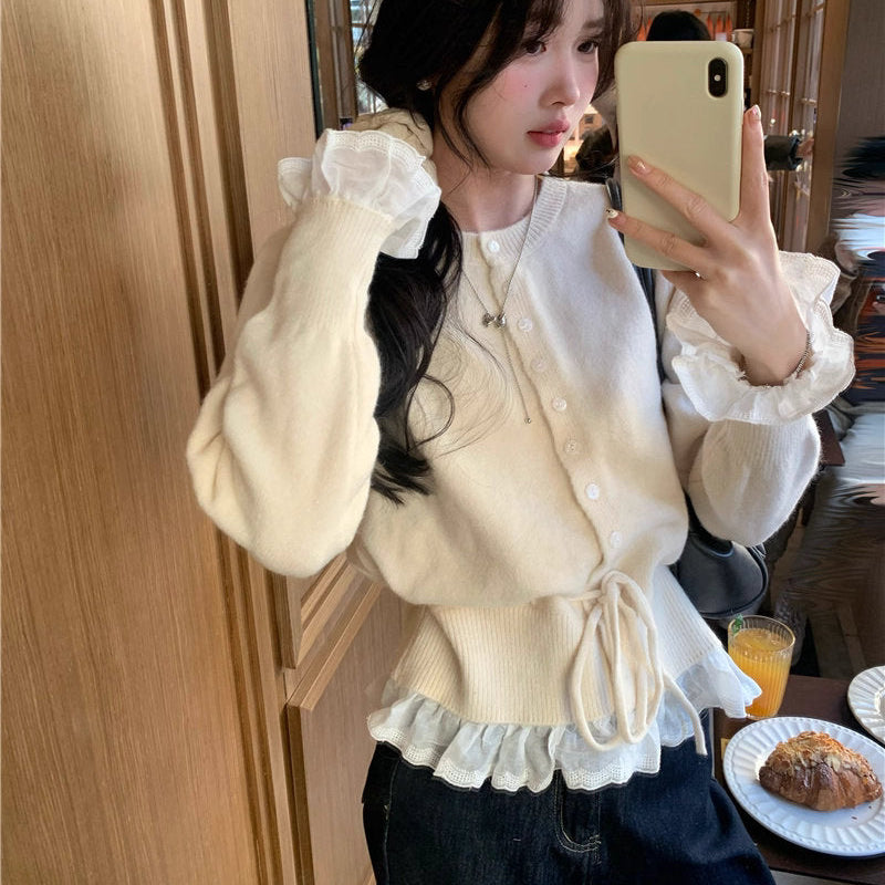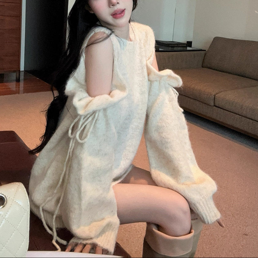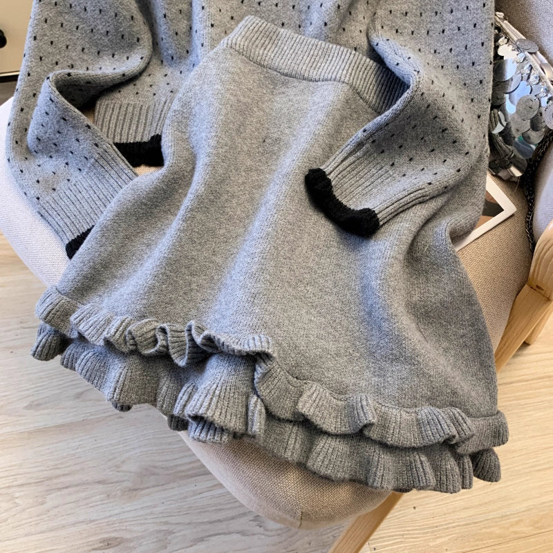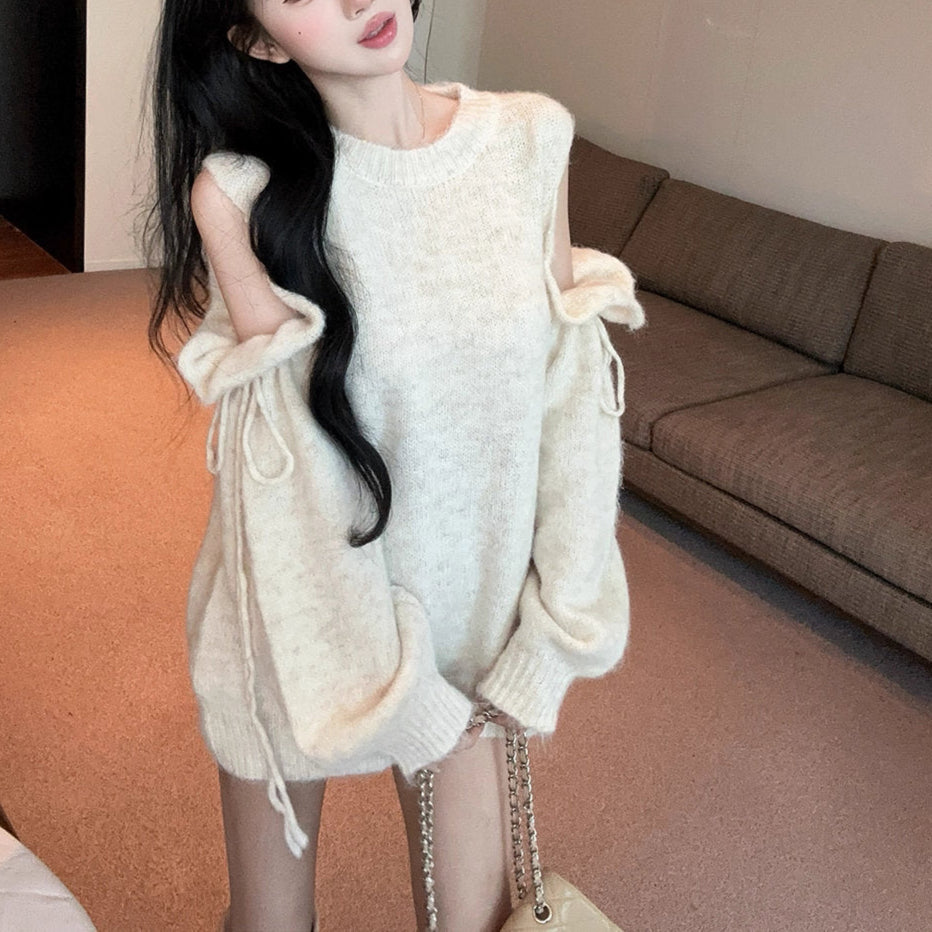 お気に入りのカフェでホットチョコを飲む日のリボンケープニット_R0376