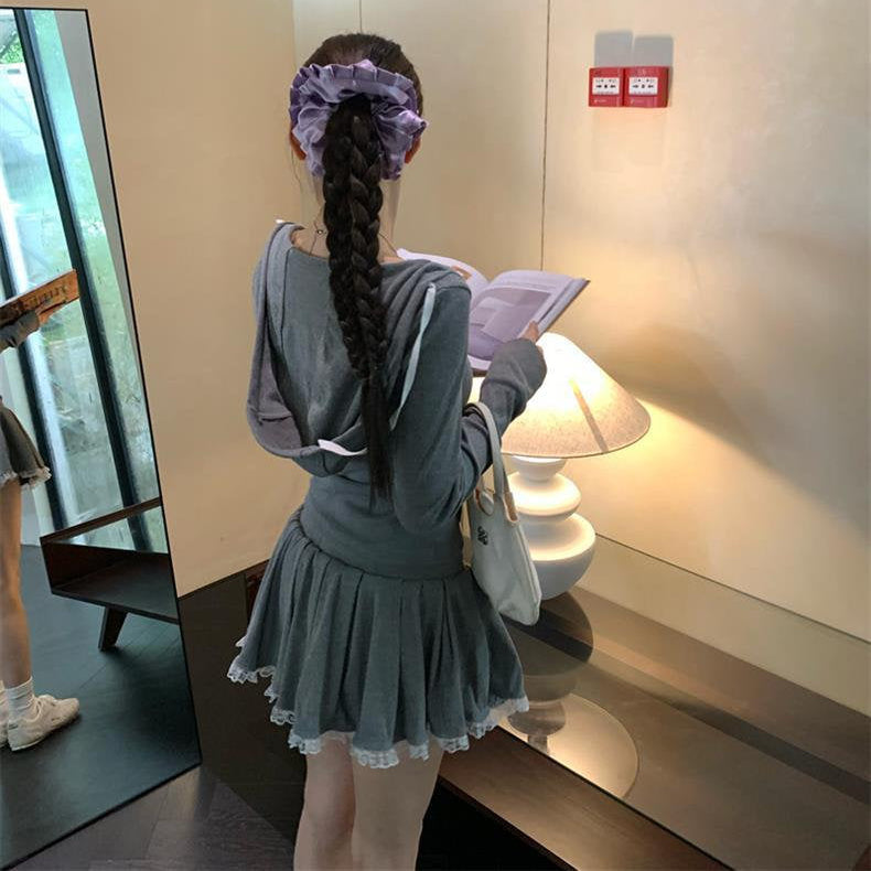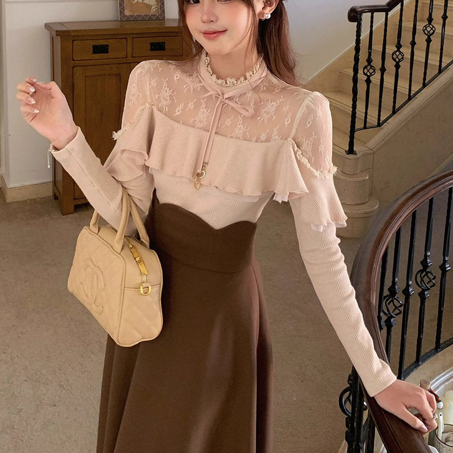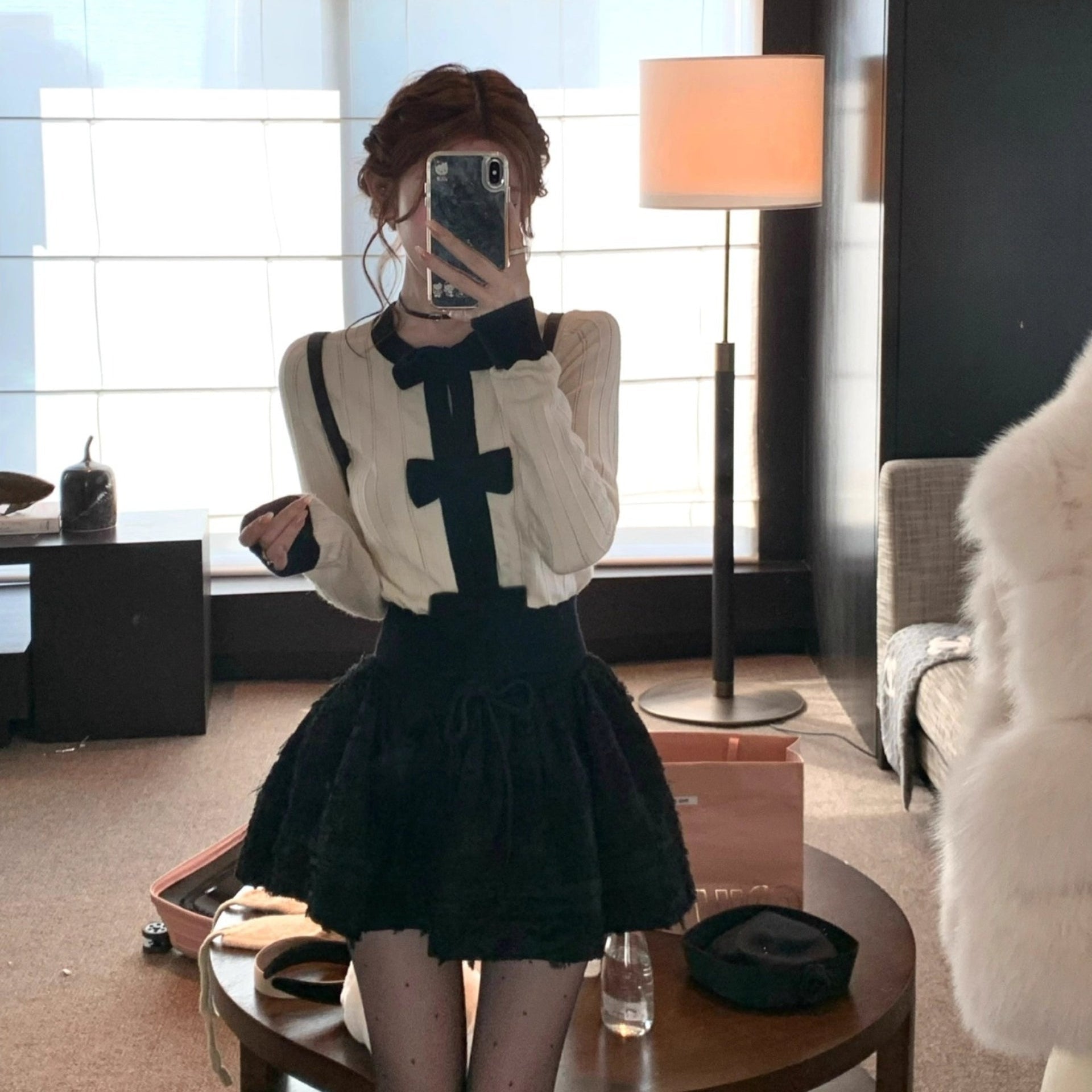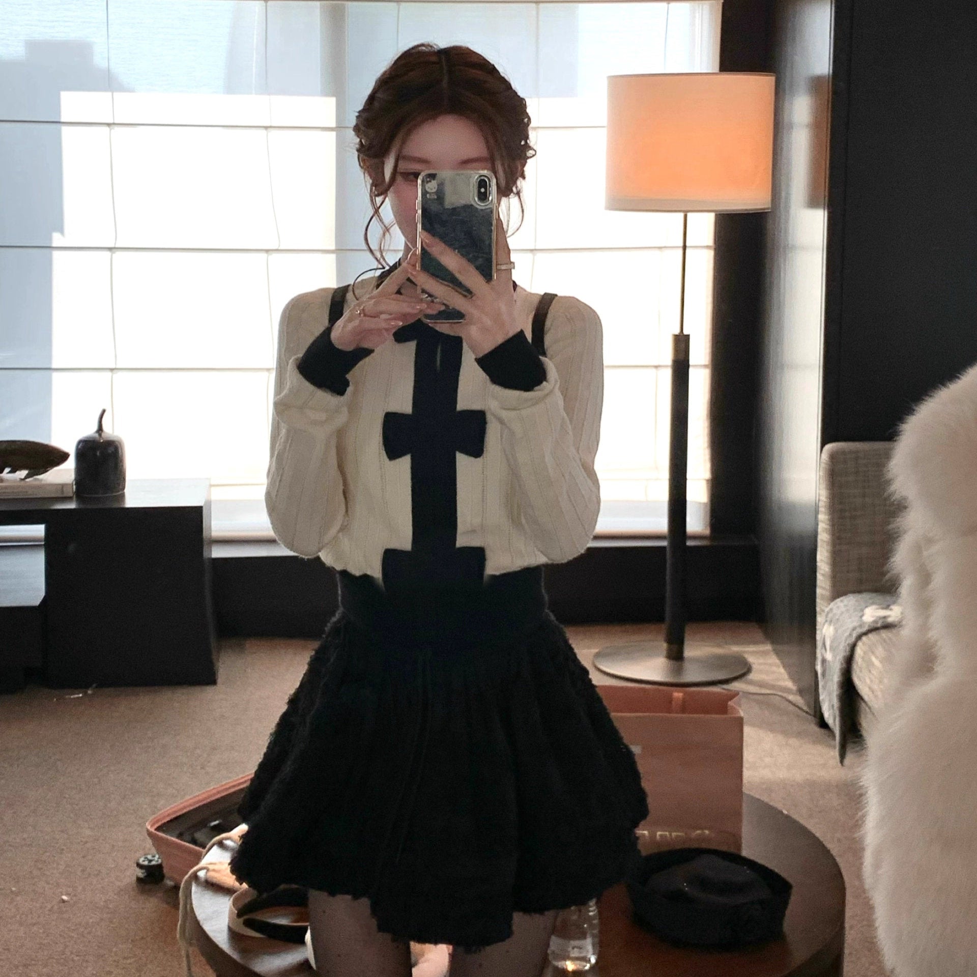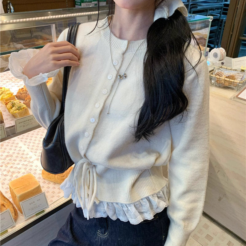 お気に入りのカフェでホットチョコを飲む日のリボンケープニット_R0376