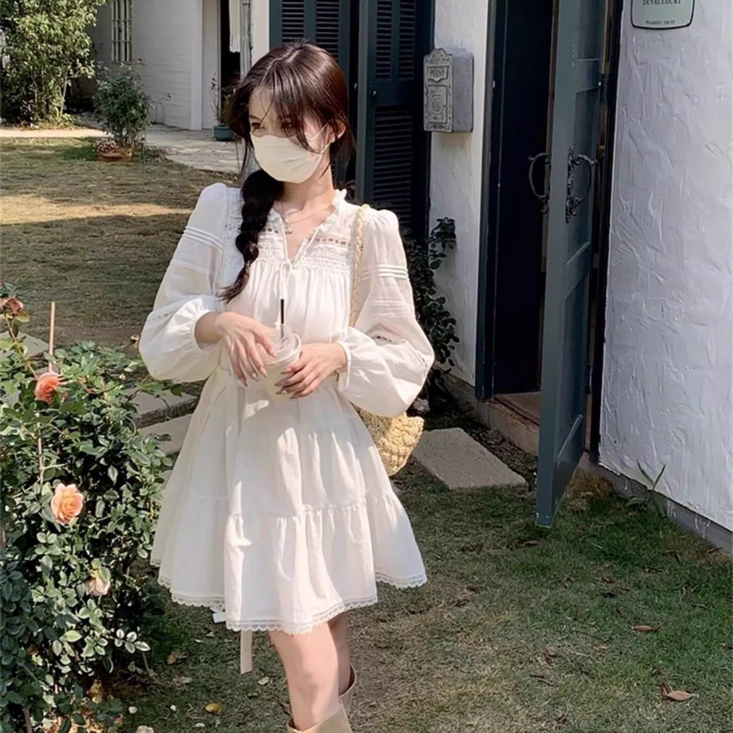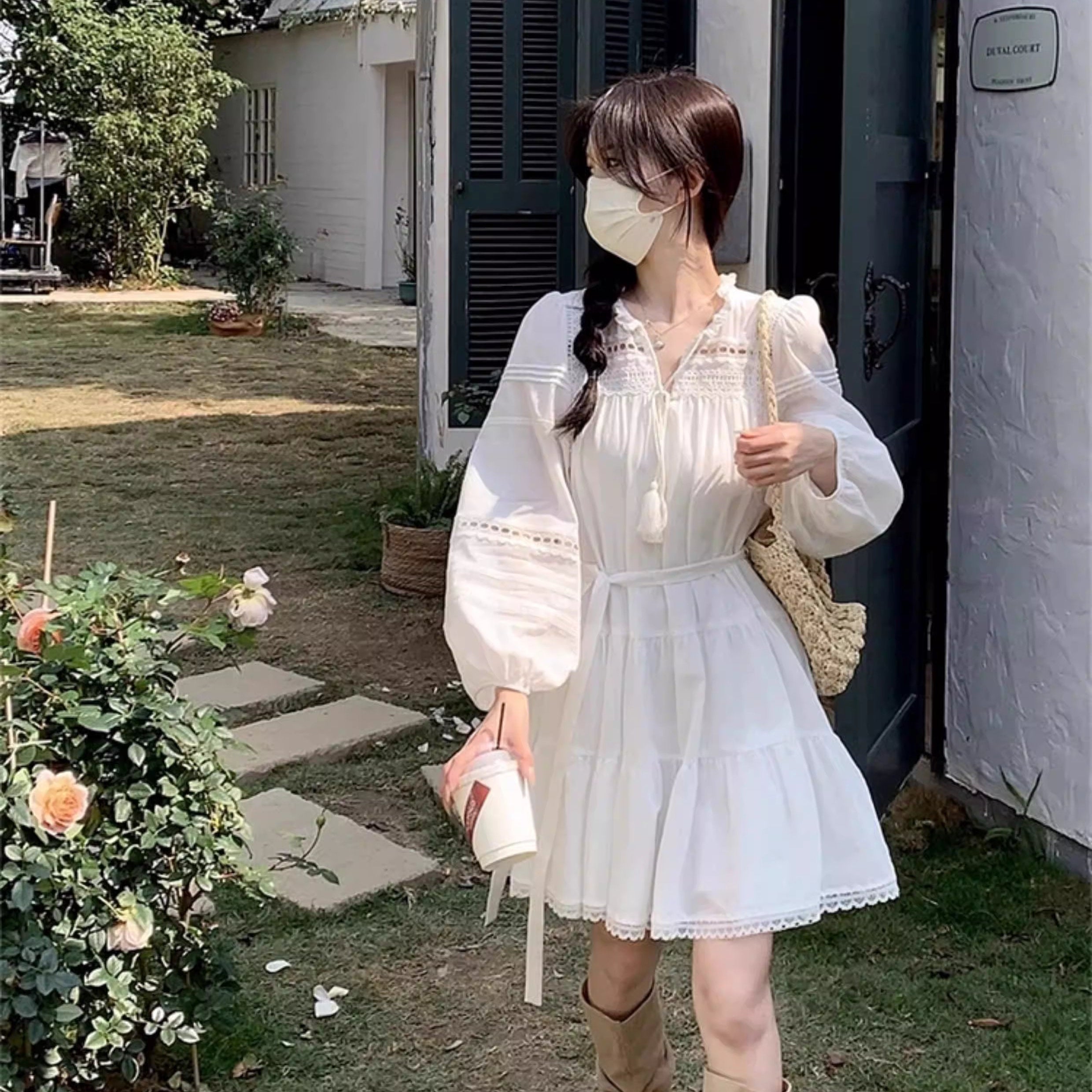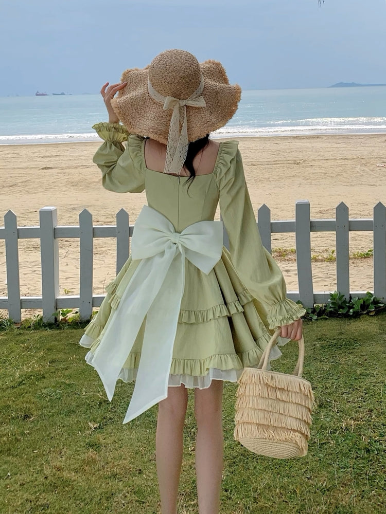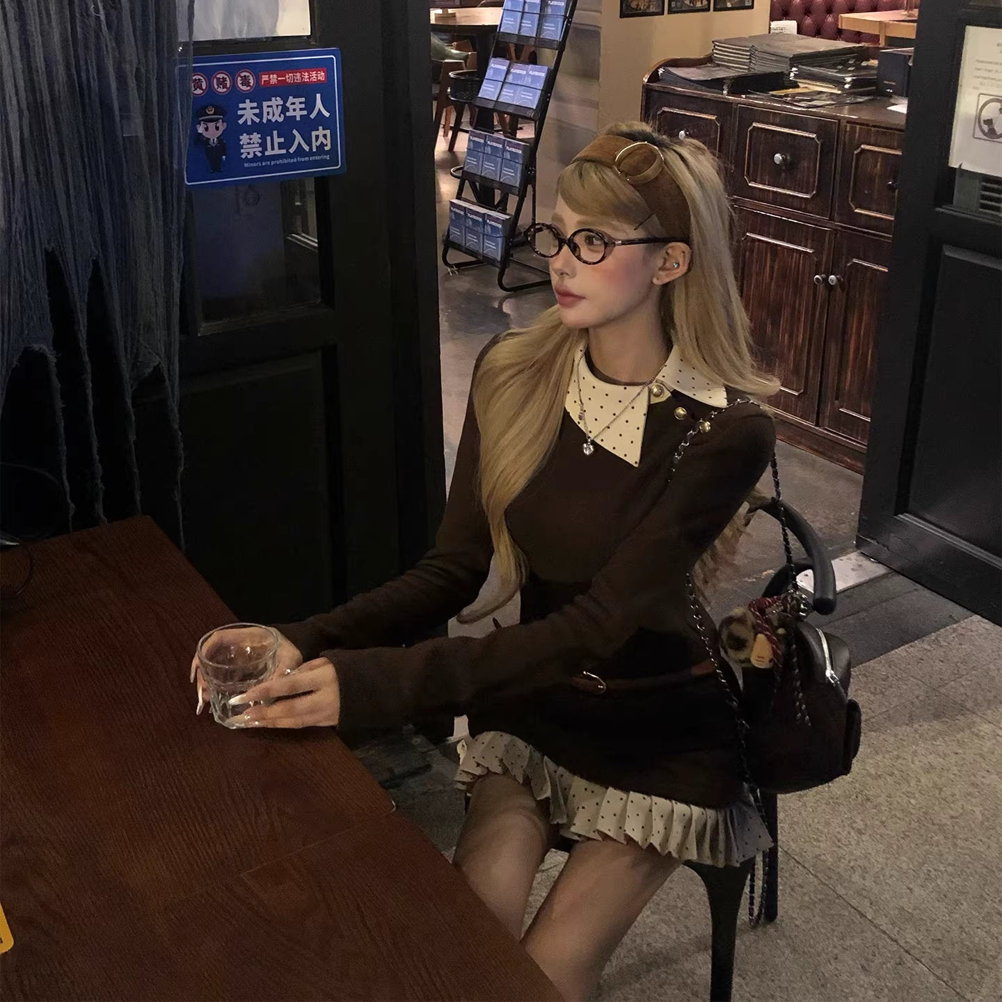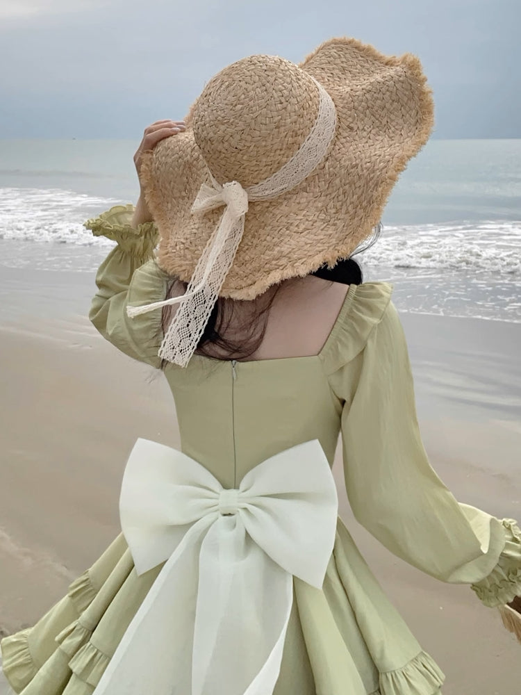 お気に入りのカフェでホットチョコを飲む日のリボンケープニット_R0376