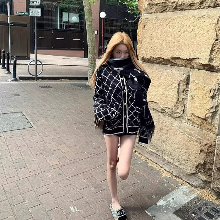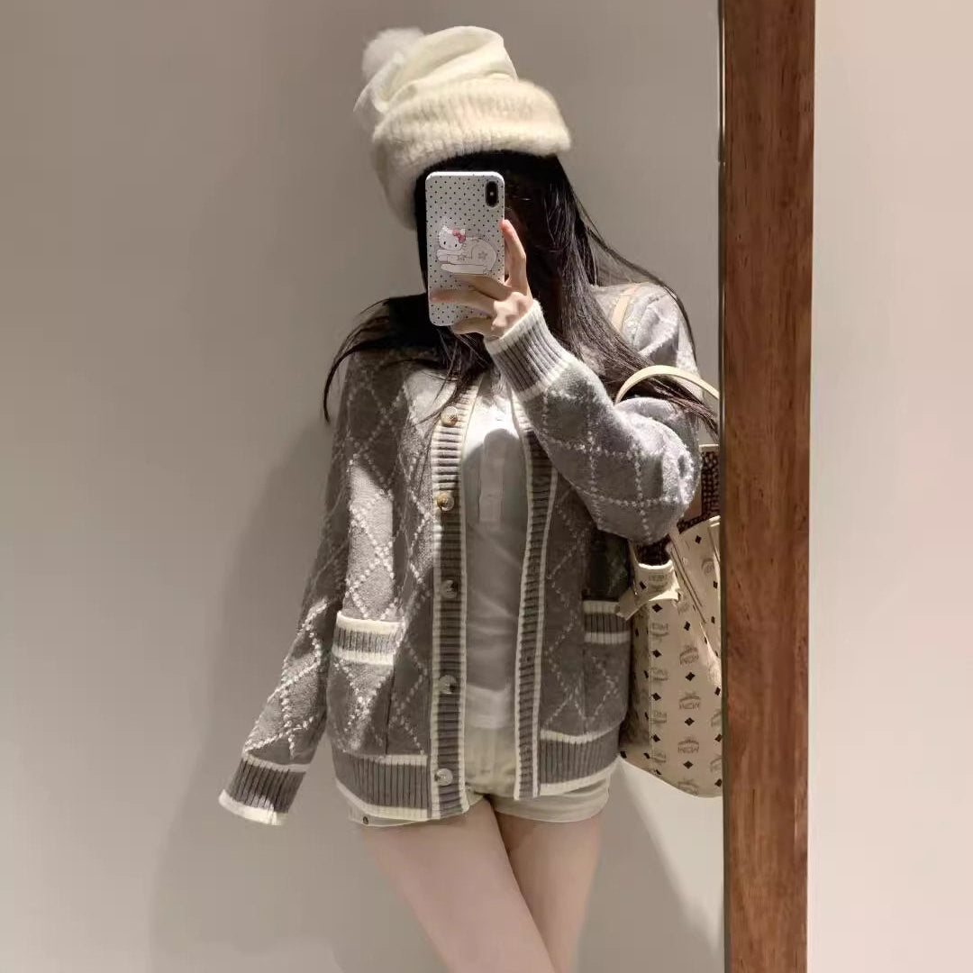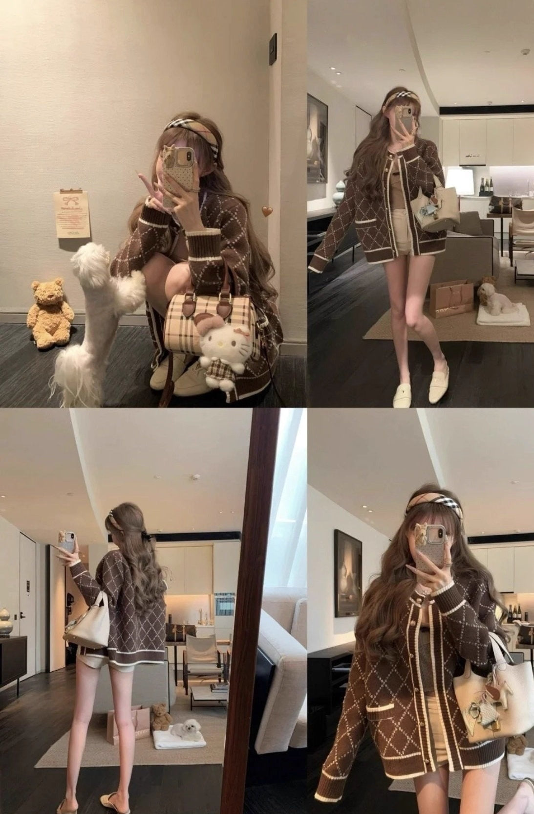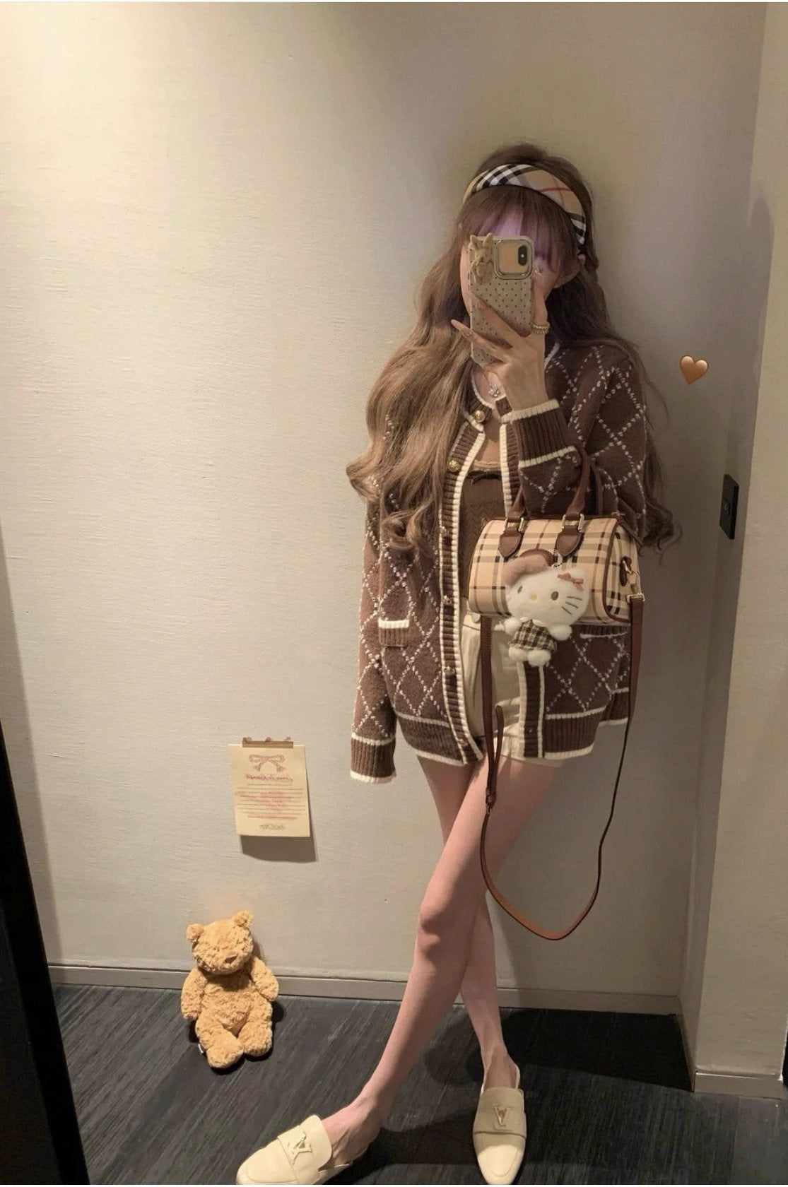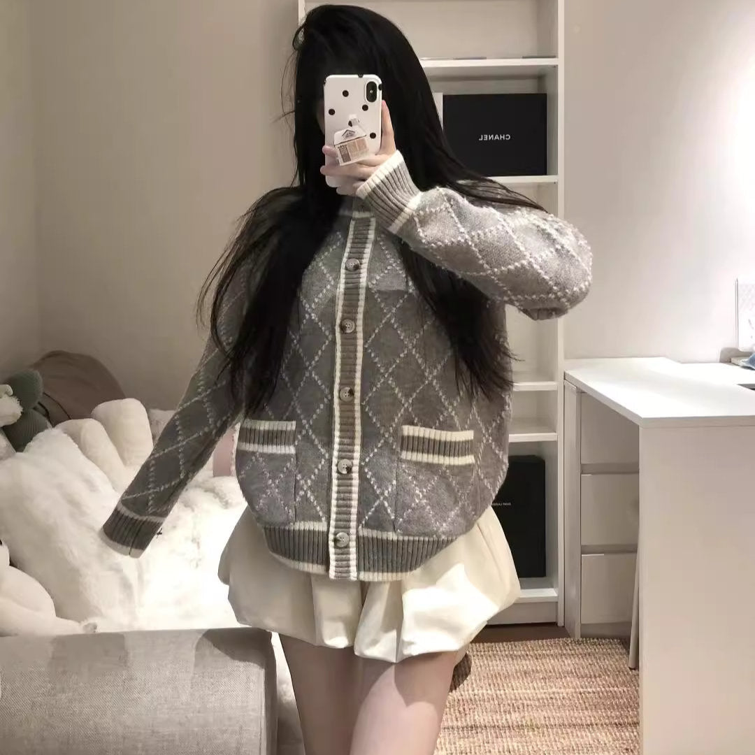パンプキンラテを飲む秋の日のアーガイルカーディガン_R0379