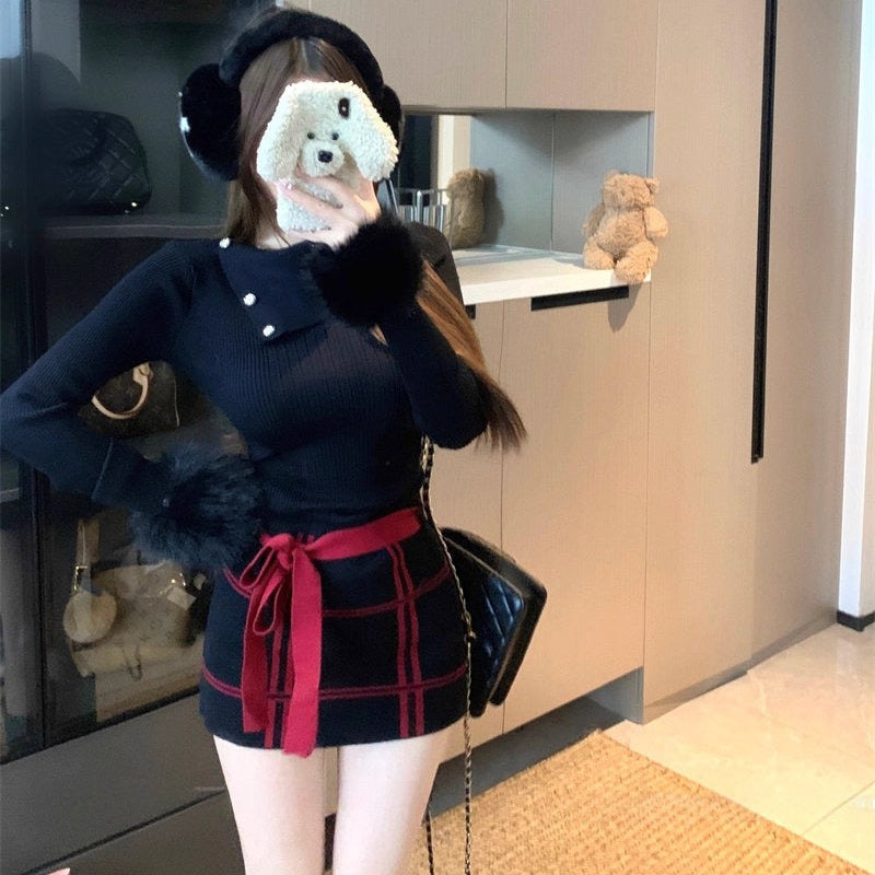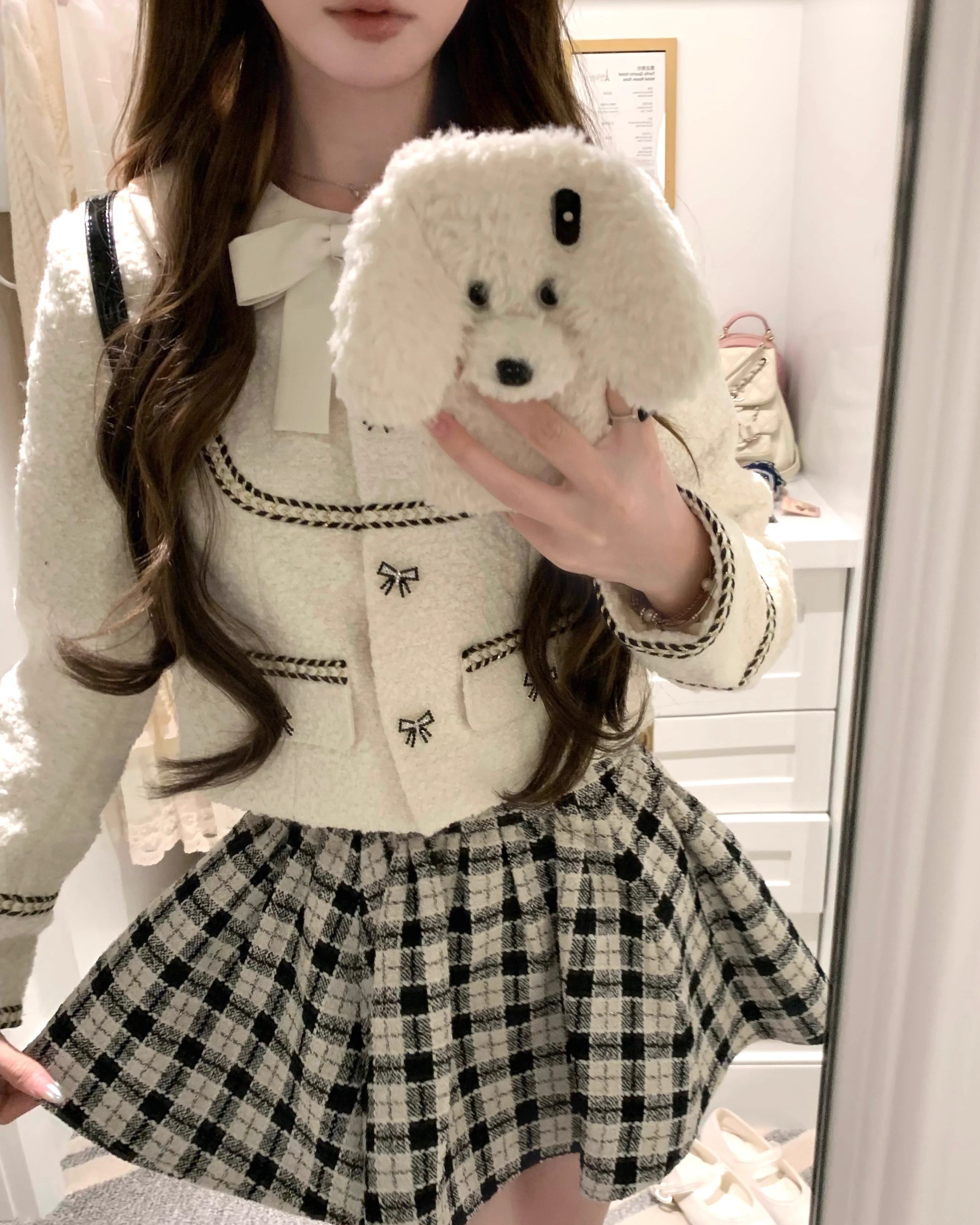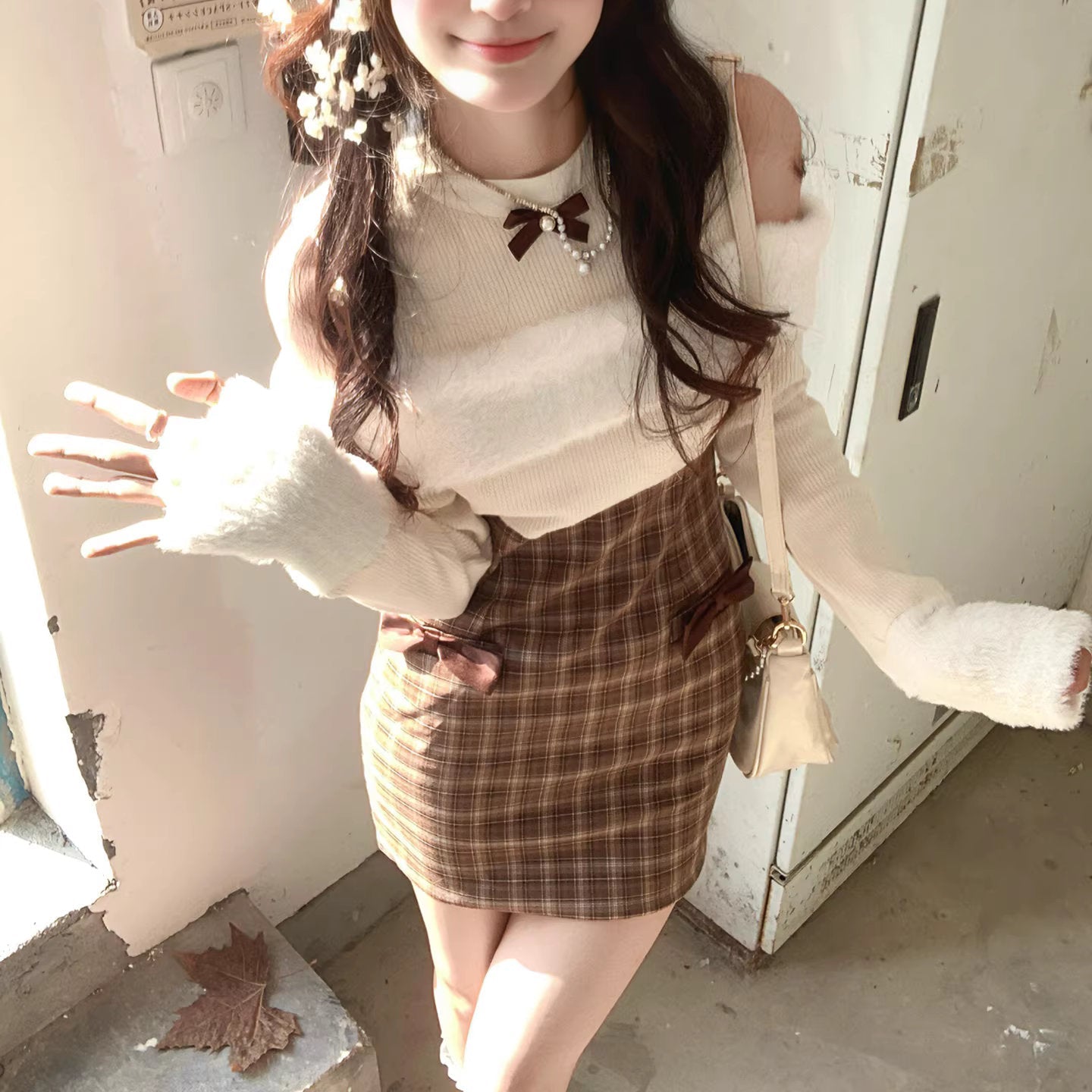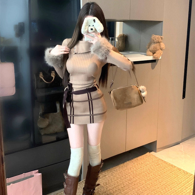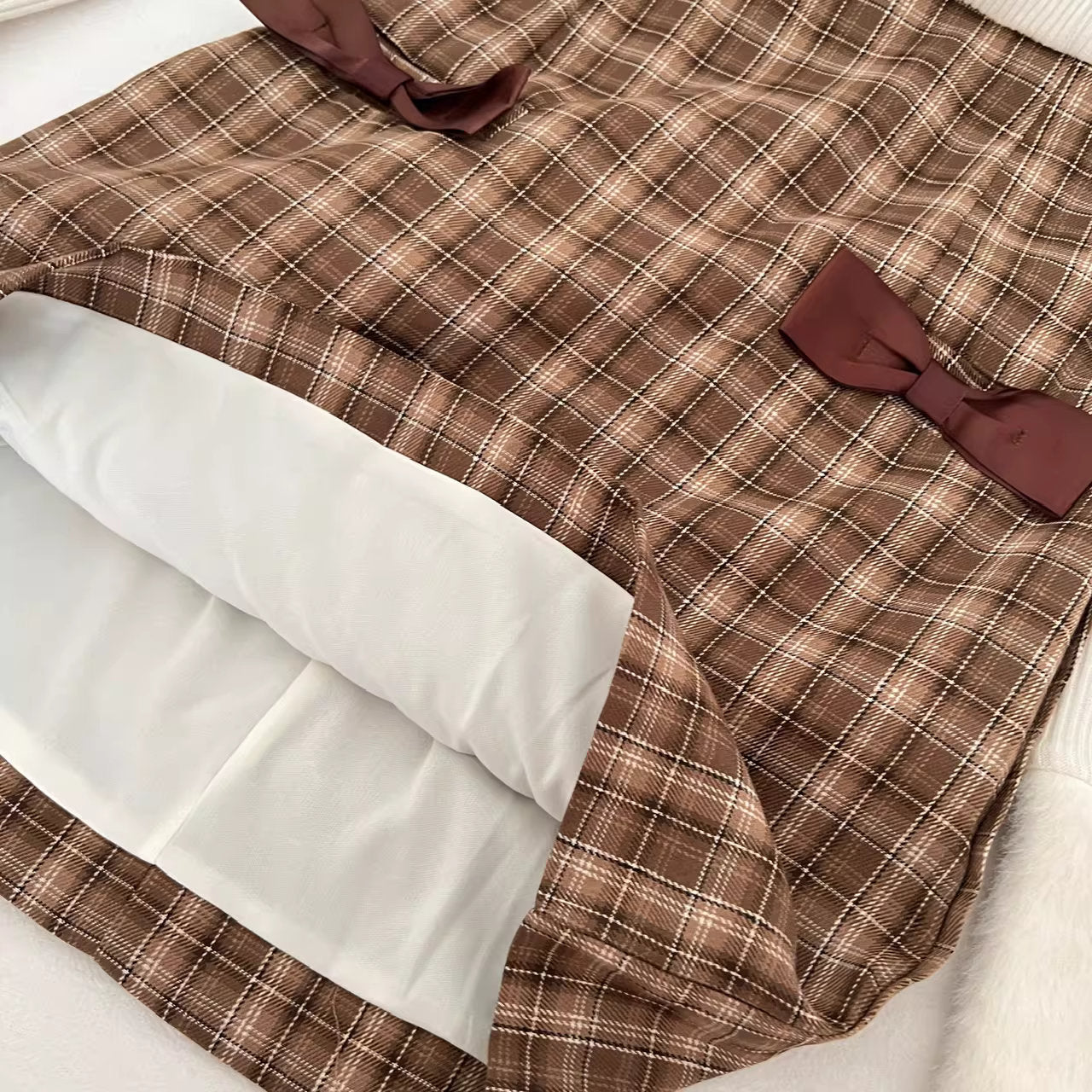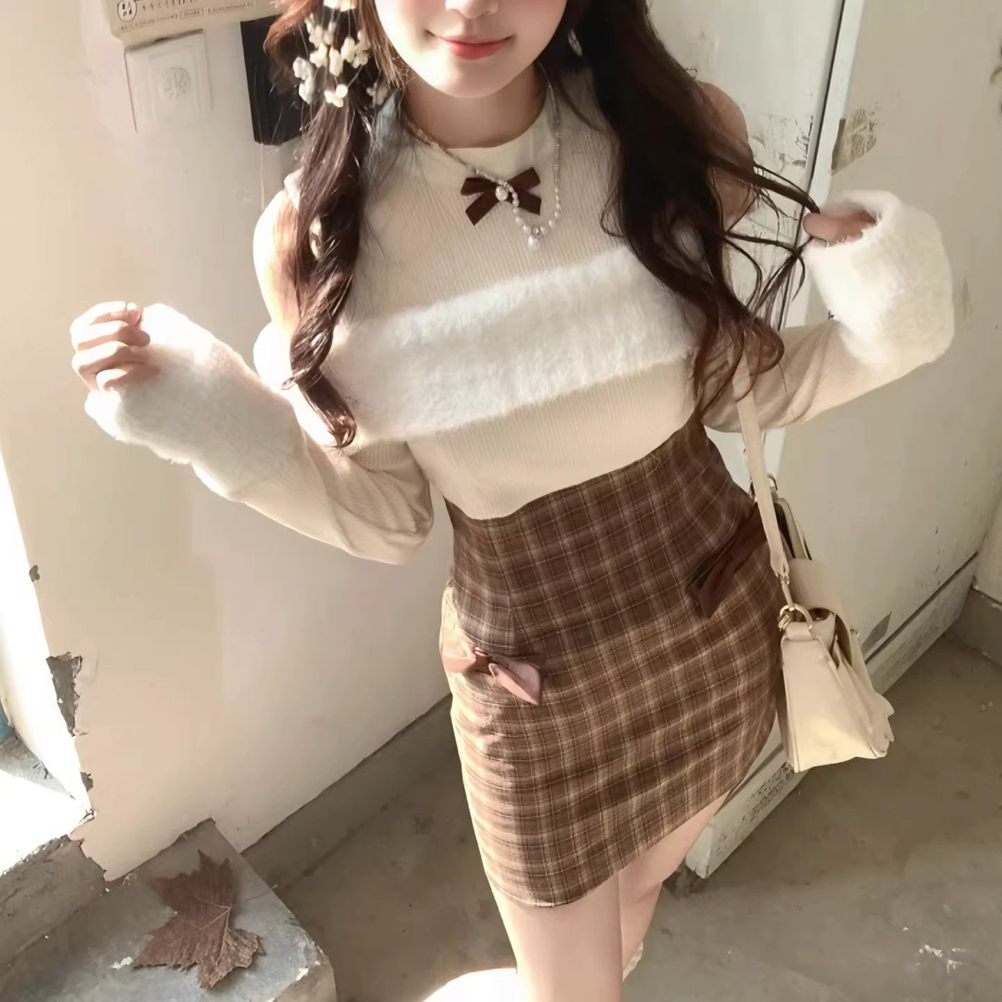 ふわりと心ほどける冬のファーチェックワンピース_R0447