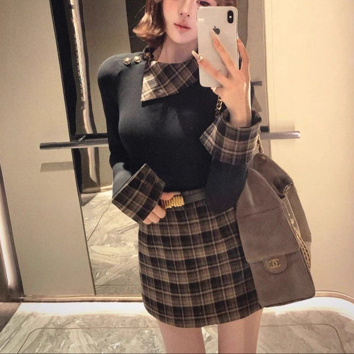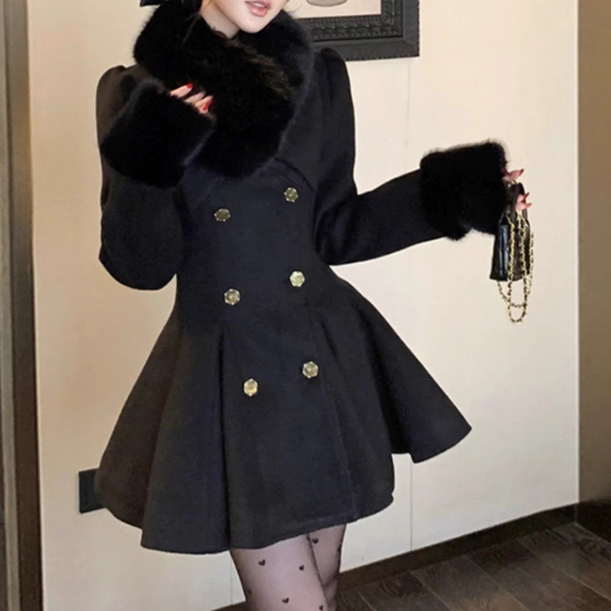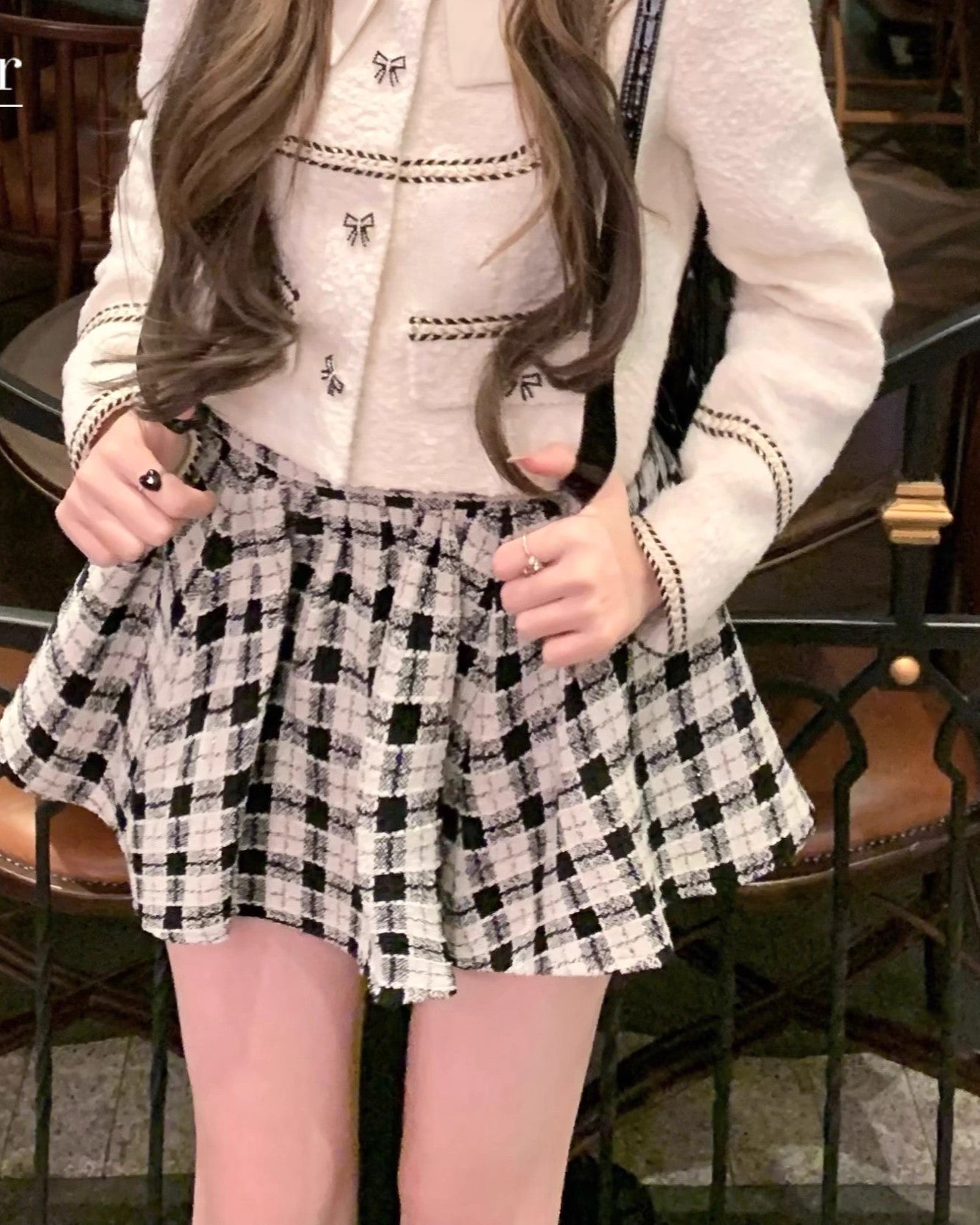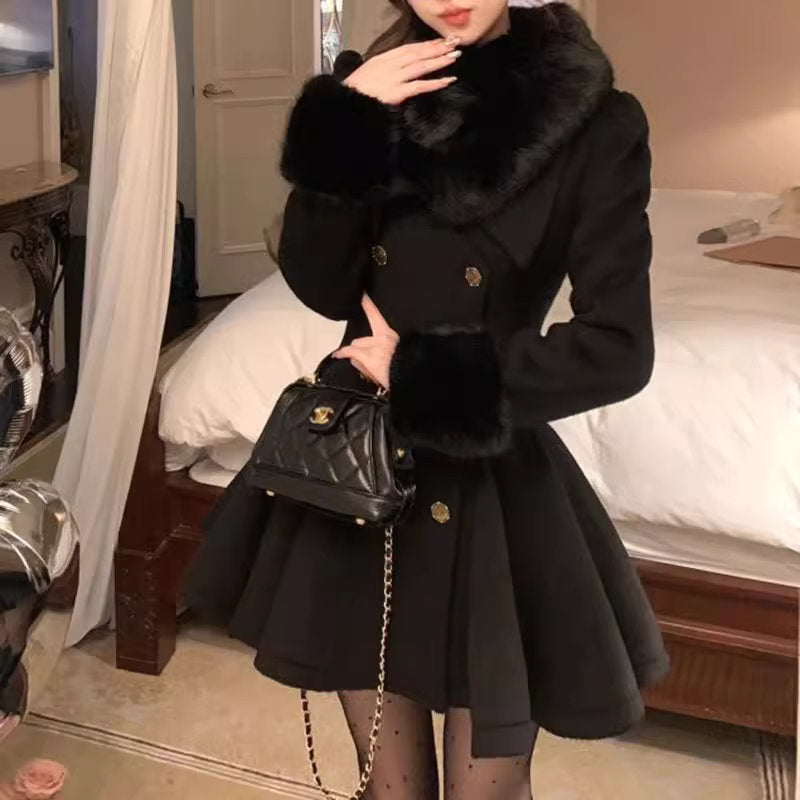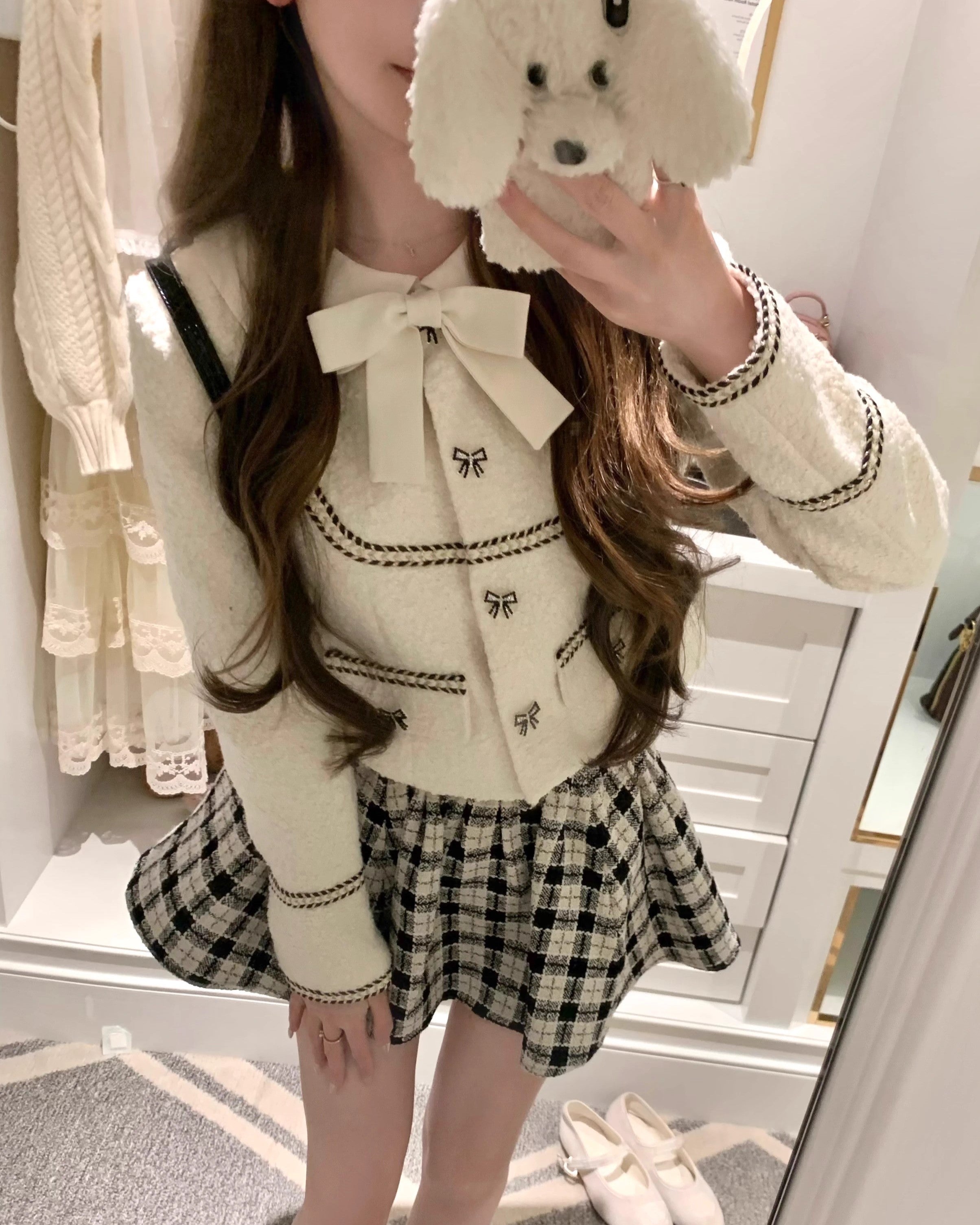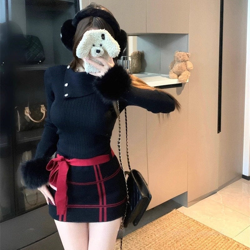 ふわりと心ほどける冬のファーチェックワンピース_R0447