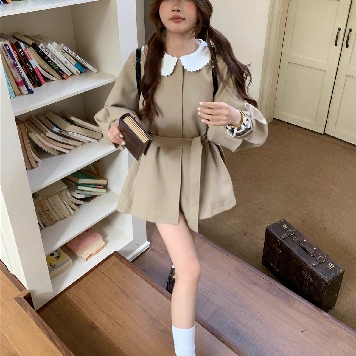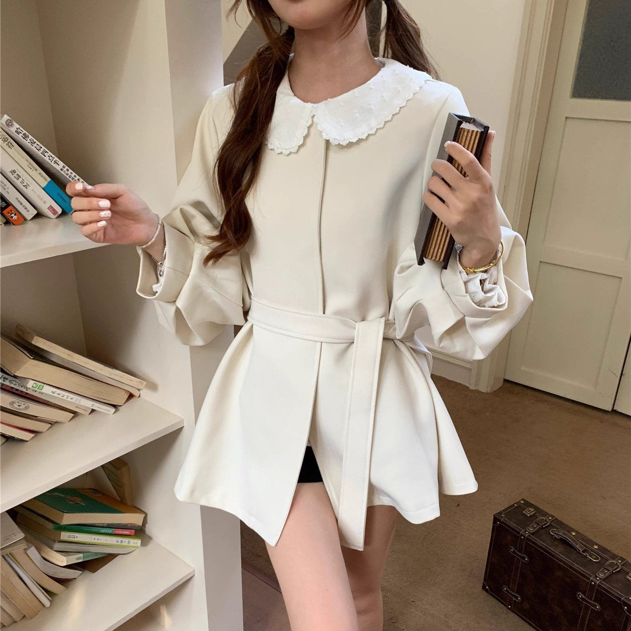 図書館の片隅でページをめくるあの子のベルト付きジャケット_R0407