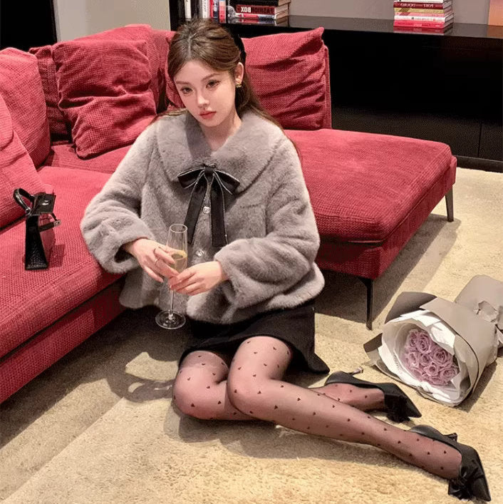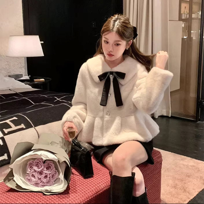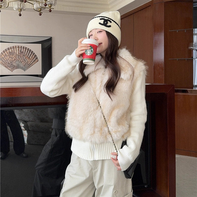 冬の静けさにふわり溶けるまろみファーニットジャケット_R0442
