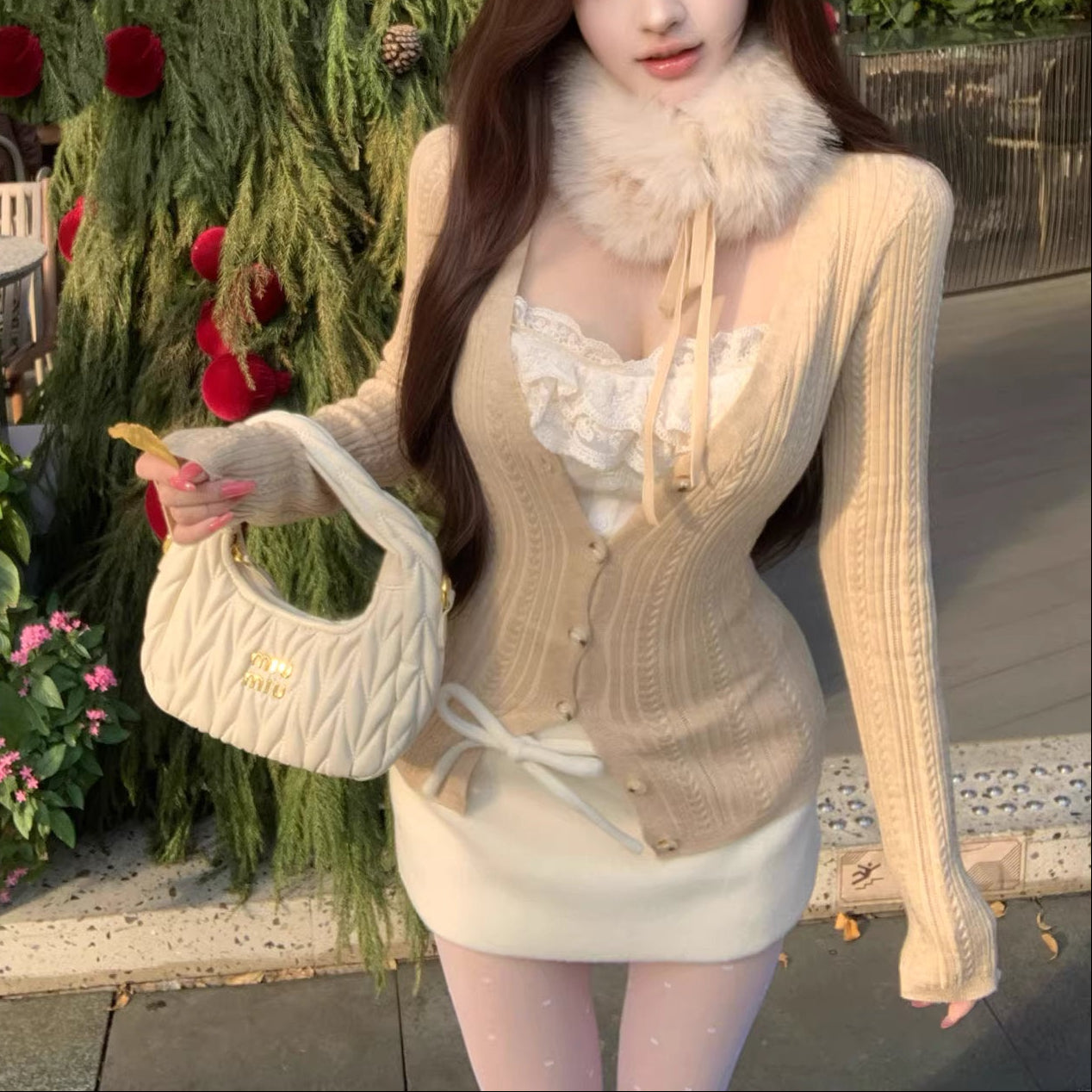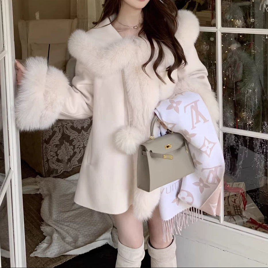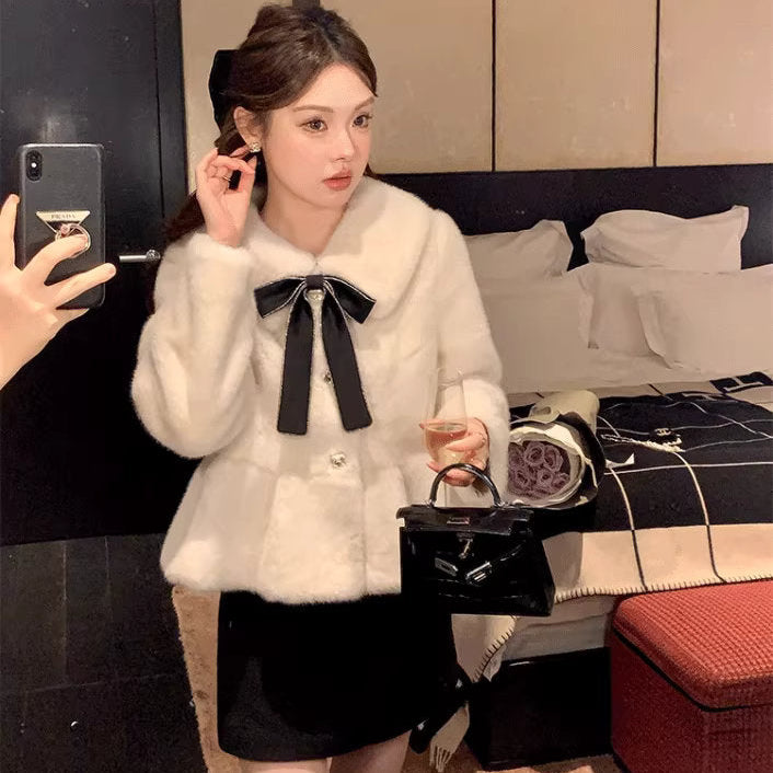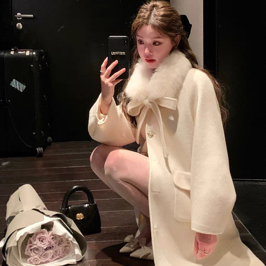 白い月明かりに包まれた夜のリボンファーコート_R0403