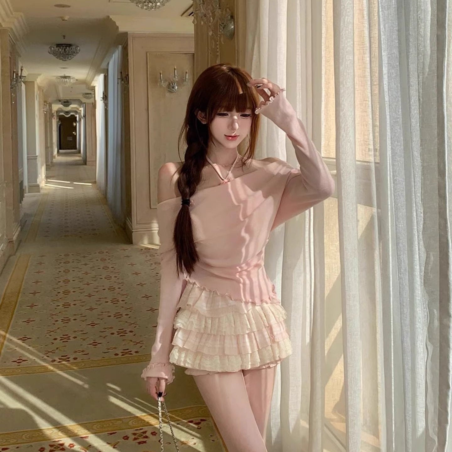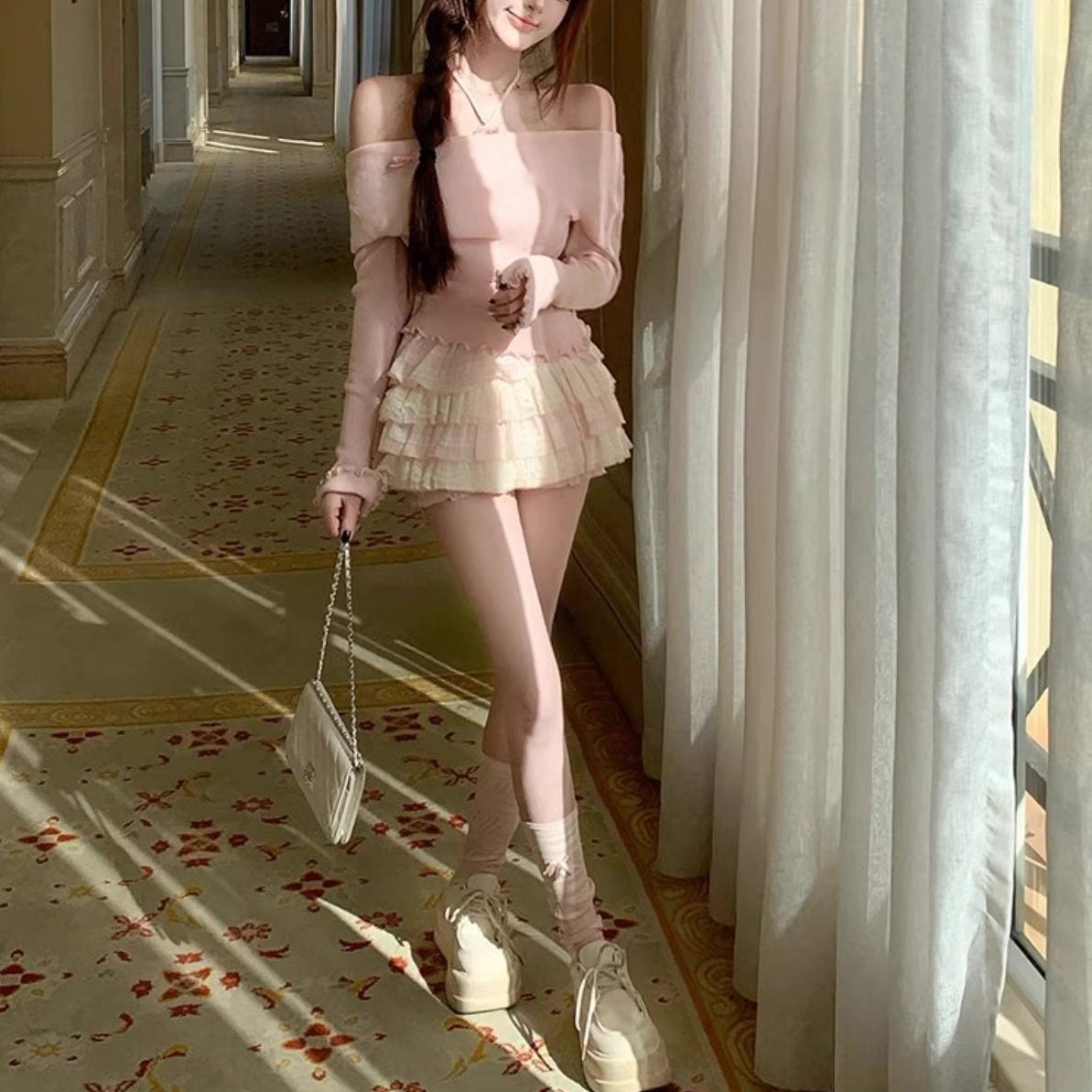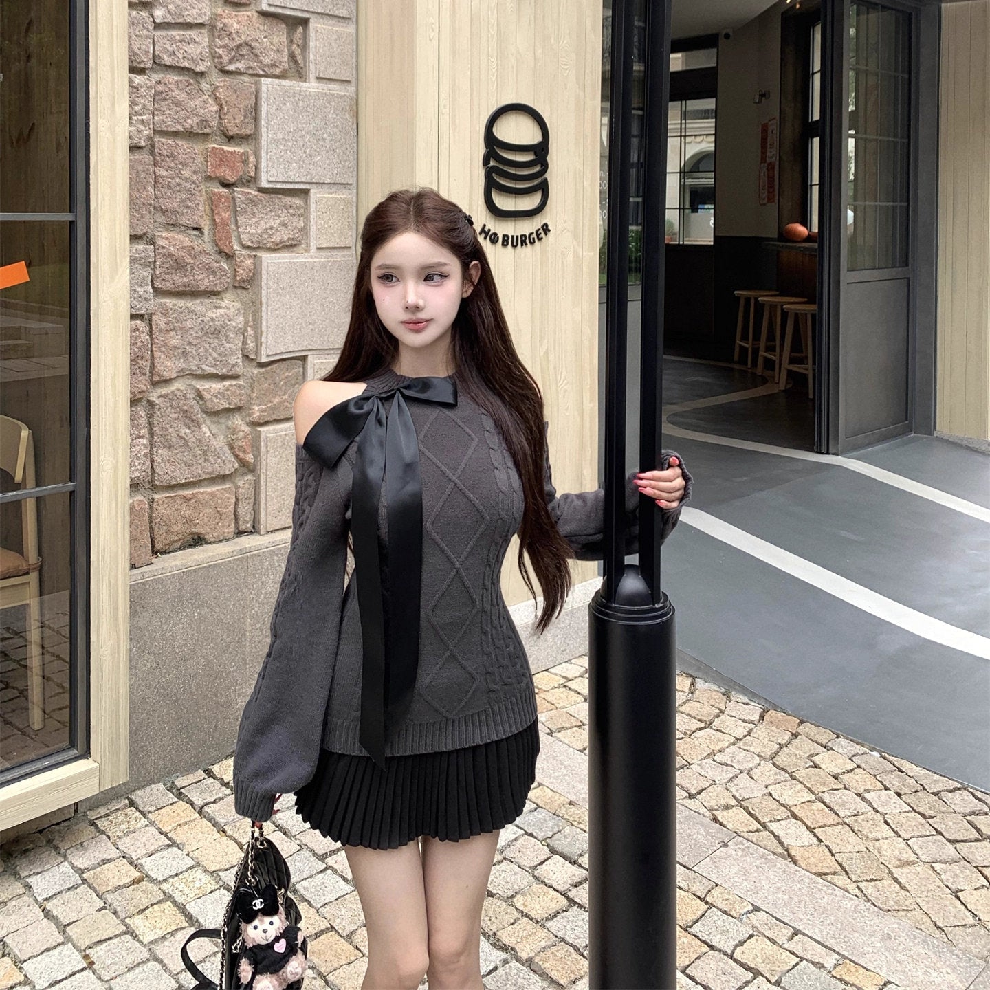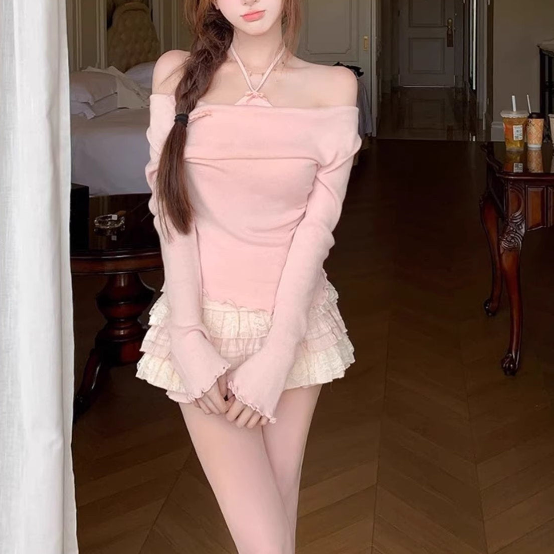 こっそり甘さを忍ばせた、夜のツイストオフショルトップス_R0308