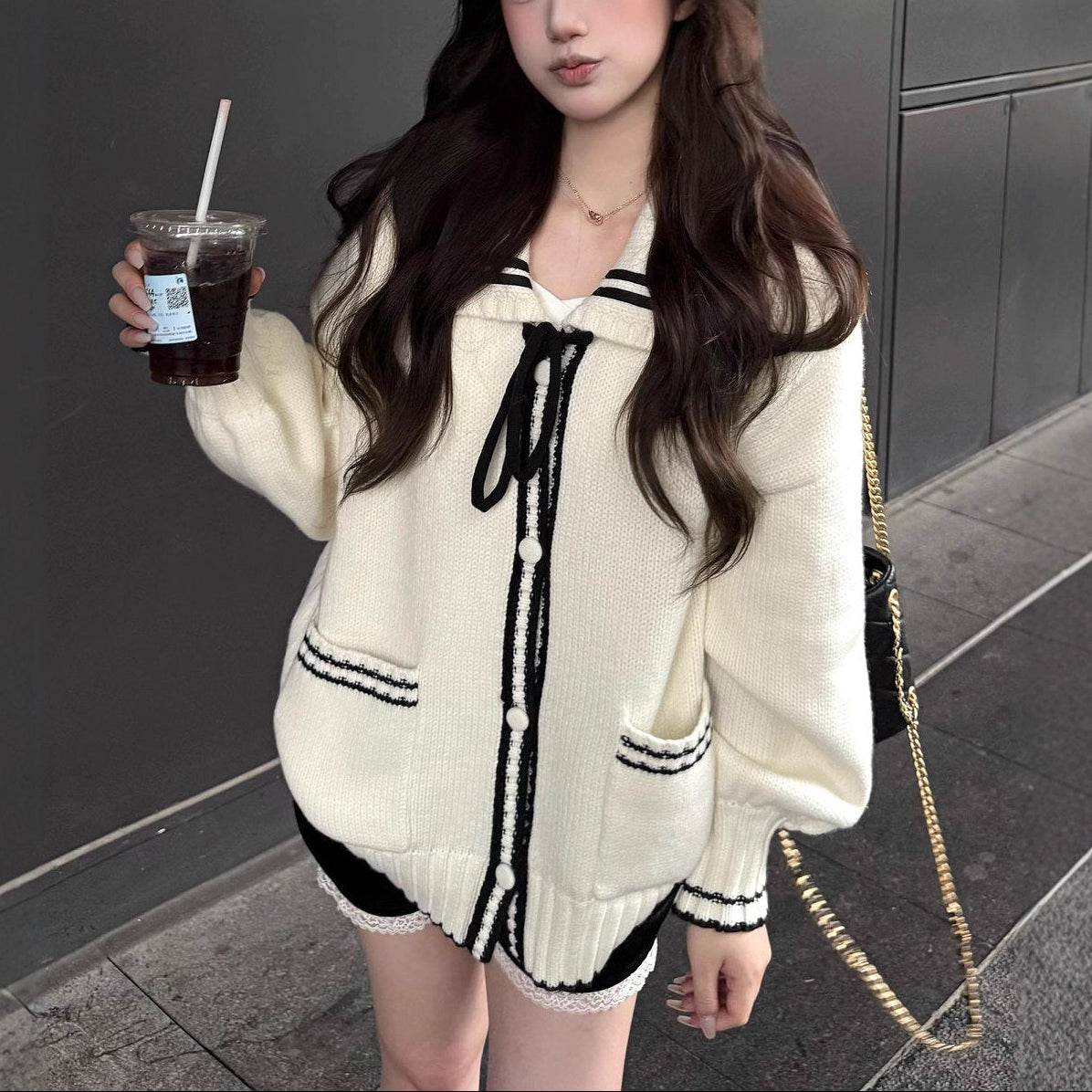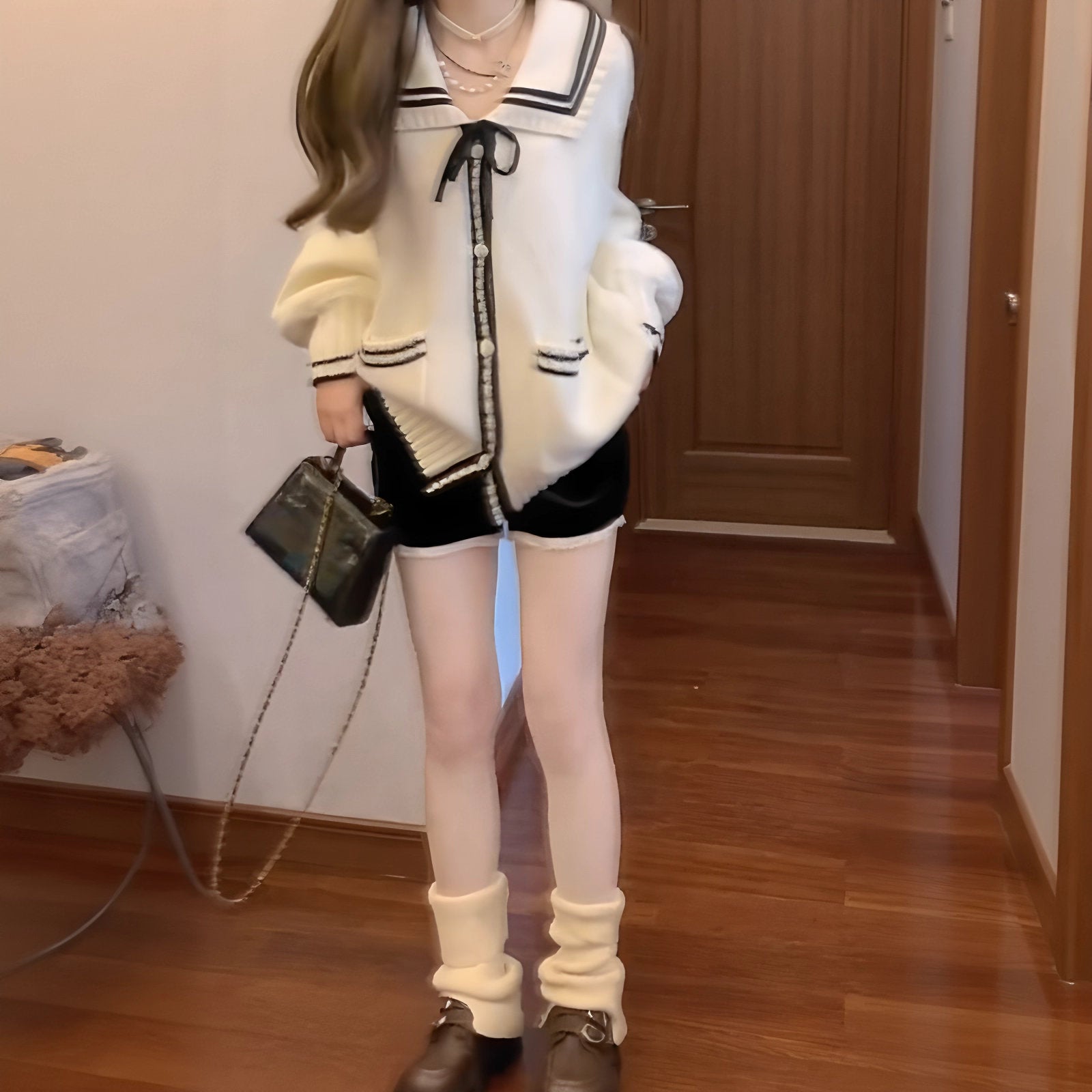 強がりな私を包む、金ボタンのクラシックニット_R0451