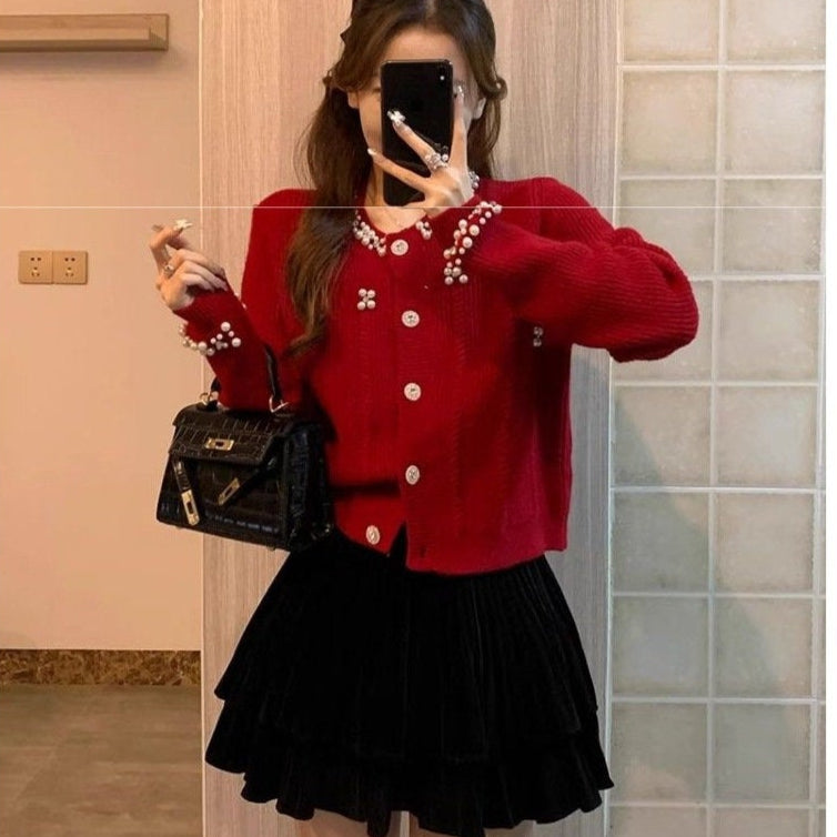 星空をまとった夜のバルコニーで恋を語るビジューニットカーディガン_R0392