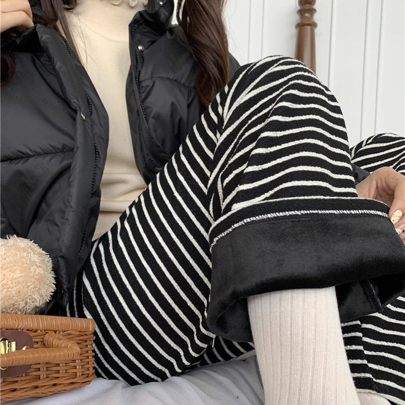 あたたかい息が白く溶ける朝の裏起毛ボーダーパンツ_R0401