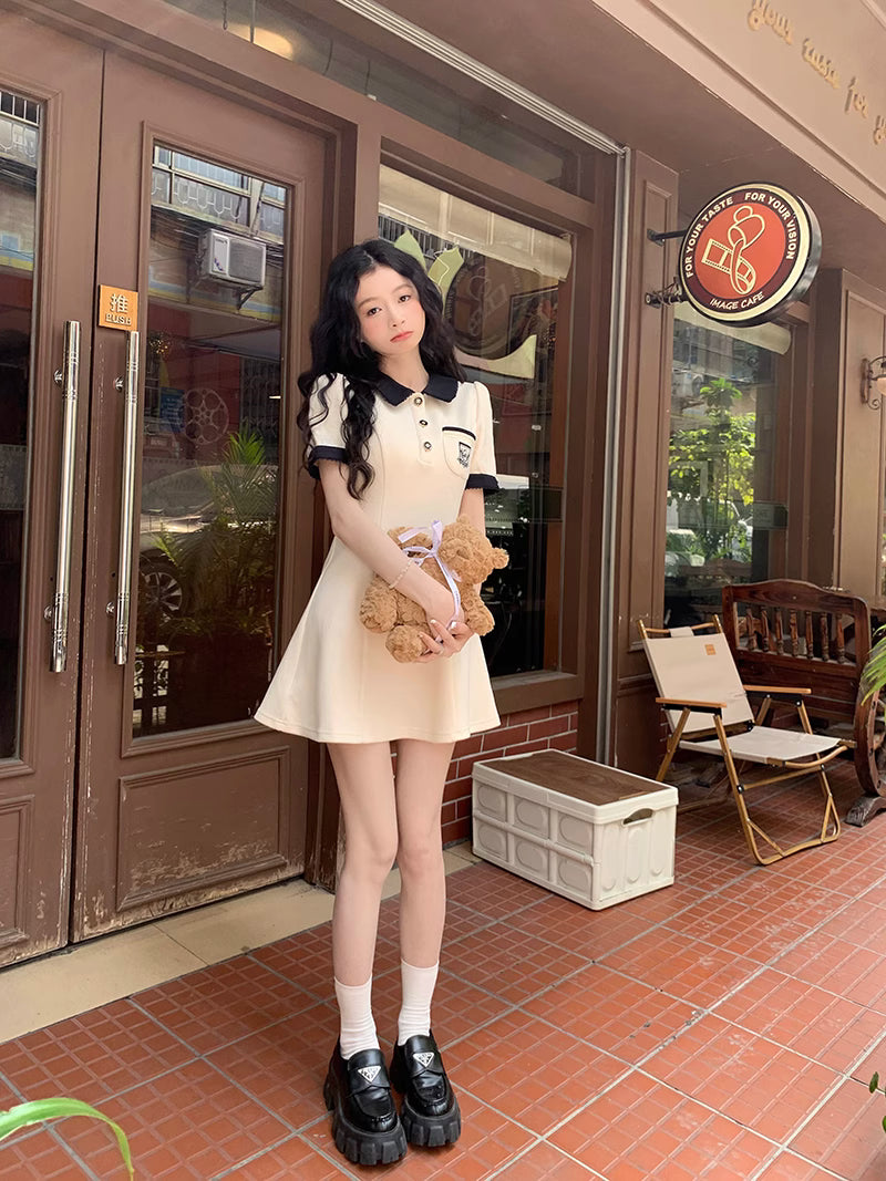 美術館のあとに向かう白襟のクラシックワンピース_R0300