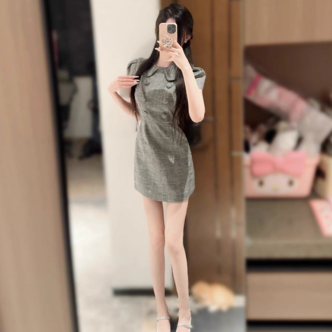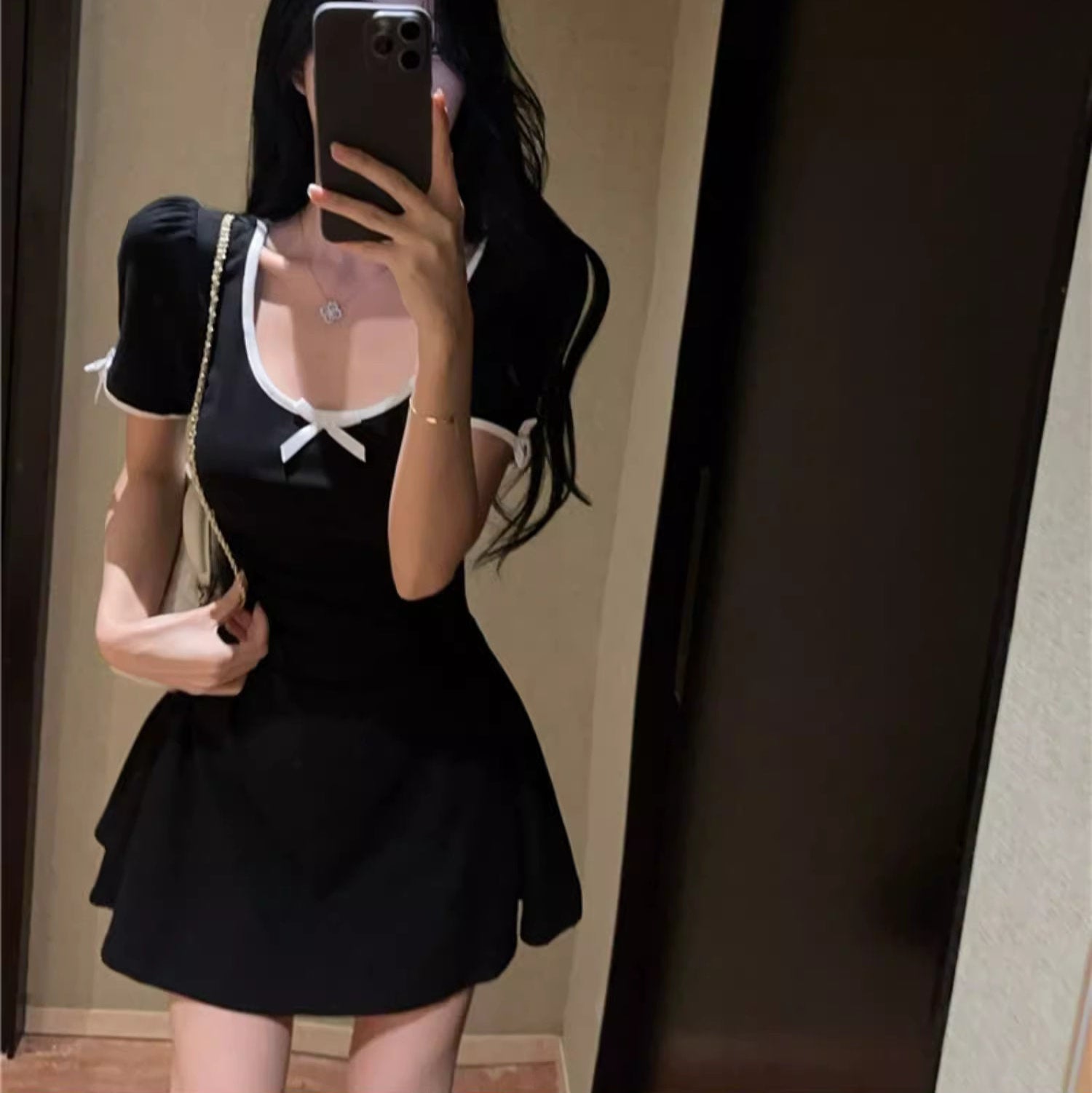 ミッドナイトルームで秘密の乾杯をするラメリボンチューブワンピース_R0287